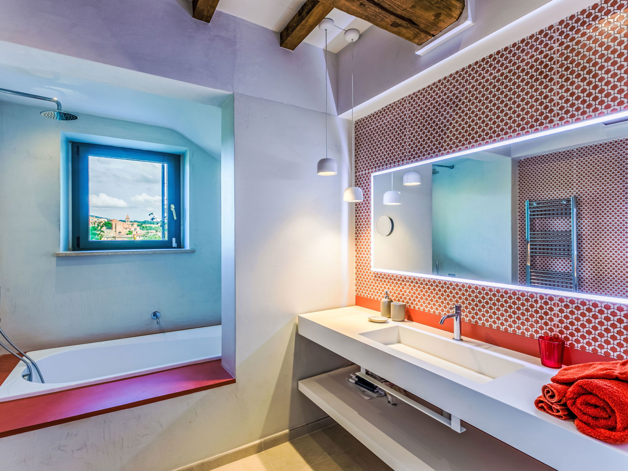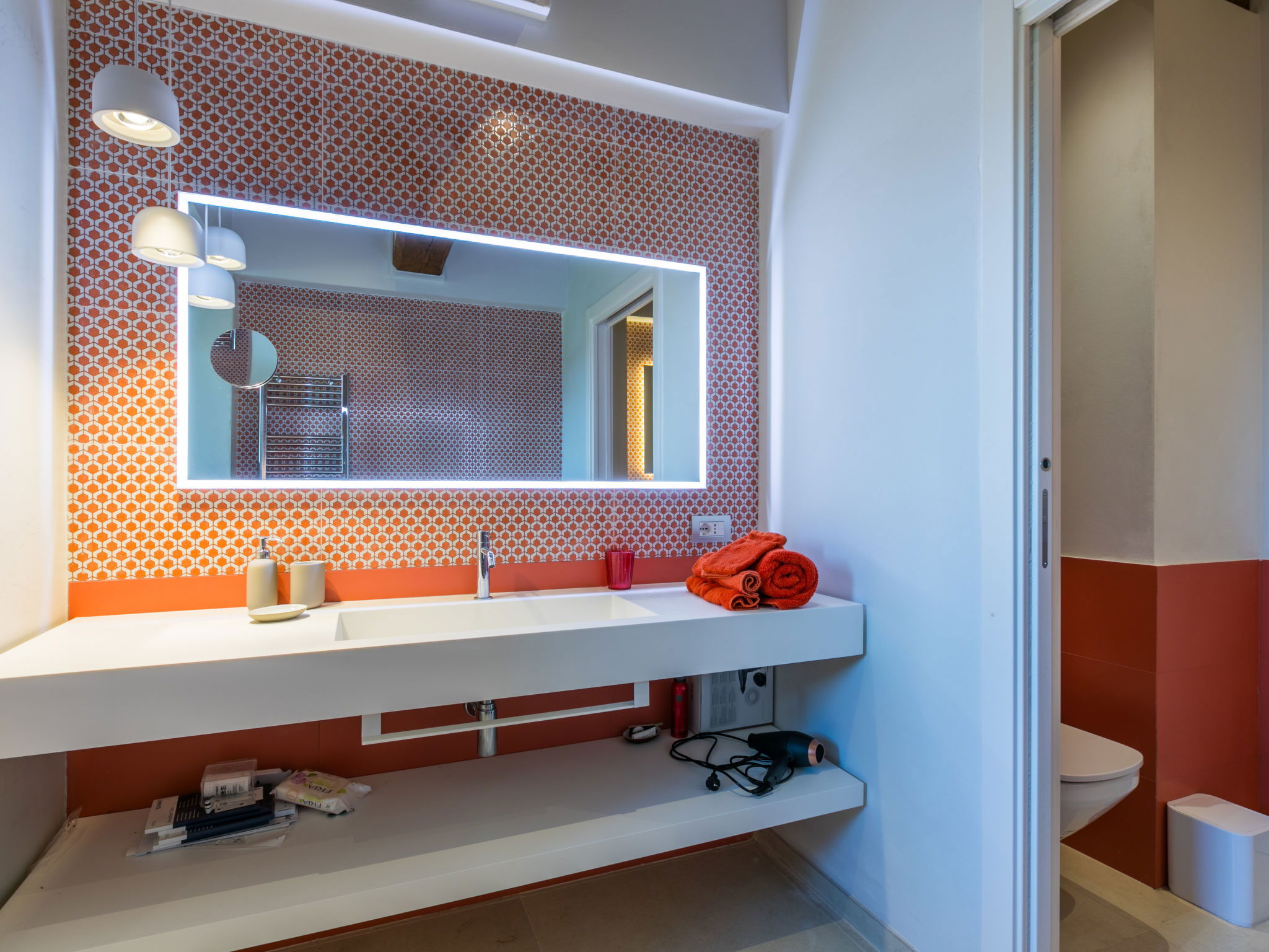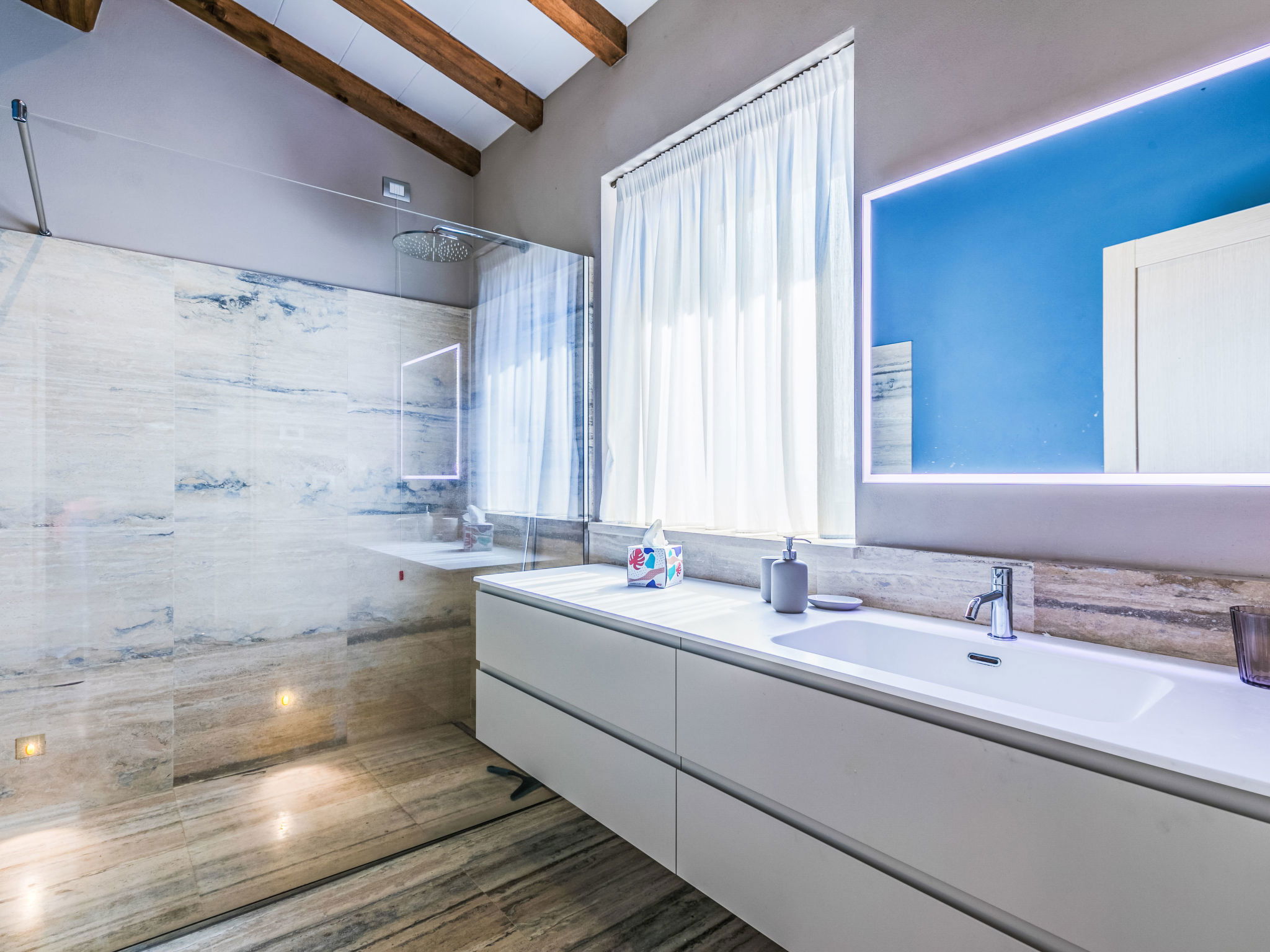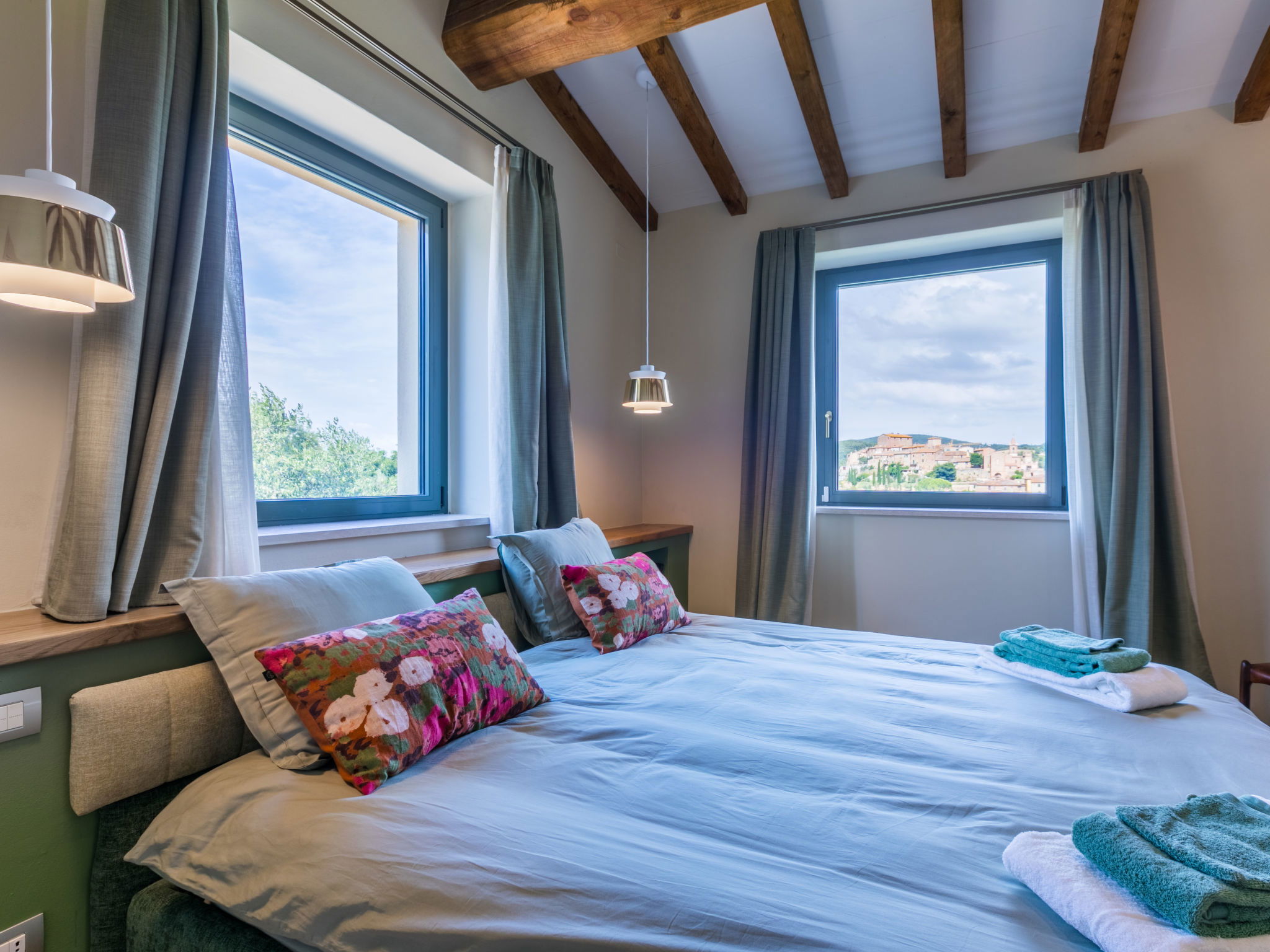"Villa Montisi", 4-room villa 170 m2 on 2 levels. Spacious and bright, very tasteful and stylish furnishings: open large living/dining room with panoramic window with dining table and TV (flat screen), air conditioning. Exit to the garden, to the terrace. 1 room with panoramic window with 2 beds (80 cm, length 200 cm), air conditioning. Large, open kitchen (oven, dishwasher, 5 induction hot plates, toaster, kettle, microwave, electric coffee machine, Capsules for coffee machine (Nespresso) extra) with air conditioning. Exit to the patio. Bath/WC. Upper floor: open small, Studio. 1 double bedroom with panoramic window Dressing room with shower/bidet/WC and air conditioning. 1 large double bedroom with panoramic window with shower/bidet/WC and air conditioning. Air-conditioning, floor heating. Natural stone floors. 2 terraces, patio, garden, lawn. Terrace furniture, barbecue, deck chairs. Very beautiful panoramic view of the resort. Facilities: washing machine, dryer, iron, children's high chair, baby cot for up to 2 year olds, hair dryer. Internet (WiFi, free). Parking at the house. Please note: non-smokers only. Smoke alarm, fire extinguisher. The pool mentioned in the description is for private use. IT052037C2OY62BVYD