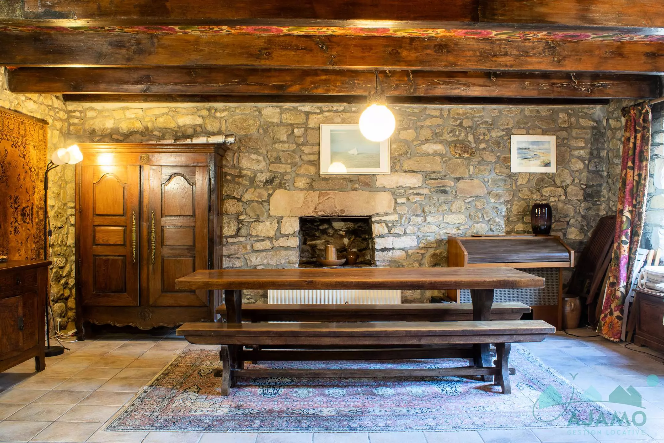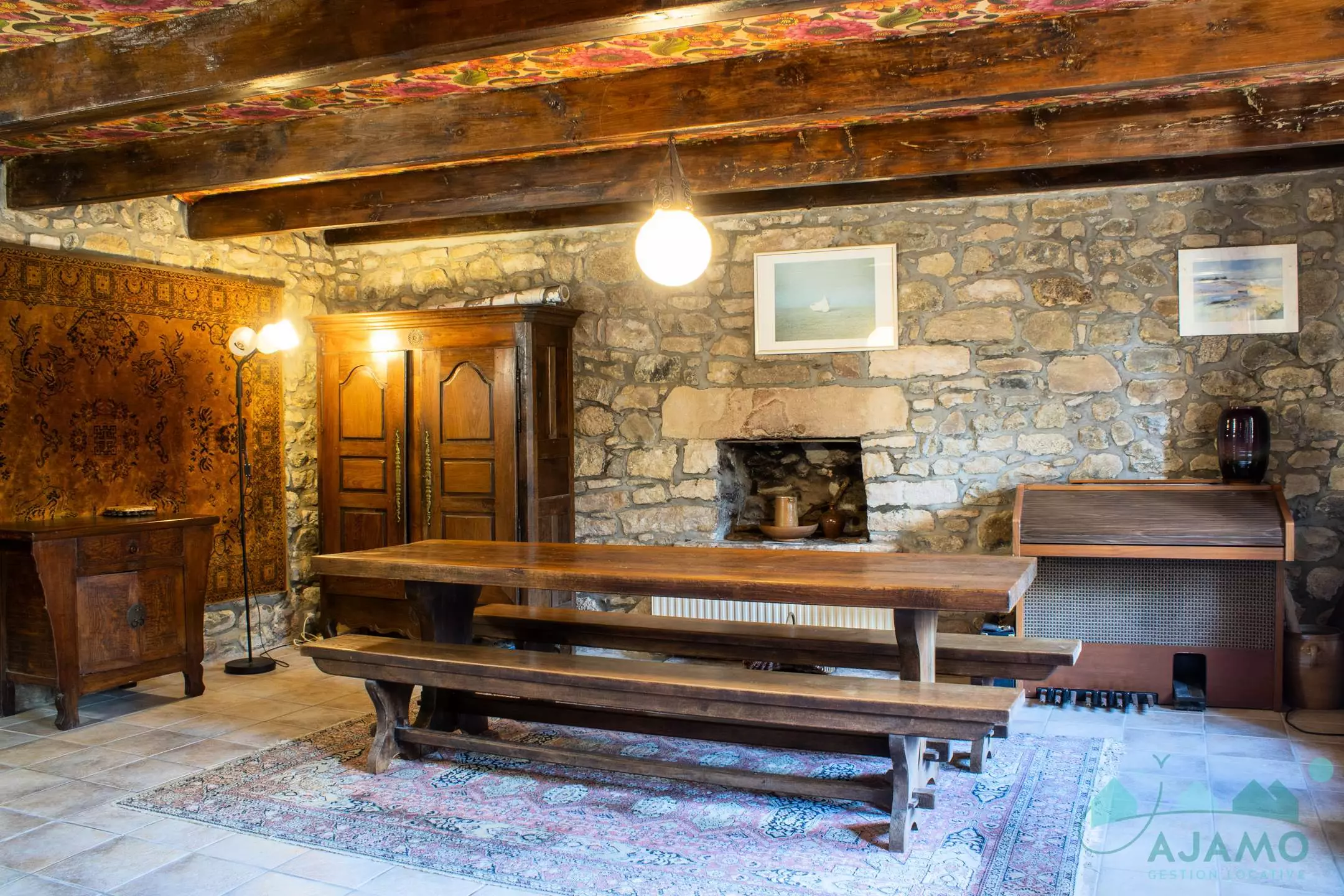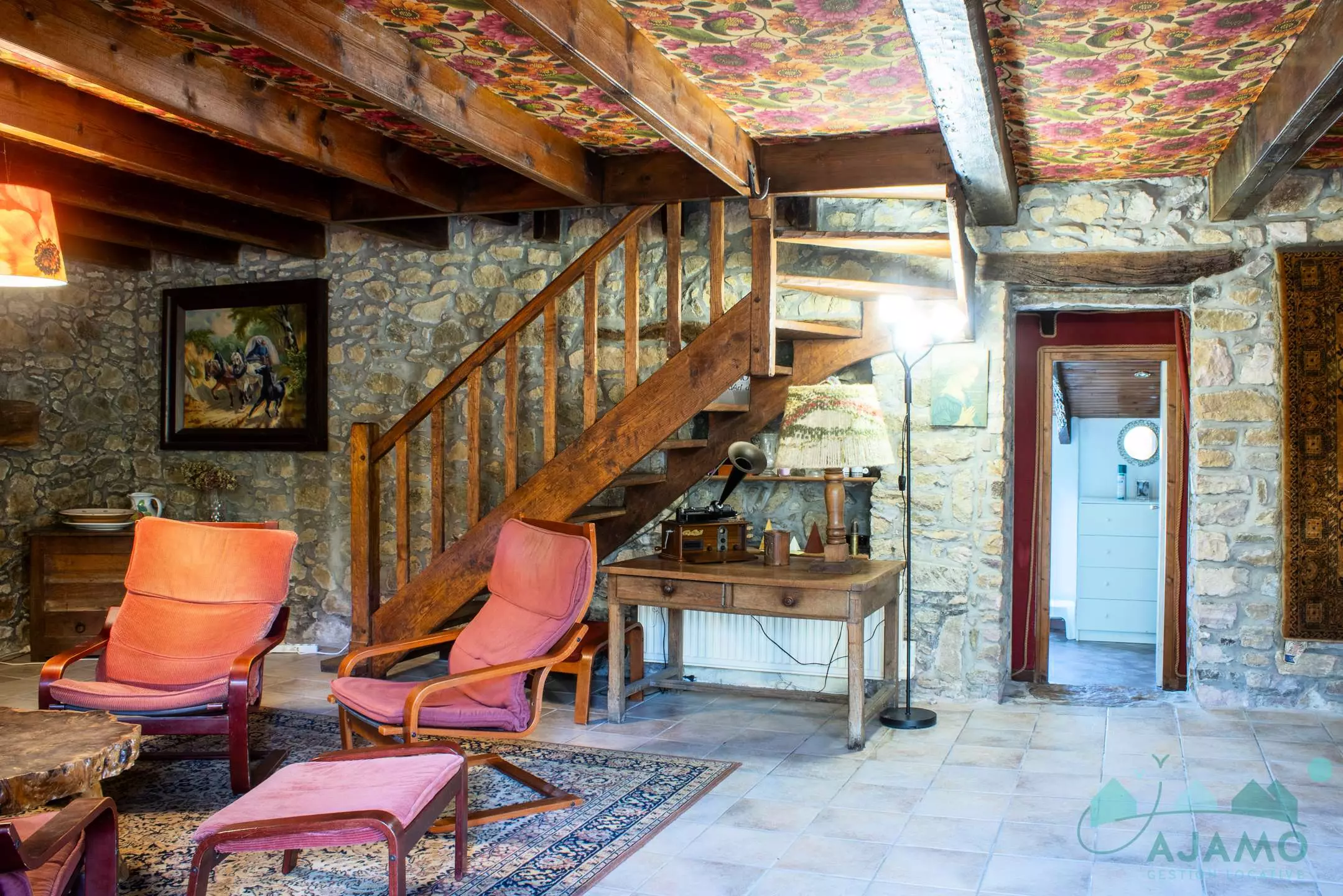 - A beautiful living room (60m²) with access to the terrace and garden;