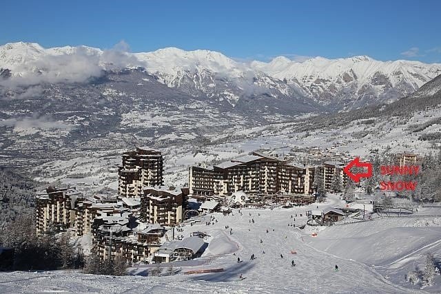Large 2-room apartment for 6 people on the 3rd floor with elevator, very well located in the resort with direct access to the slopes, comprising: an entrance, a mountain corner with 2 single bunk beds, a living room with a double sofa bed and 2 balconies, a fully equipped kitchen area, a bedroom with 2 single beds and a balcony, a bathroom and separate toilet. Beautiful South East exposure, view of the slopes and the resort. Close to kindergarten and daycare. On request, possibility of renting 2 underground parking spaces with direct access by elevator.