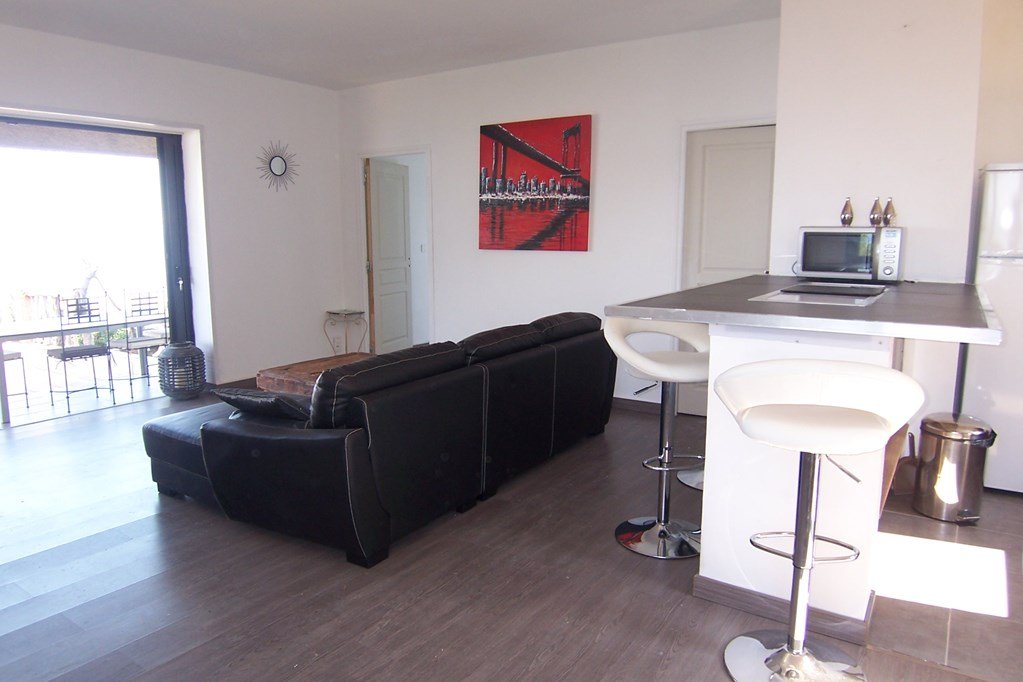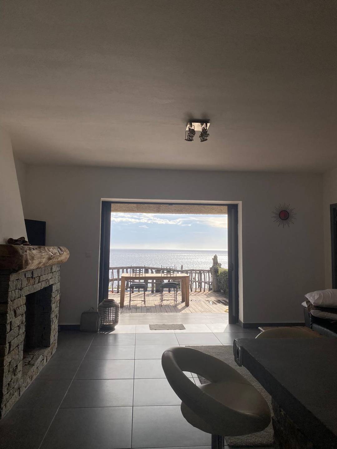 Living room / kitchen (American style) - facing the sea - large bay window - access to covered terrace and garden: fireplace - fixed sofa, television (French), dishwasher, cooker (gas) Microwave, toaster, coffee maker, tidying up