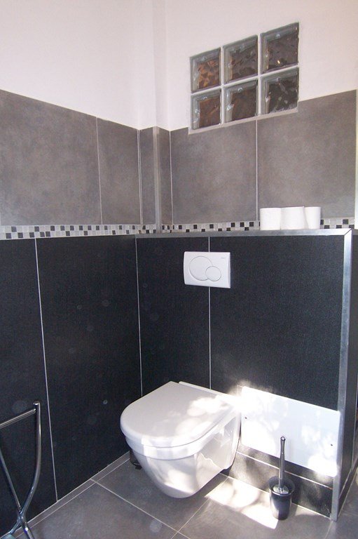 Shower room - independent: shower, washbasin, toilet, washing machine.