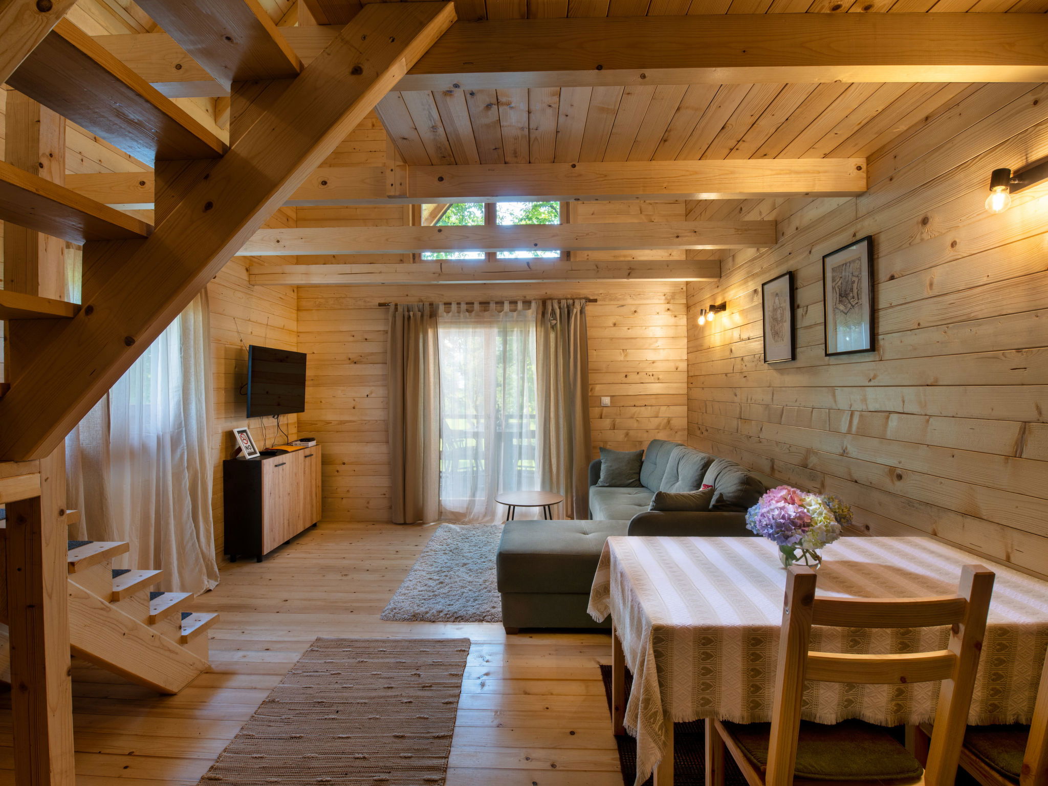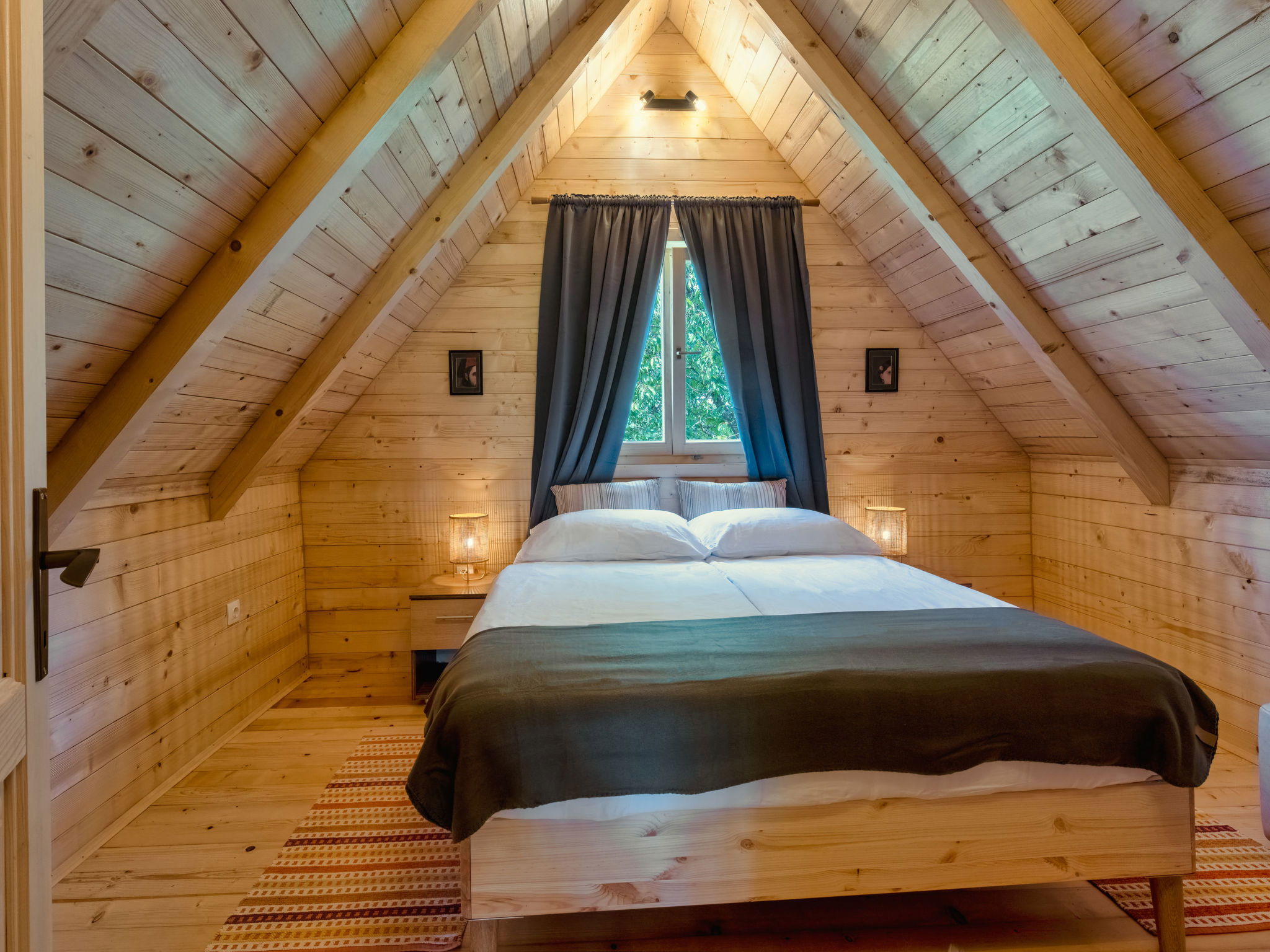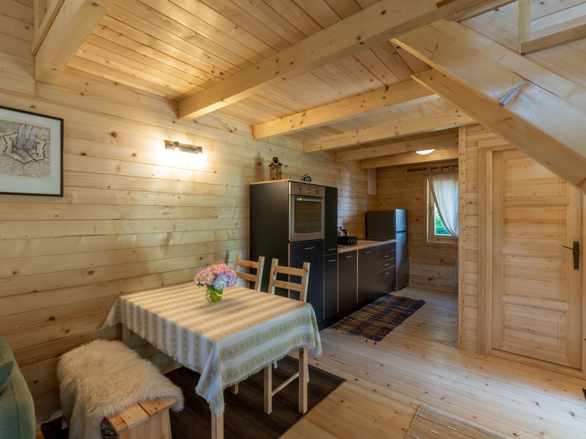 Cosy chalet "Jela", 2 storeys, built in 2024. 3 km from the centre of Karlovac, in a sunny position, 108 km from the sea, 1 km from the river, in the countryside. Private: property 5'000 m2 (fenced) with lawn and trees, orchard. Terrace (16 m2), garden furniture, barbecue. In the house: internet access. Parking (for 2 cars) at the house on the premises. Shop 2 km, supermarket 3 km, restaurant 2 km, bus stop 5 km, railway station 5 km. Tennis 5 km, walking paths from the house 1 km. Well-known lakes can easily be reached: Plitvička jezera 87 km. The owner does not accept any youth groups. Please note: the owner lives on the same property. Organizing a party is not allowed. .