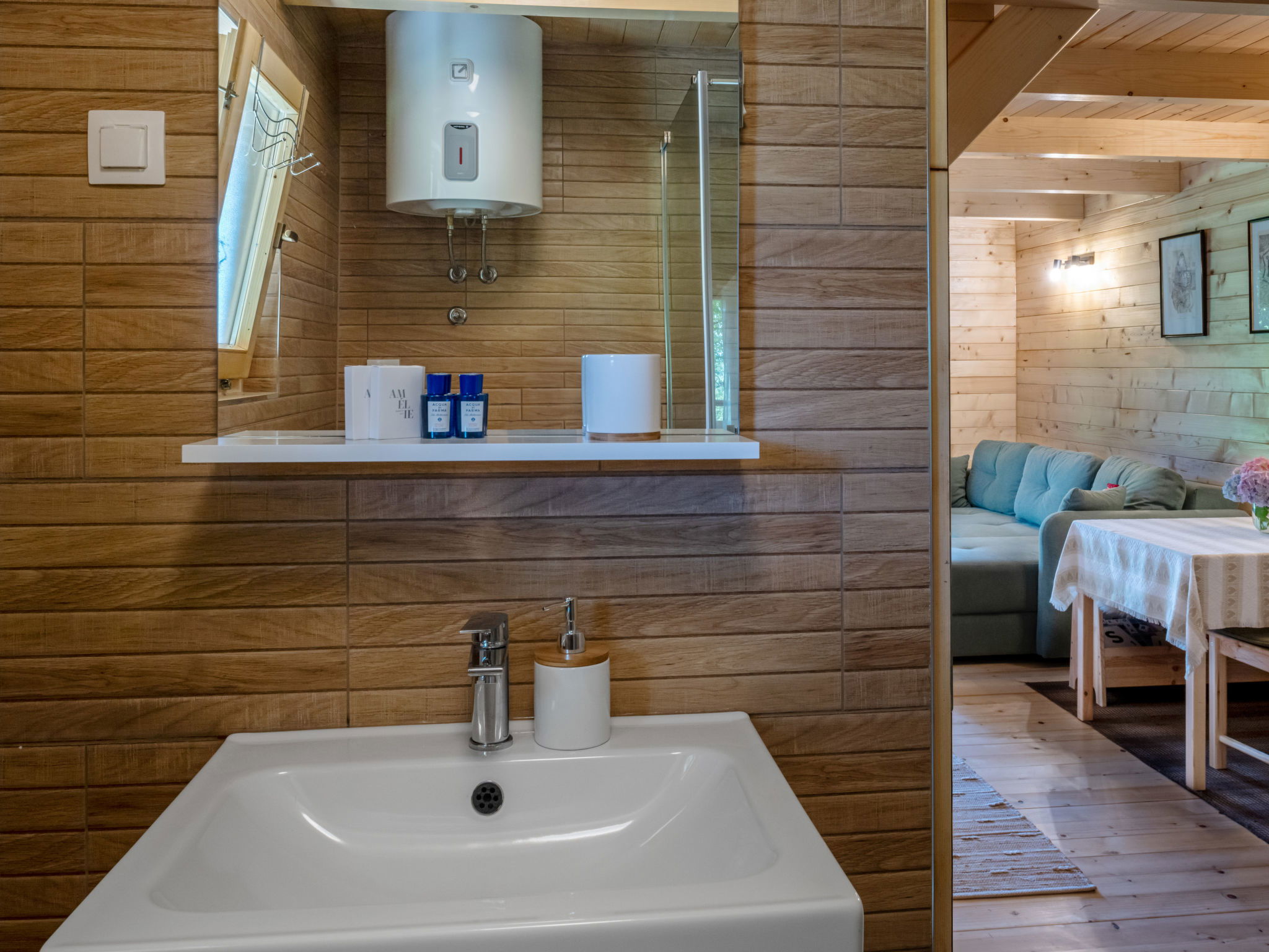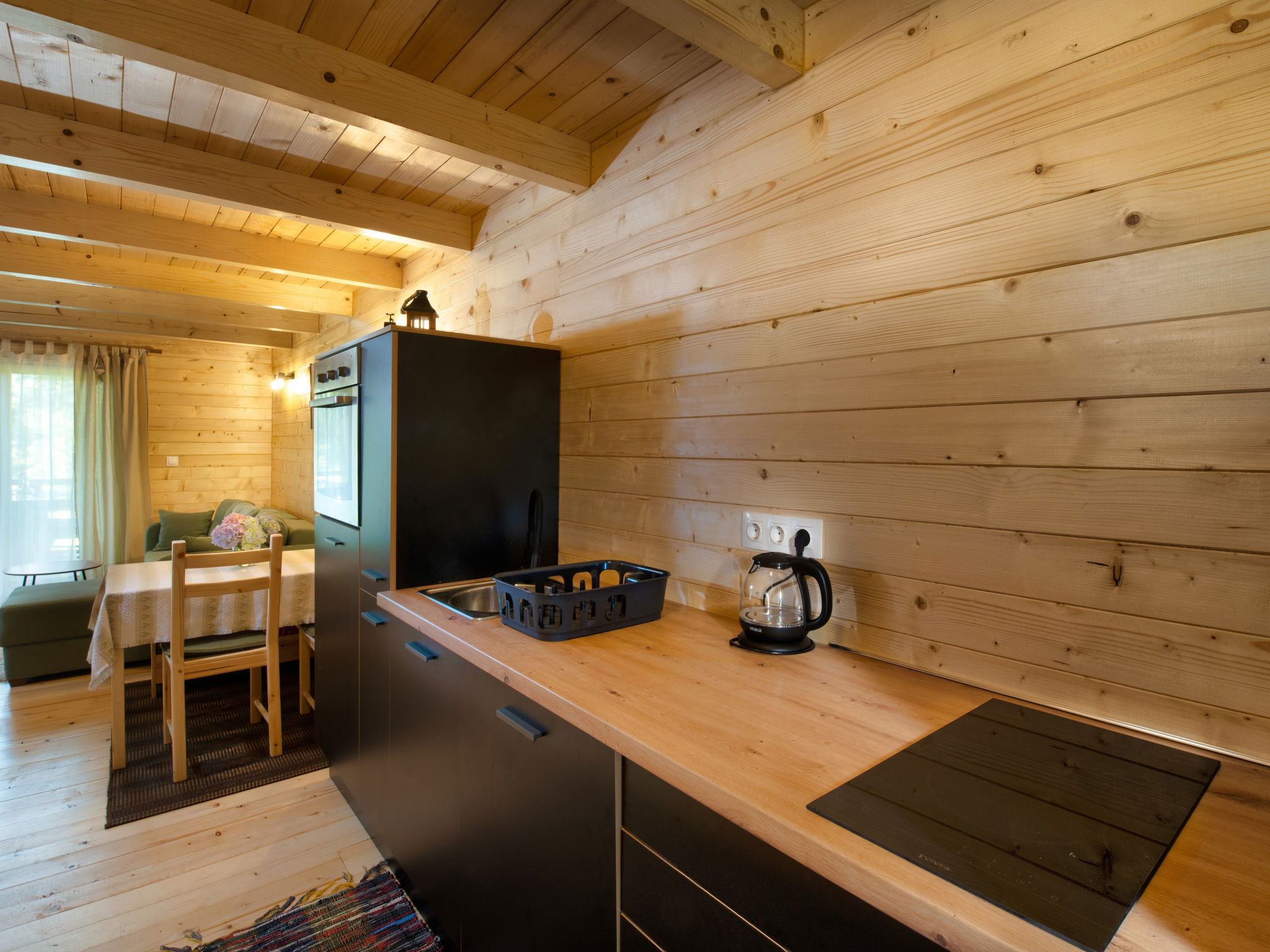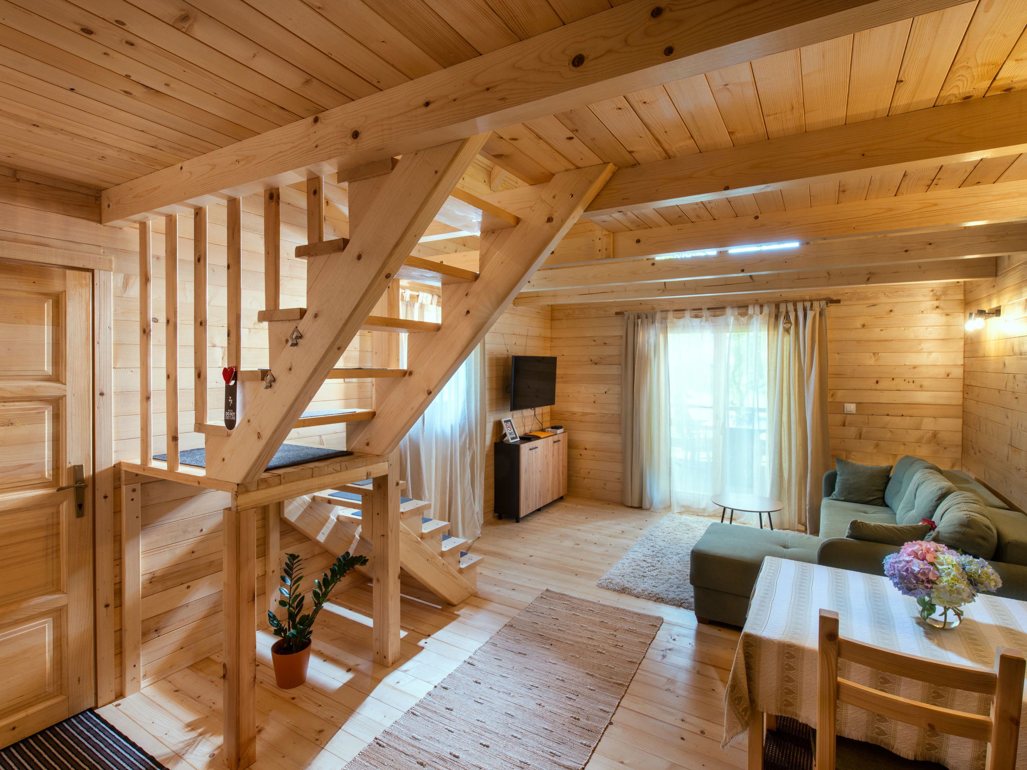 Cosy chalet "Jela", 2 storeys, built in 2024. 3 km from the centre of Karlovac, in a sunny position, 108 km from the sea, 1 km from the river, in the countryside. Private: property 5'000 m2 (fenced) with lawn and trees, orchard. Terrace (16 m2), garden furniture, barbecue. In the house: internet access. Parking (for 2 cars) at the house on the premises. Shop 2 km, supermarket 3 km, restaurant 2 km, bus stop 5 km, railway station 5 km. Tennis 5 km, walking paths from the house 1 km. Well-known lakes can easily be reached: Plitvička jezera 87 km. The owner does not accept any youth groups. Please note: the owner lives on the same property. Organizing a party is not allowed. .