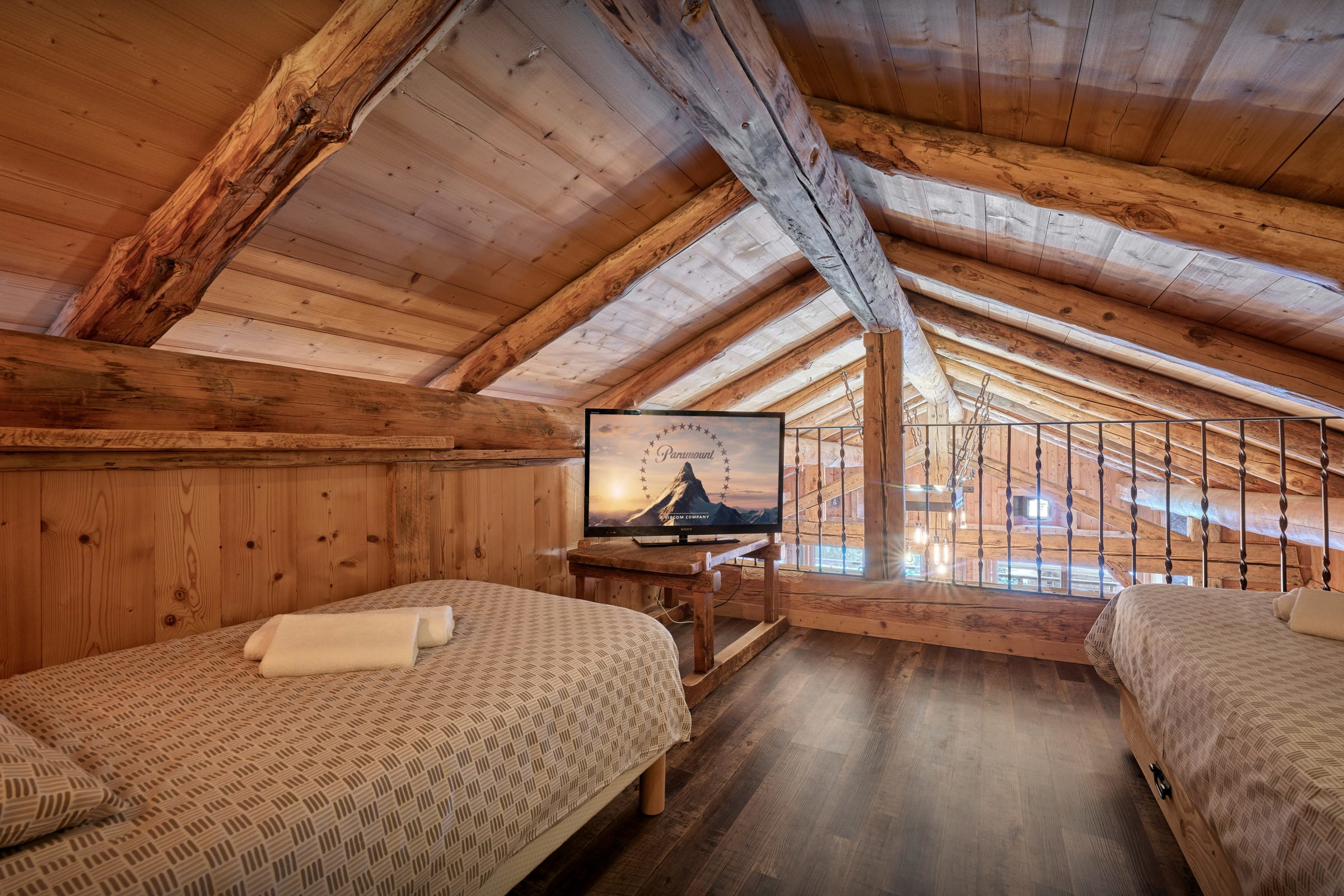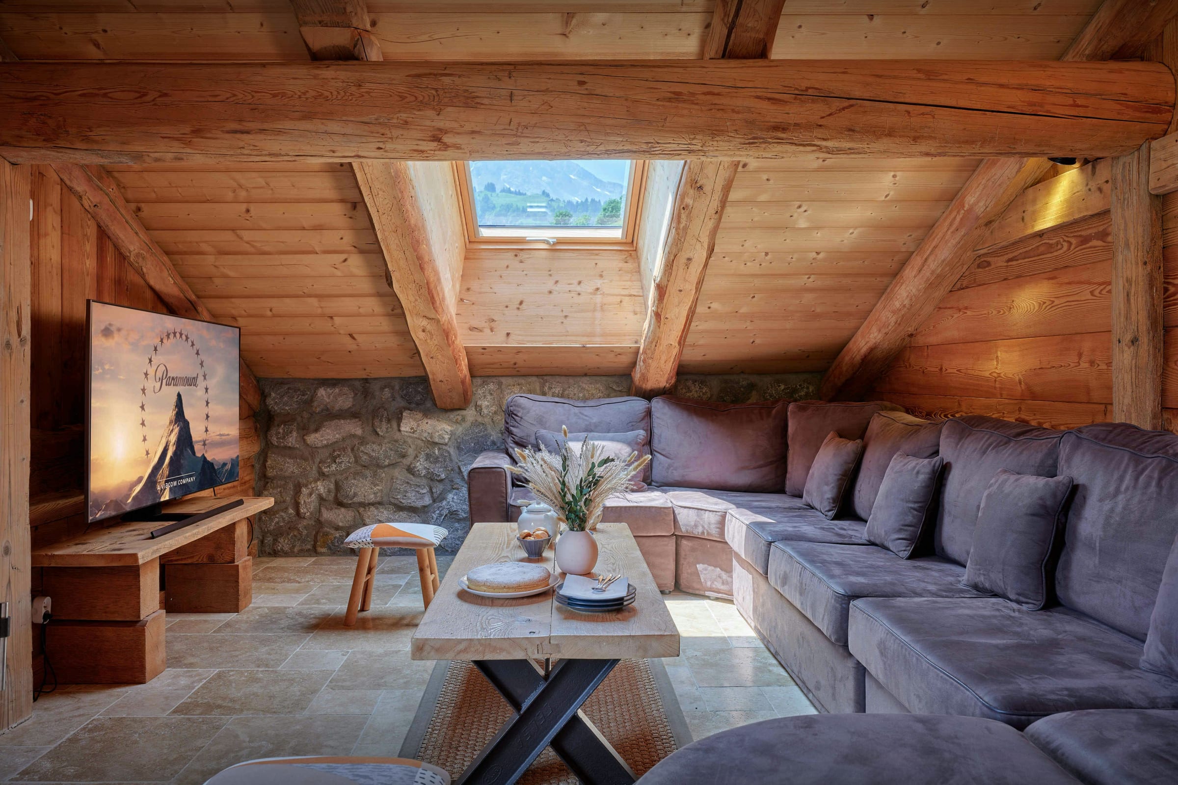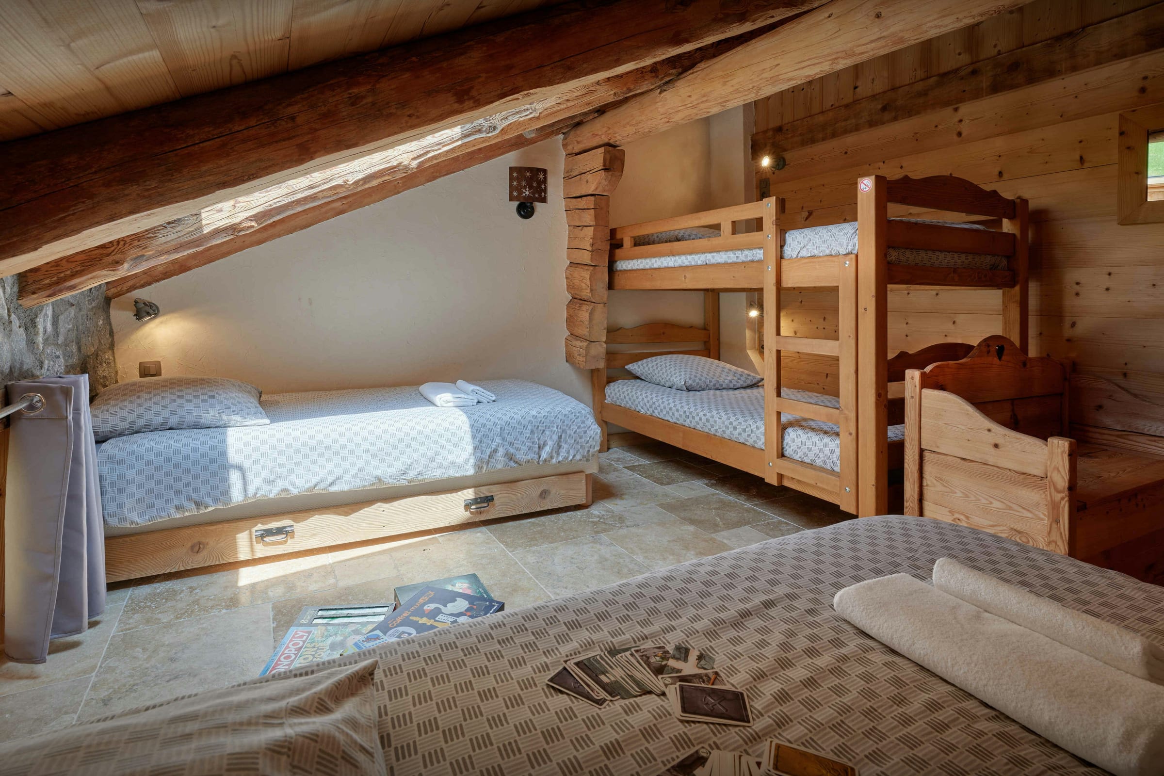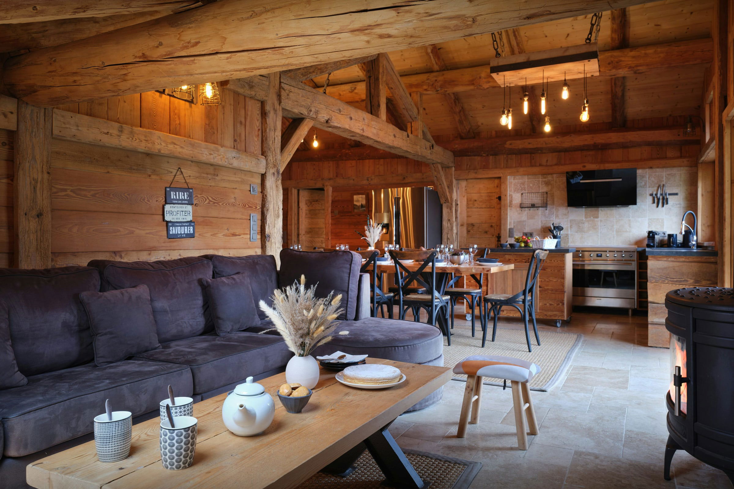 The cosy wood-panelled interior of this property, which takes up the whole top floor of a renovated farmhouse, is typical of authentic Savoyard chalets. You'll feel at home as soon as you step inside.