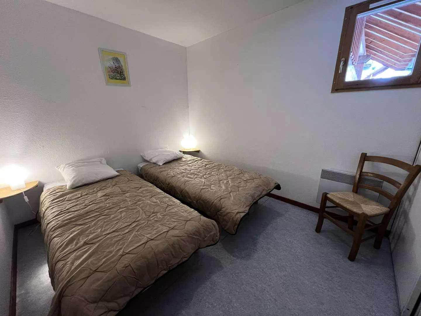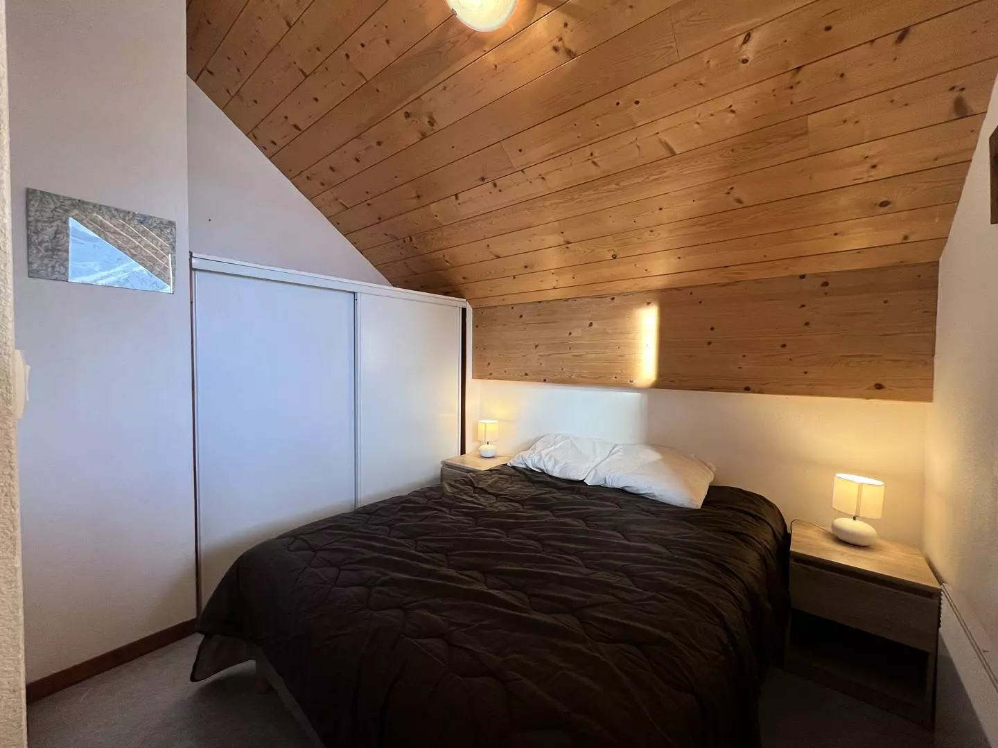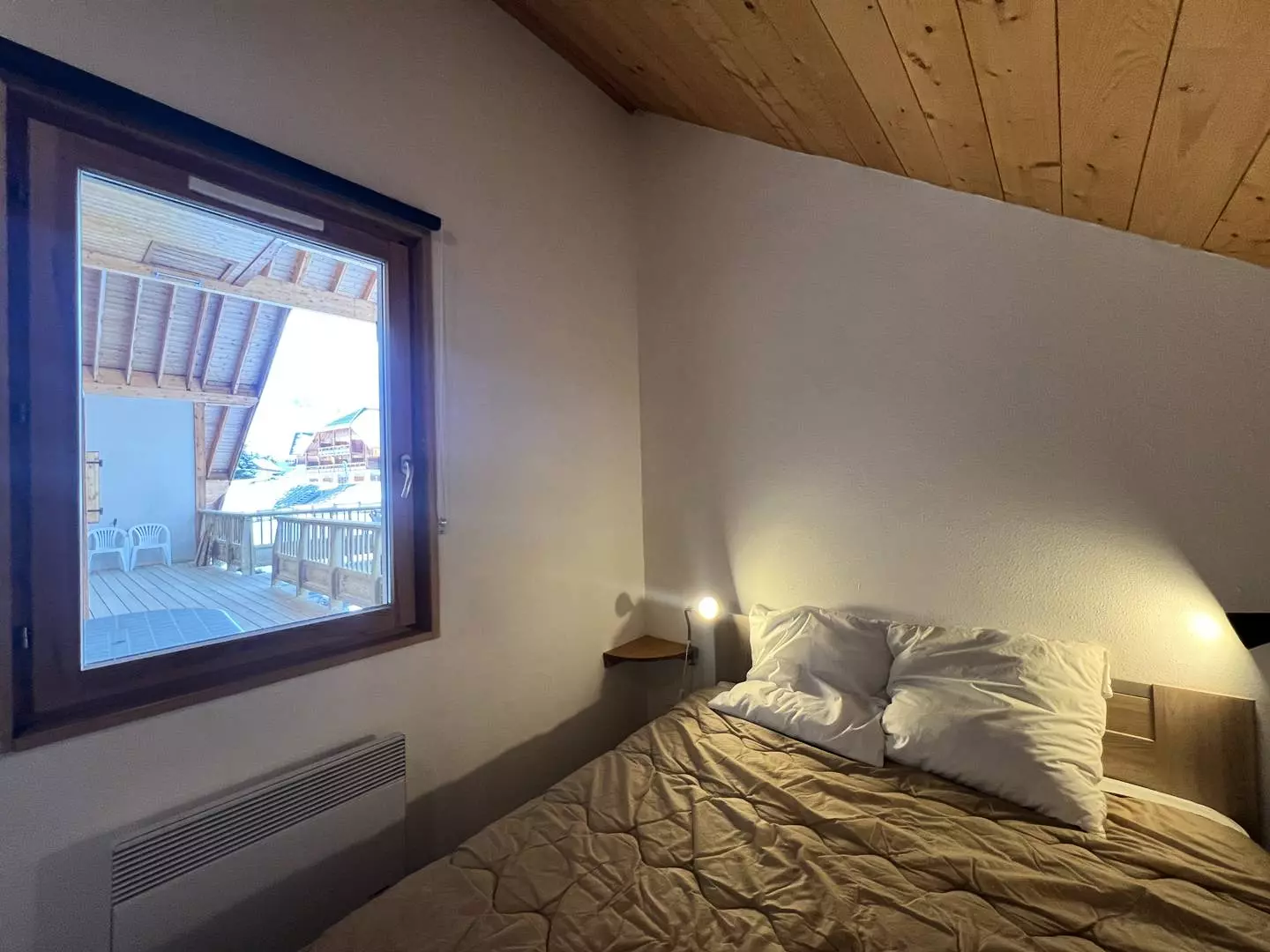 * on the lower level: a large entrance hall, a bedroom with a double bed and a shower room, a bathroom with washing machine, a separate toilet, a second bedroom with a double bed, a living room with kitchenette with a sofa bed and a staircase leading to the attic, a south-facing terrace of 11.62m2 with a view of the Aiguilles d'Arves. End-of-stay cleaning included for the winter season 2024-2025