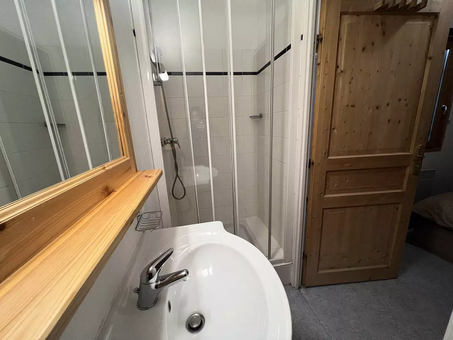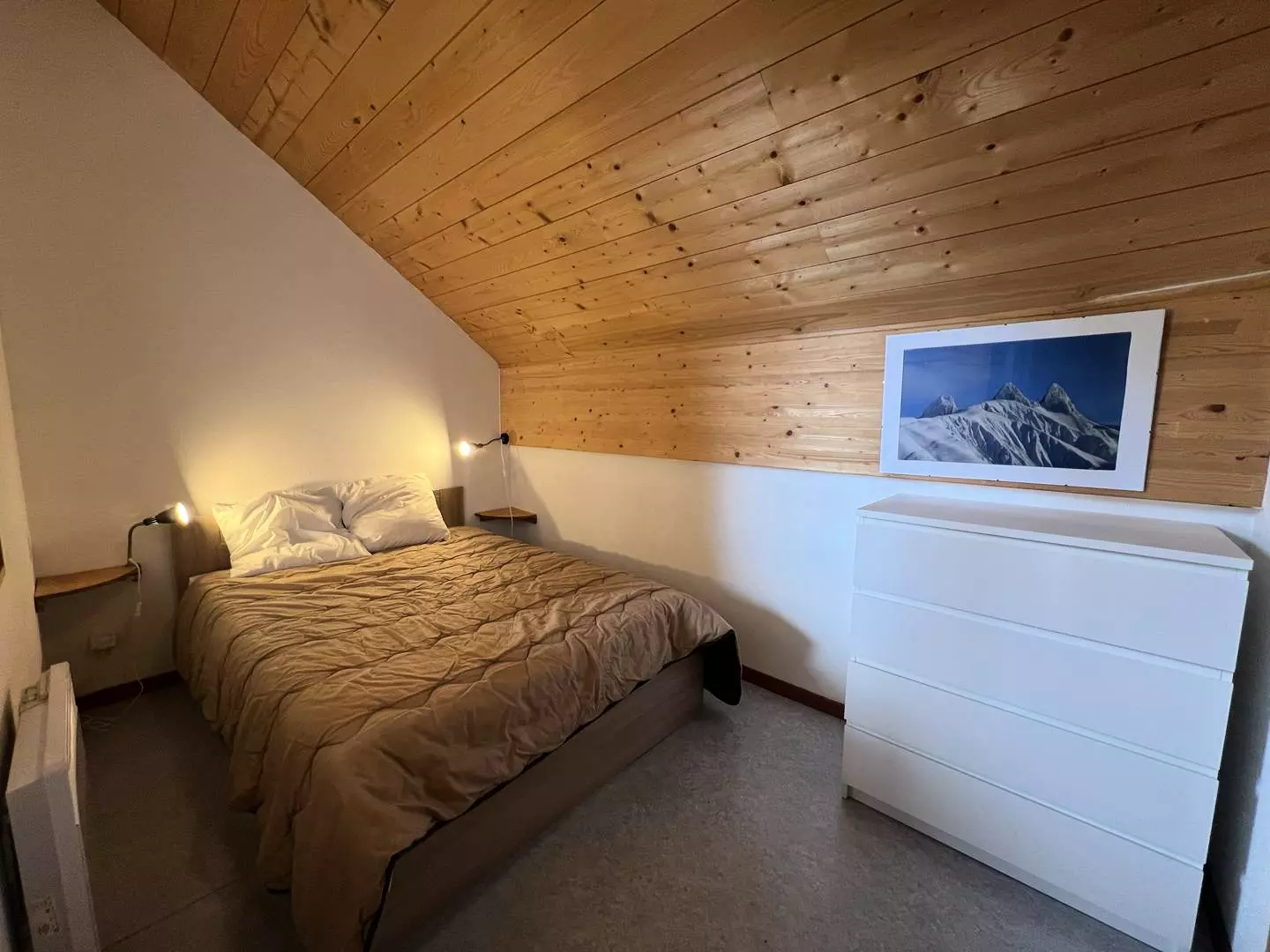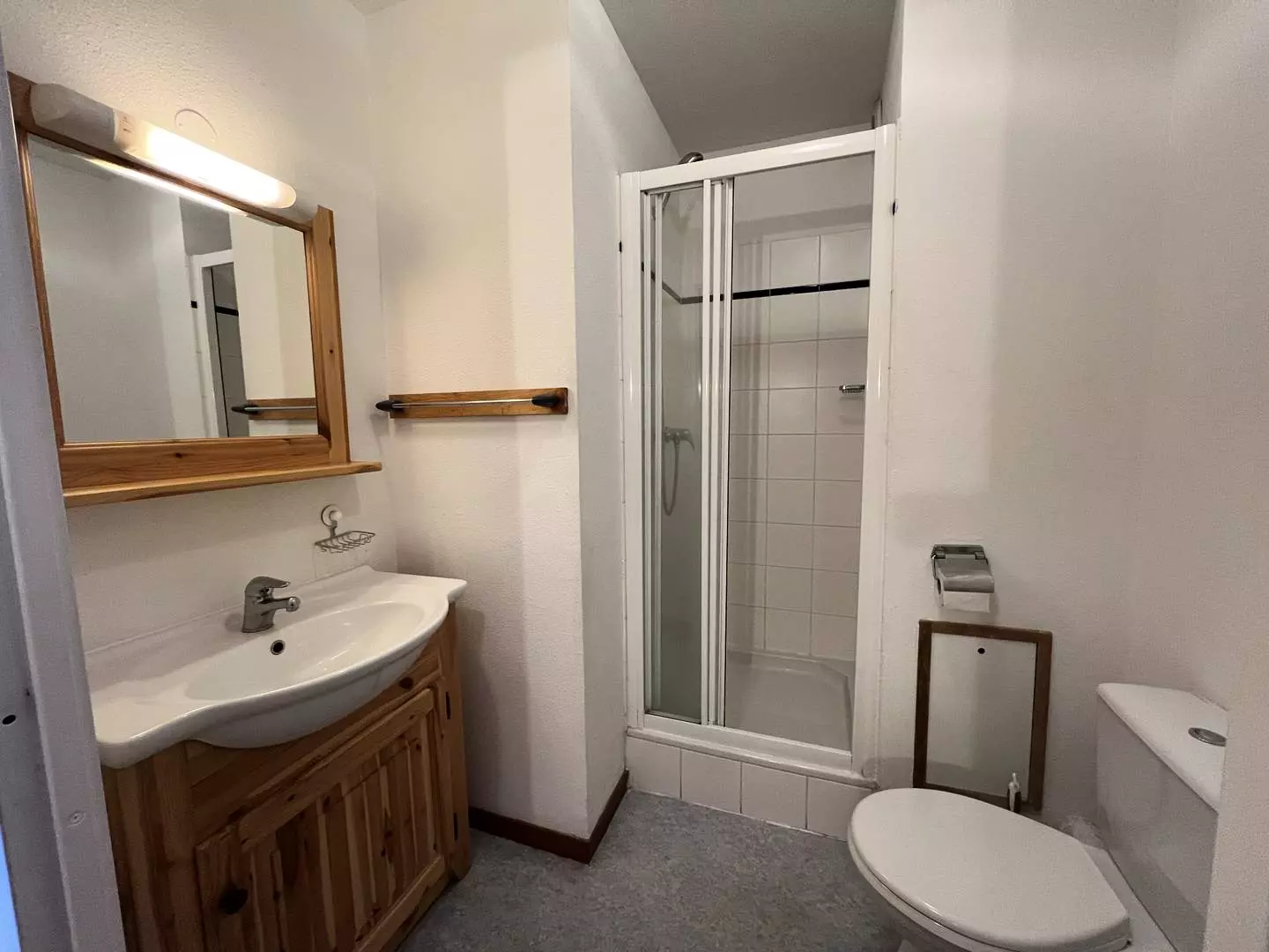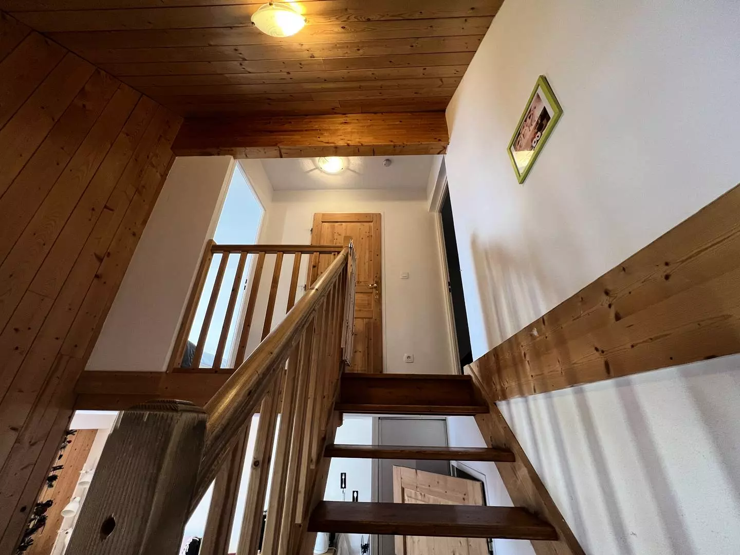 * on the lower level: a large entrance hall, a bedroom with a double bed and a shower room, a bathroom with washing machine, a separate toilet, a second bedroom with a double bed, a living room with kitchenette with a sofa bed and a staircase leading to the attic, a south-facing terrace of 11.62m2 with a view of the Aiguilles d'Arves. End-of-stay cleaning included for the winter season 2024-2025