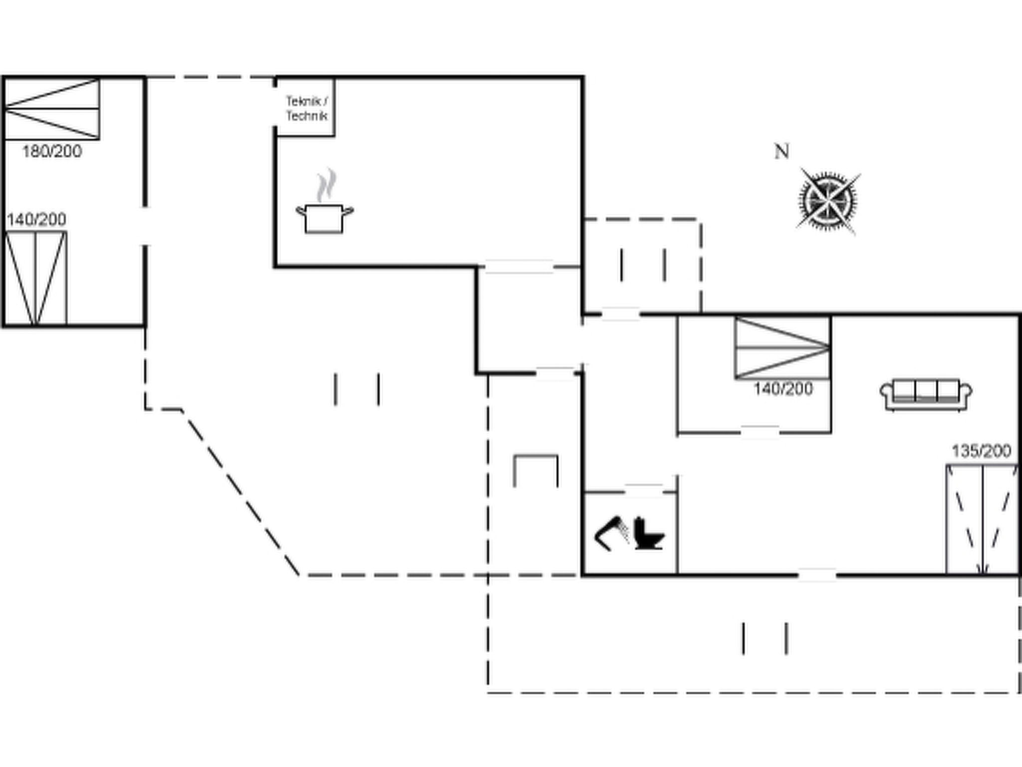 Single-family house, built in 1978. 375 m from the sea. Private: property 1'294 m2, well-kept garden. Terrace (55 m2), barbecue, parking at the house. Grocery 1 km. Golf course 3.8 km. The owner does not accept any youth groups.