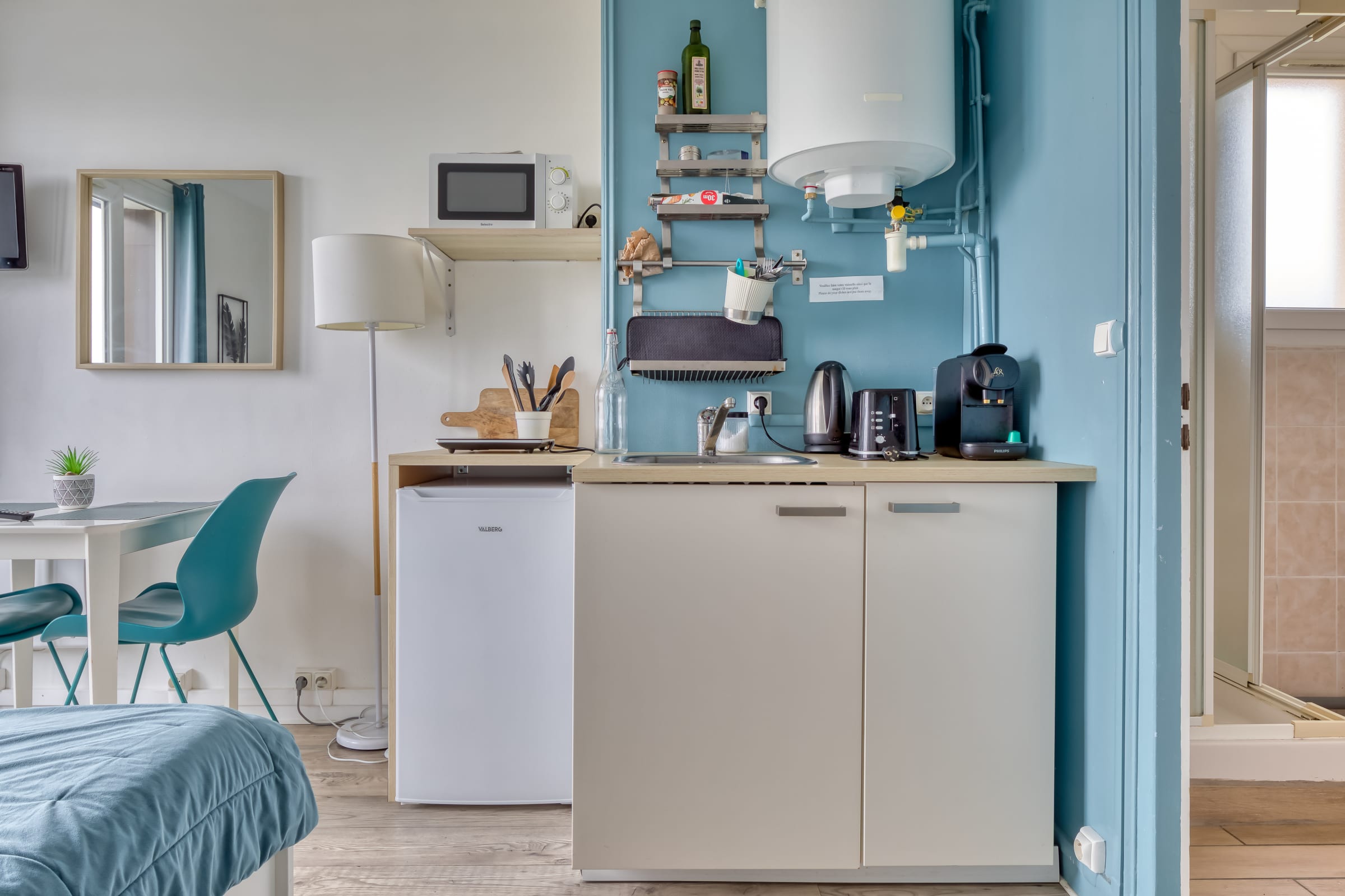 Located on the 2ᵉ floor of a secure building, this functional 20m2 studio apartment is ideal for a simple stay. It comprises a living room with kitchenette and a sleeping area, as well as a shower room with separate toilet.
