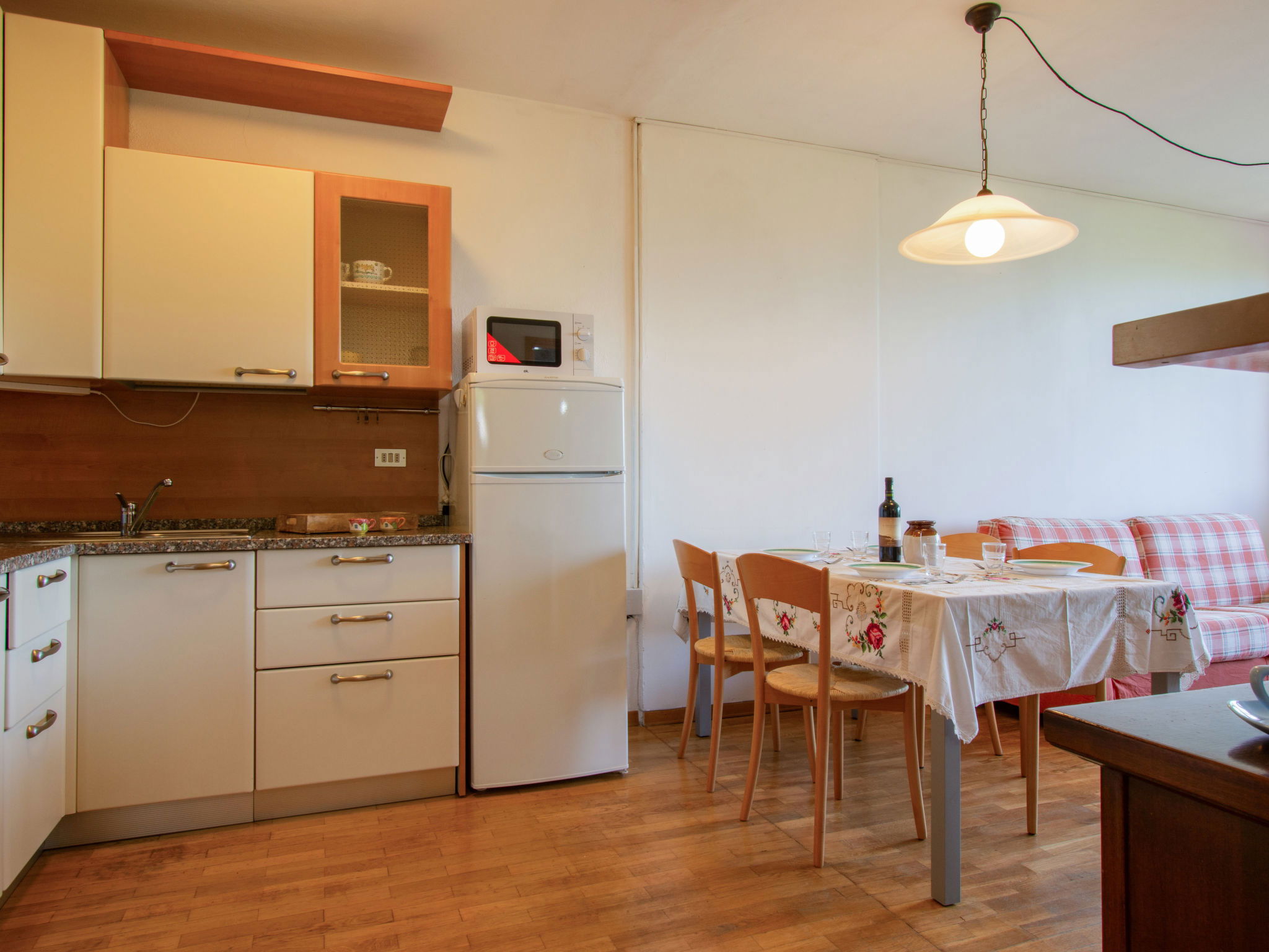 "Bravone", 3-room apartment 55 m2. Cosy and wooden furniture furnishings: living/dining room with dining table and digital TV. Exit to the terrace. 1 double bedroom with panoramic window with shower/bidet/WC with 1 x 2 bunk beds. Kitchen (4 gas rings, toaster, kettle, microwave). Shower/bidet/WC. Wooden floors. Large terrace. Terrace furniture. Panoramic view of the ski run. Facilities: Internet (WiFi, free). Please note: non-smokers only. Maximum 1 pet/ dog allowed. Smoke alarm, fire extinguisher. IT047023C26VIF7Z56