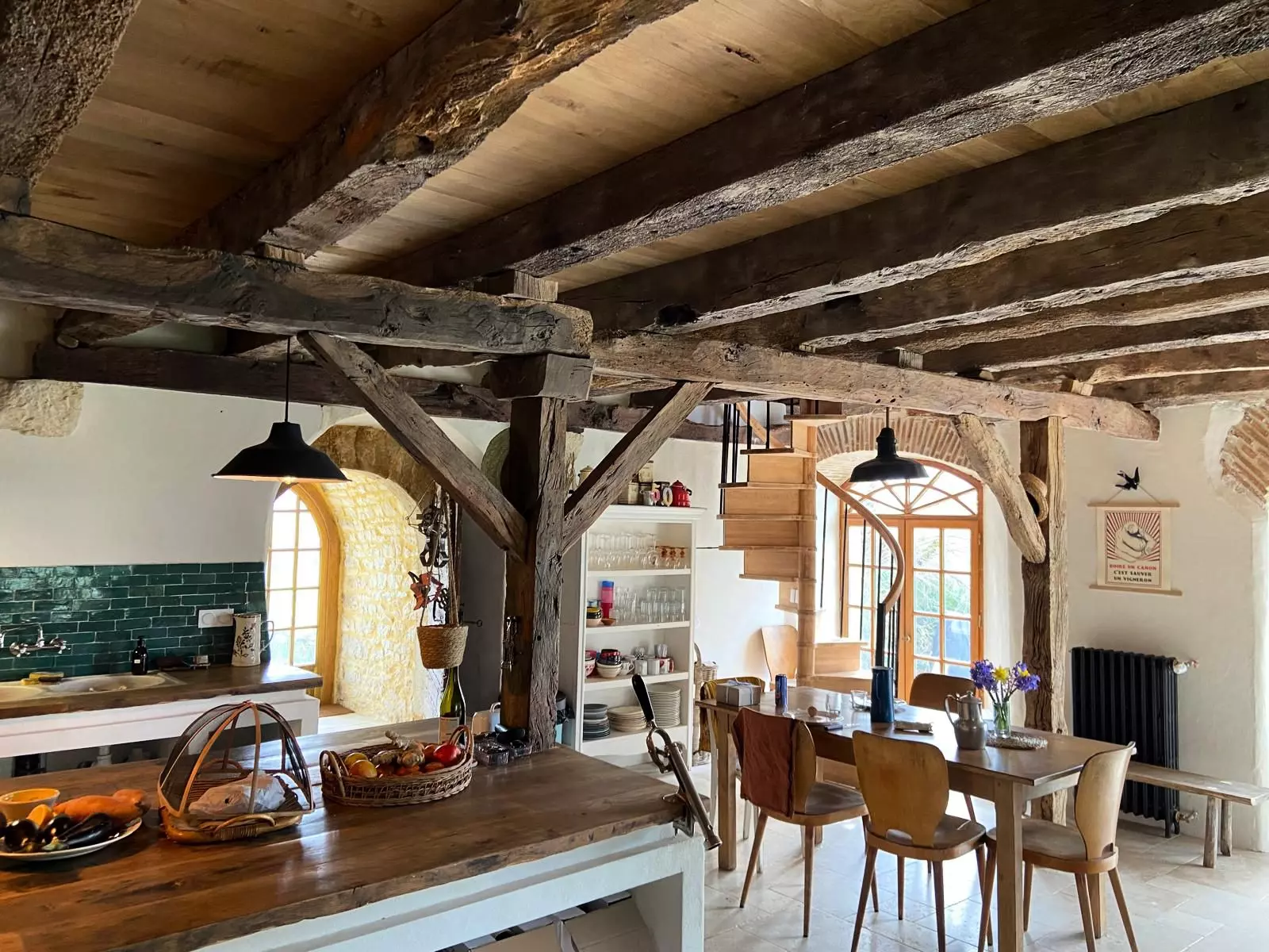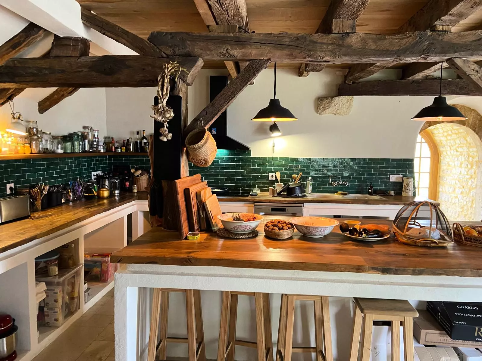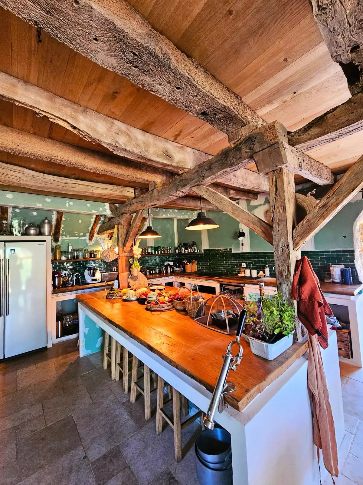 - A fully equipped kitchen, with central island and high stools – the living heart of the home.