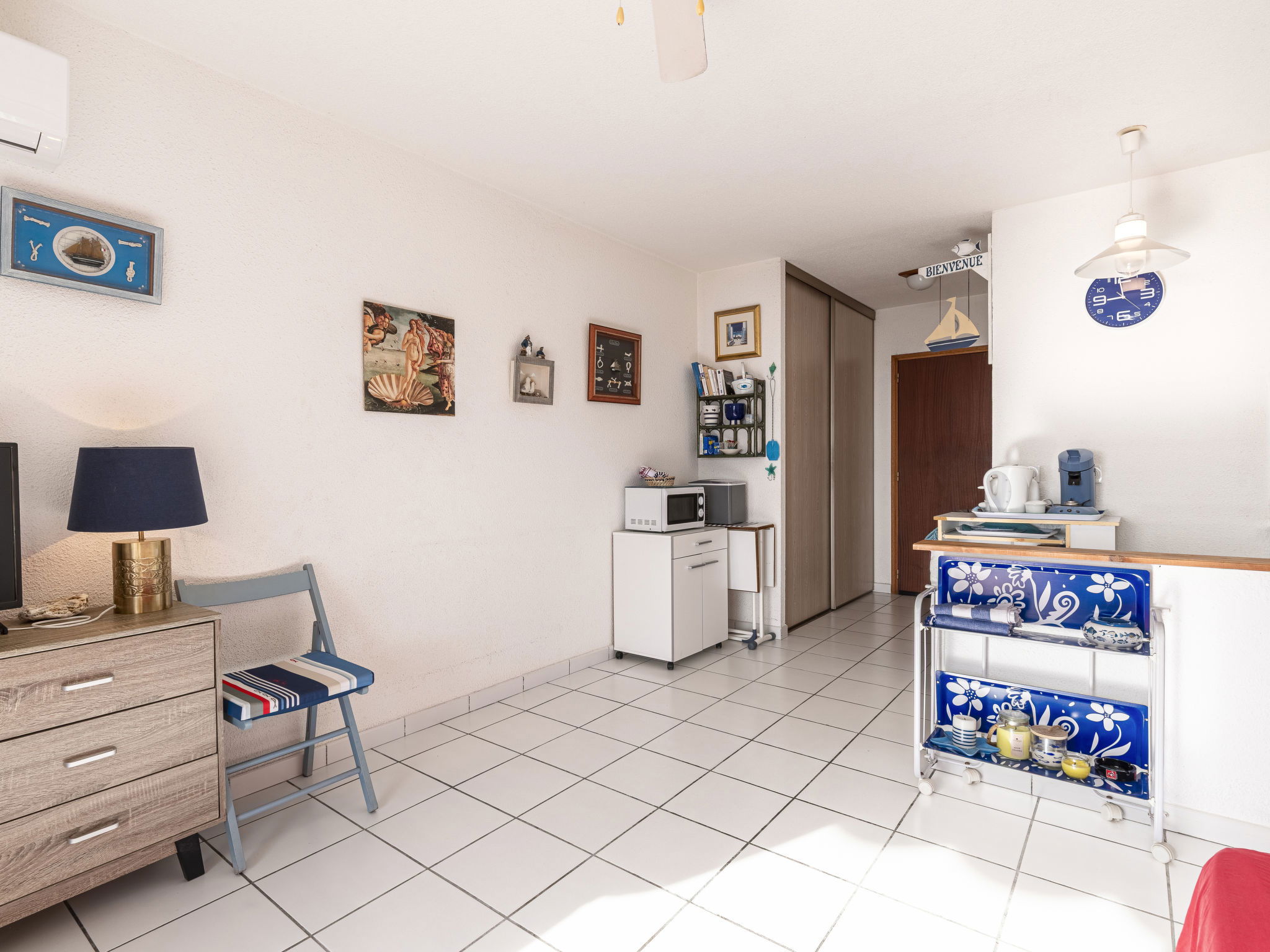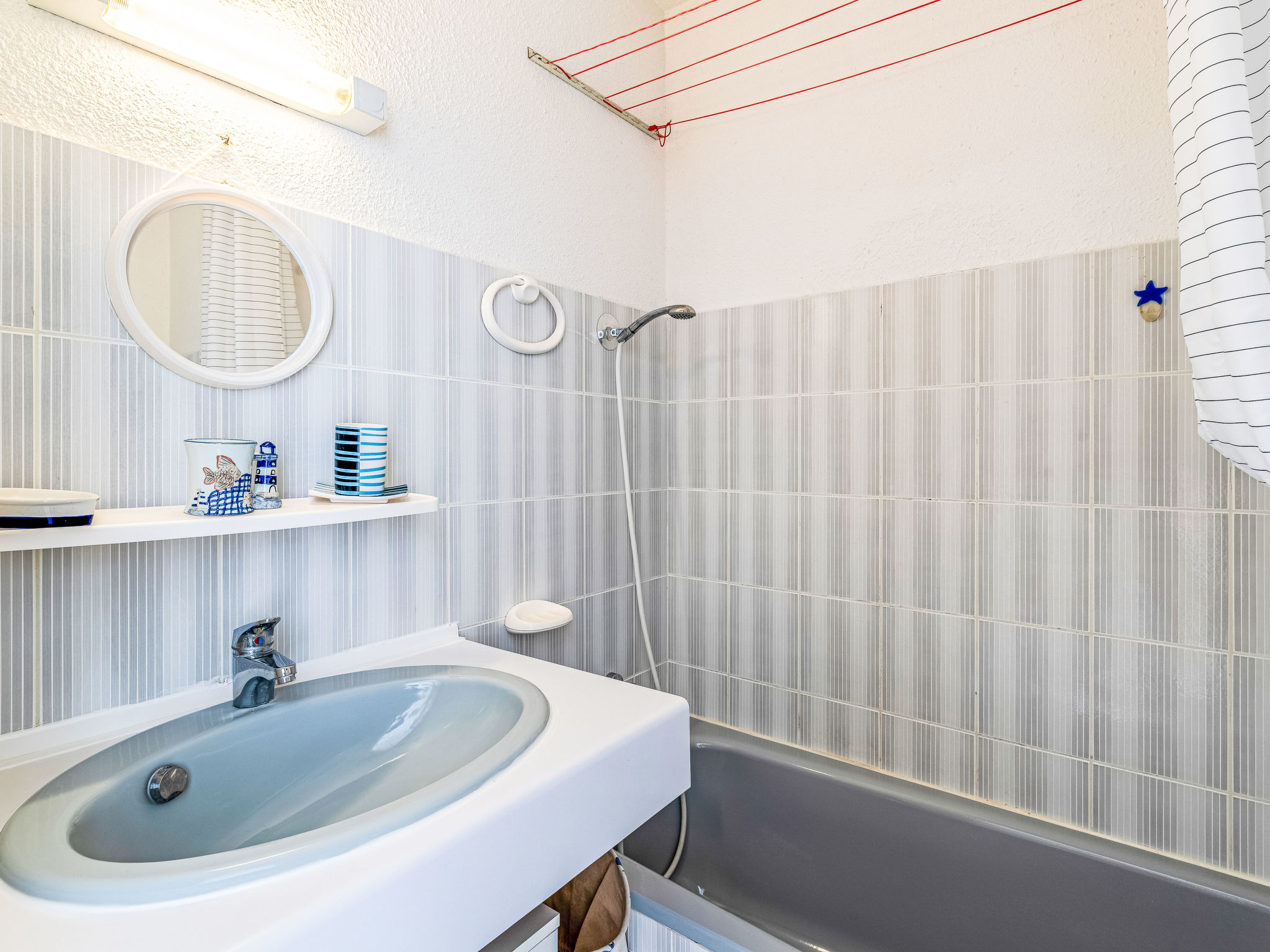 1-room studio 30 m2 on 1st floor. Beautiful furnishings: Studio with 1 double sofabed (140 cm, length 190 cm), dining table and TV (flat screen). Exit to the balcony. Kitchenette (2 ceramic glass hob hotplates, toaster, kettle, microwave, electric coffee machine). Shower/WC. Electric heating, air-conditioning. Balcony. Balcony furniture, sitting area. Beautiful panoramic view of the sea. Facilities: hair dryer. Internet (WiFi, free). Parking. Please note: smoke alarm. Offer by a private individual according to Art. 155, IV of CGI.