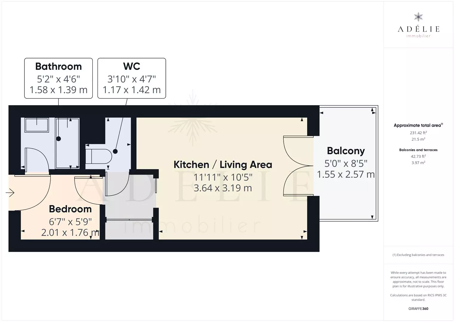 BEL310: STUDIO for 4 people, 22m2, completely renovated, rated 2*