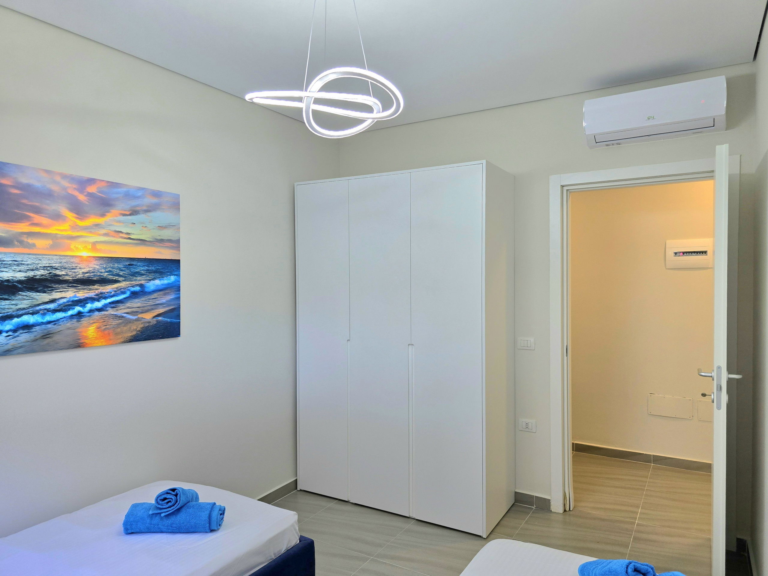 Bedroom 2: The second bedroom has 2 single beds and a wardrobe.