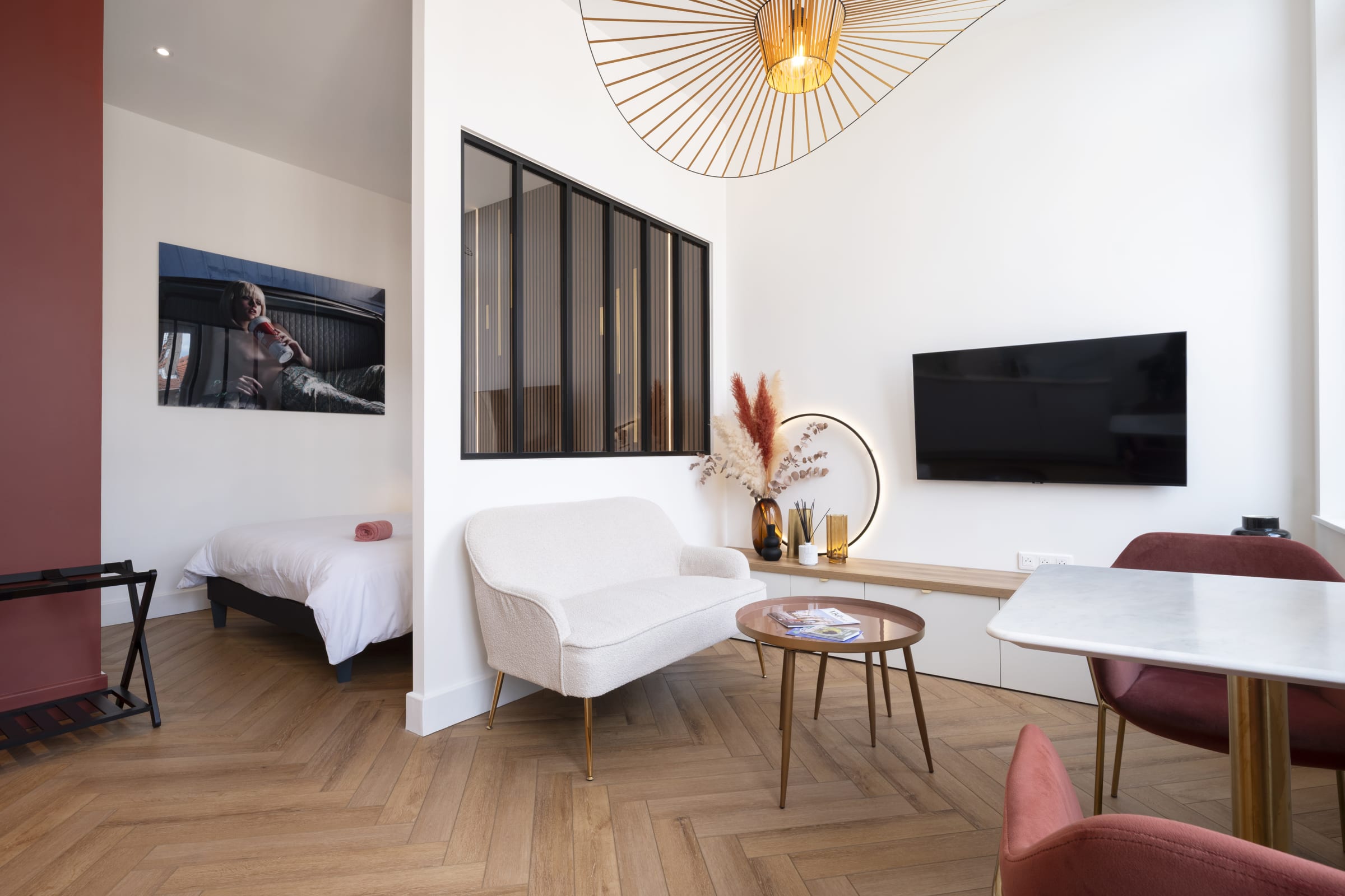 Nestled on a quiet pedestrian street, this apartment is ideal for a stay as a couple, with friends, family, or for a business trip.