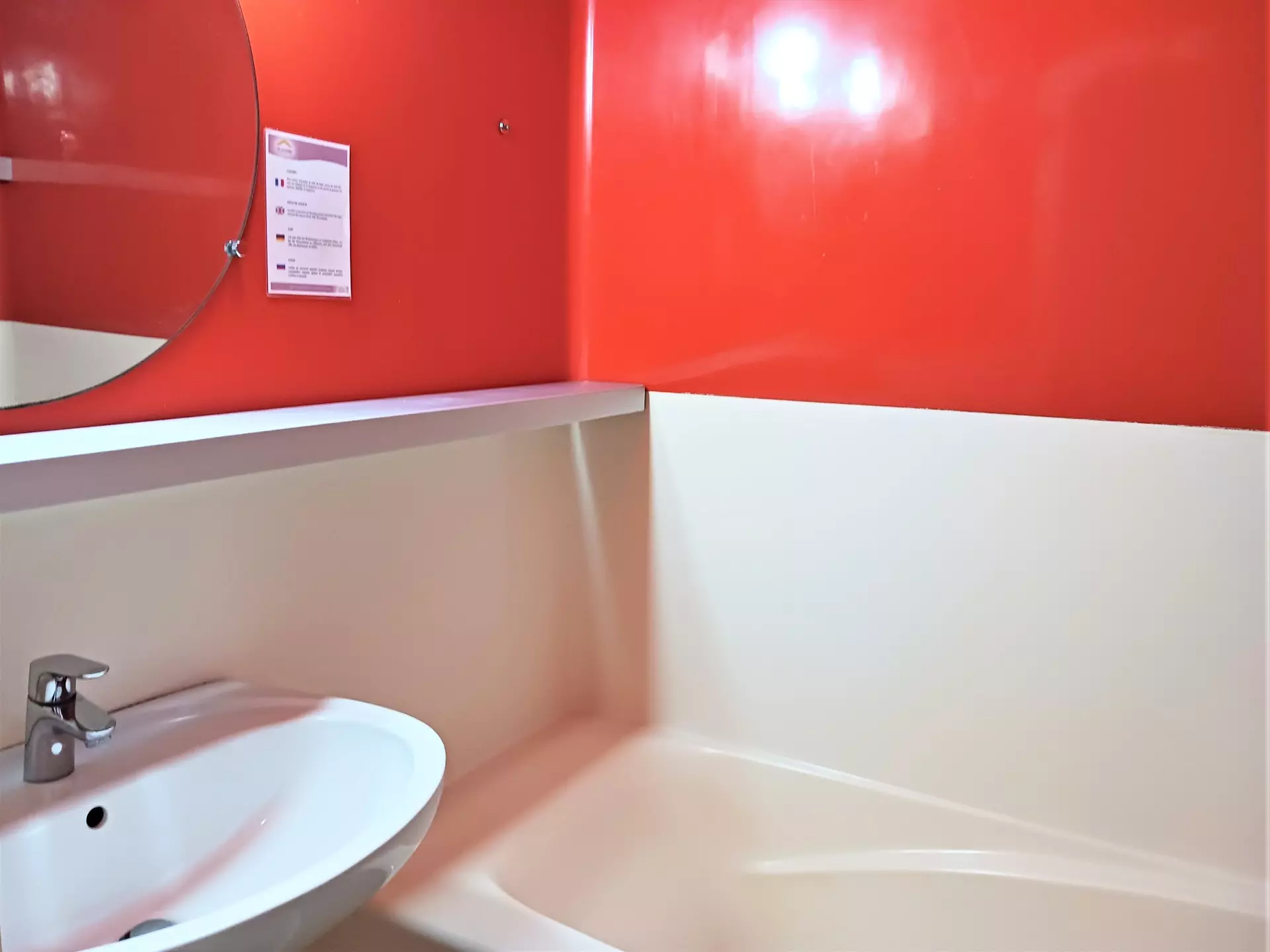 It is equipped with electric hobs, an oven, a microwave, a refrigerator and a dishwasher.