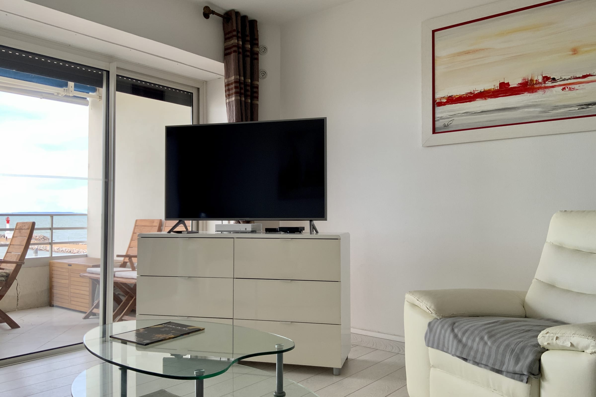 Bright and cross-ventilated, the apartment benefits from a beautiful South-West exposure, offering stunning sunsets over the sea and the canal entrance. Its private terrace allows you to fully enjoy this unique view.