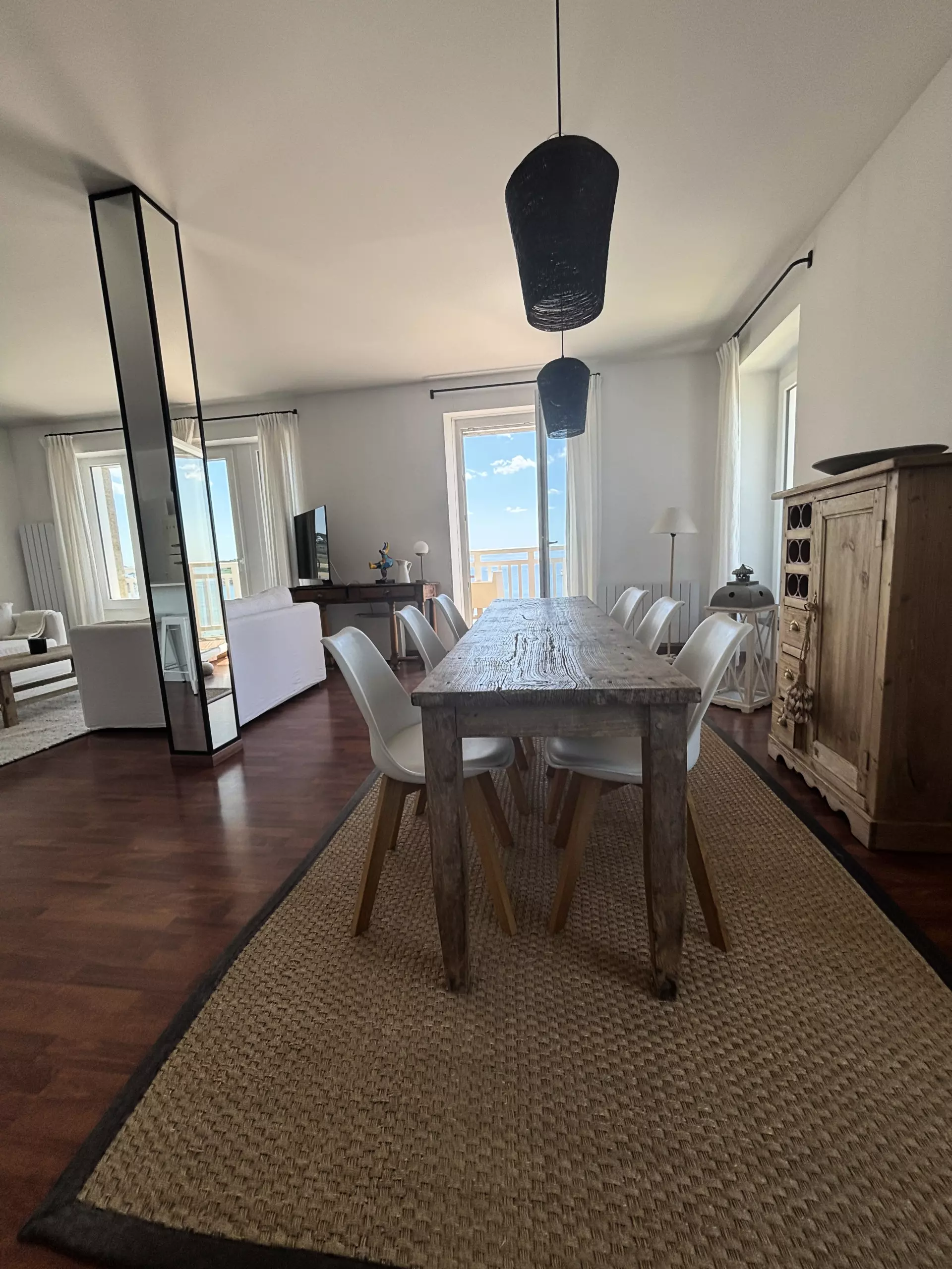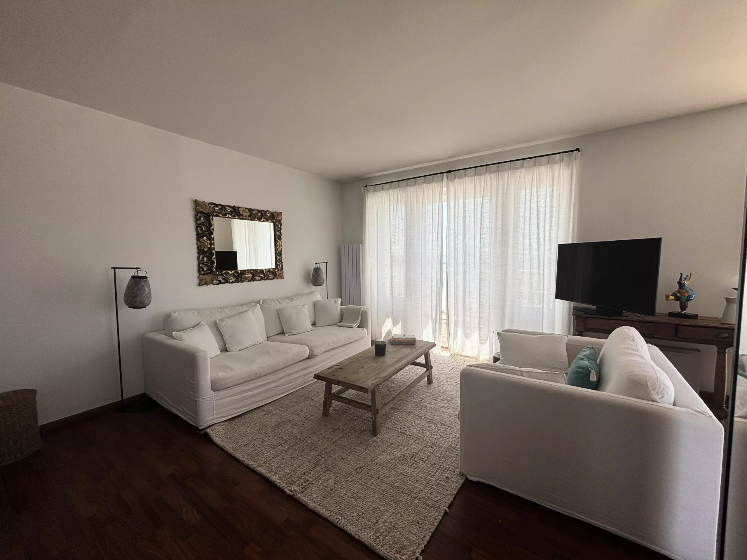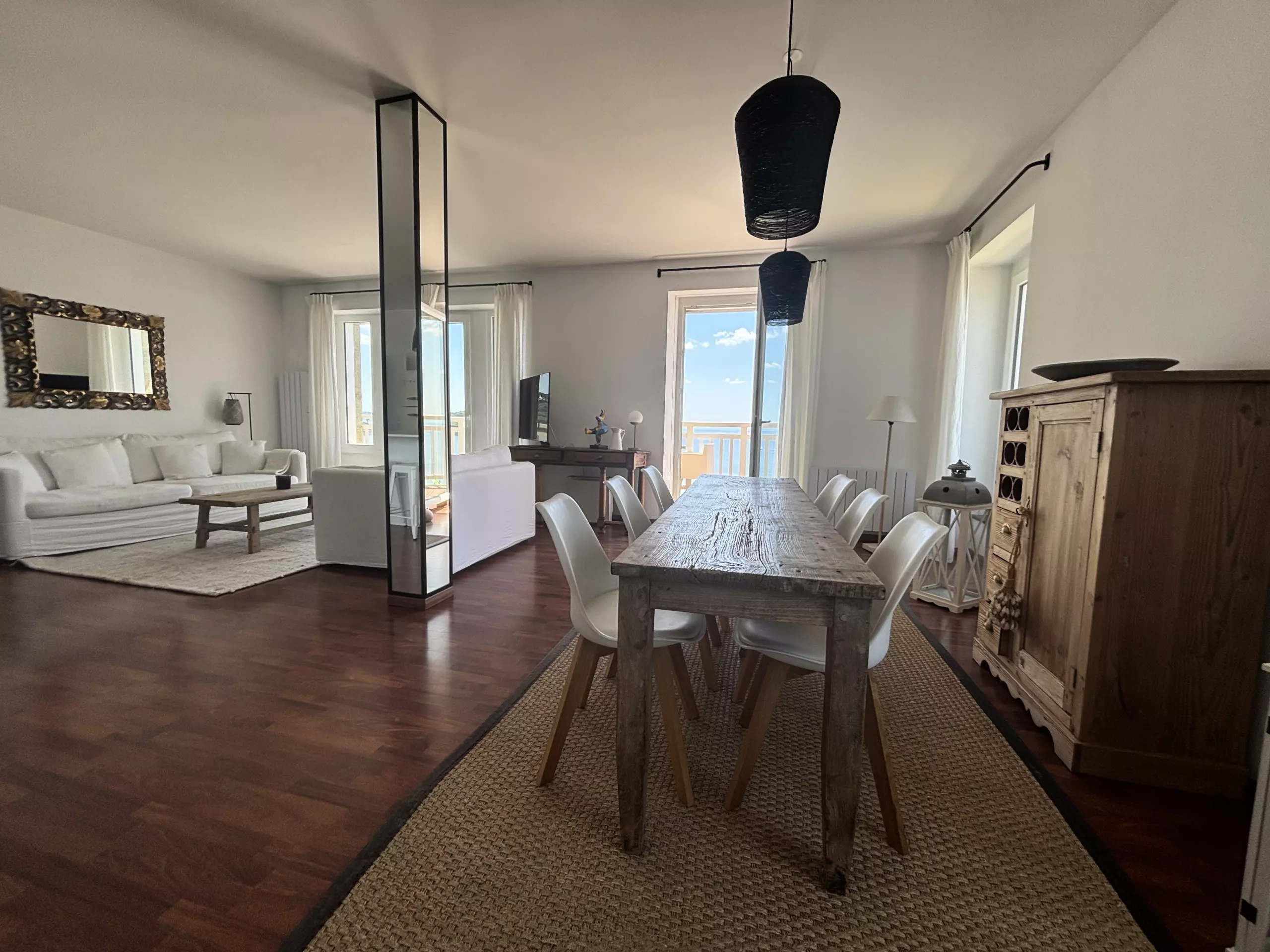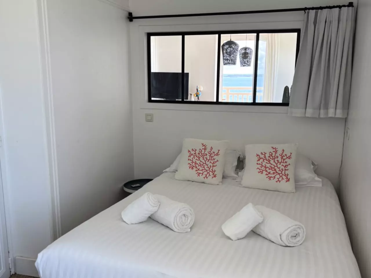 - Main room: a very bright living room with direct access to a private balcony overlooking Tresmeur beach.