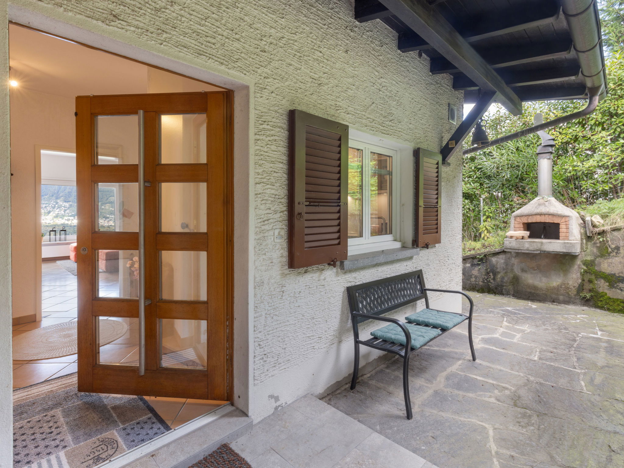 Magadino 15 km from Locarno: Very beautiful, comfortable single-family house "Villetta Felice mit Pool", 230 m a.s.l., 2 storeys, built in 1965, renovated in 2023. Above Magadino, in a quiet, sunny, elevated position, north-west facing position. Private: large, beautiful garden 200 m2 (fenced), swimming pool angular (7 x 3 m, depth 150 cm, seasonal availability: 01.May. - 15.Oct.) with shutter cover and salt-electrolysis pool-cleaning system. Outdoor shower. In the house: central heating system. Stepped path (6 steps) to the house. Grocery 800 m, supermarket 6 km, restaurant 800 m, bus stop "Orgnana, Monda" 80 m, railway station "Bellinzona" 19 km. Sports harbour 1.5 km, golf course (18 hole) 19 km, minigolf 2.2 km, walking paths from the house 10 m. Nearby attractions: Mercato Luino IT, Parco botanico del Gambarogno, Castelli di Bellinzona. Well-known lakes can easily be reached: Lago Maggiore. Hiking paths: Bolle di Magadino, Valle Verzasca, Vallemaggia. The owner does not accept any youth groups. The garden house remains locked as the pool equipment is located there. It is checked once a month by the pool technician who takes the readings.