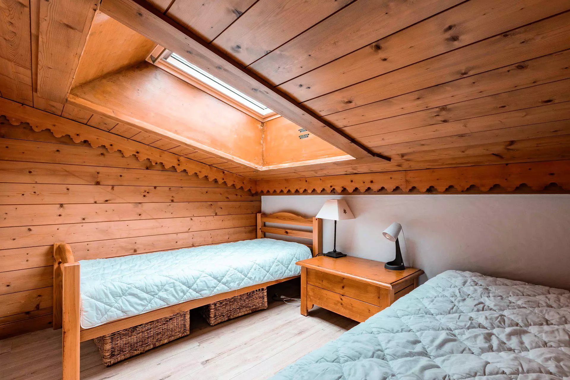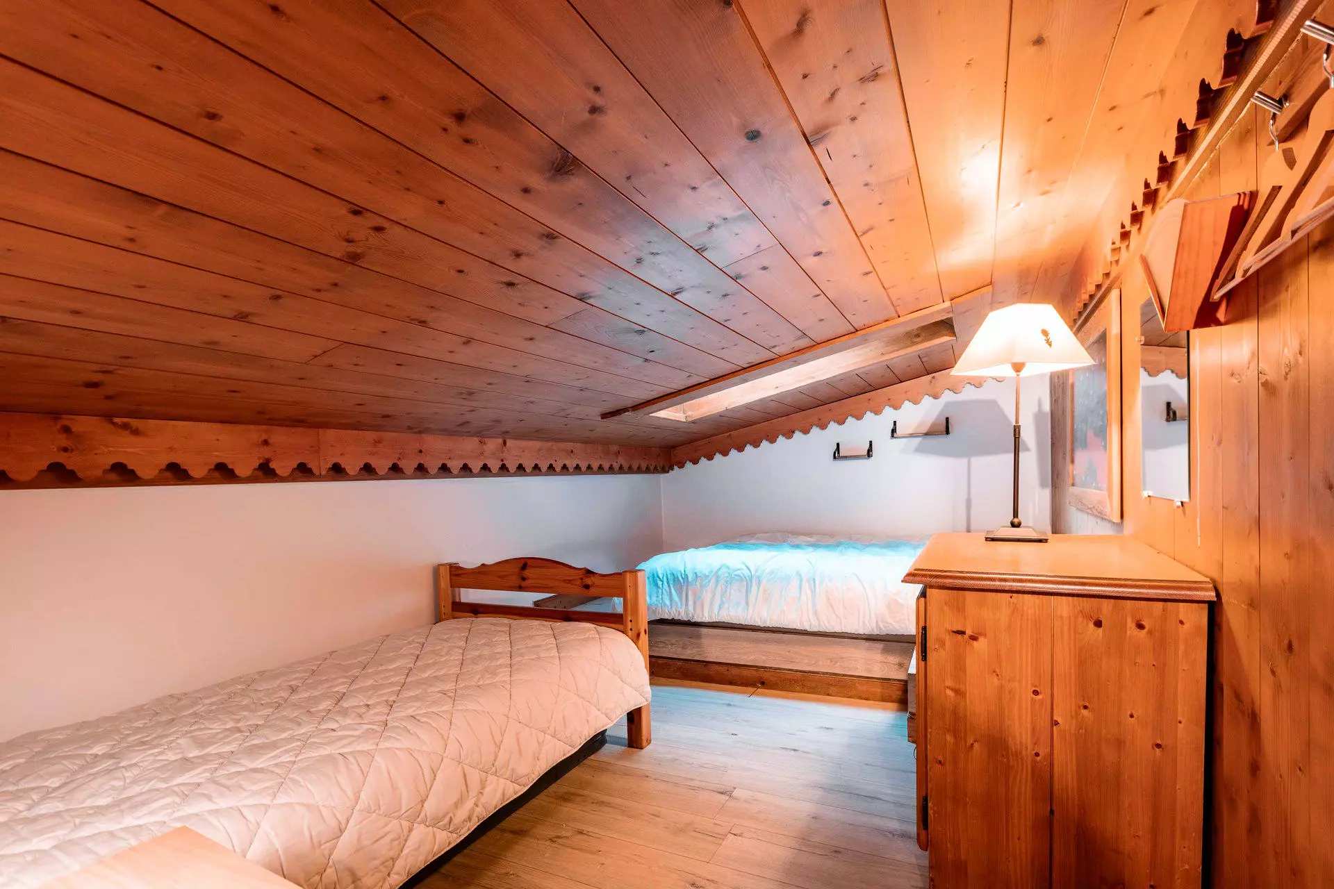 A mezzanine with 1 double bed (140cm) and 3 single beds.