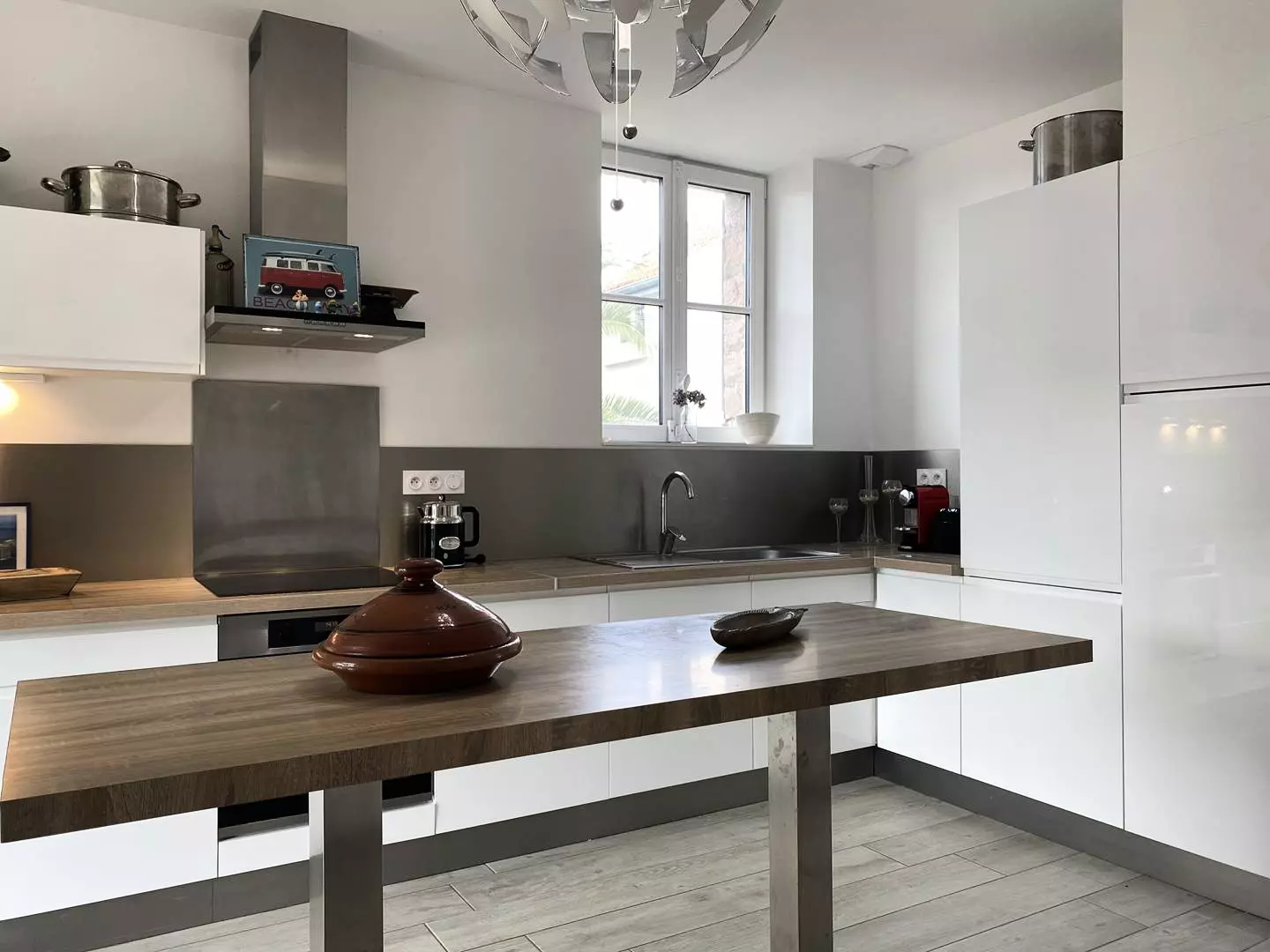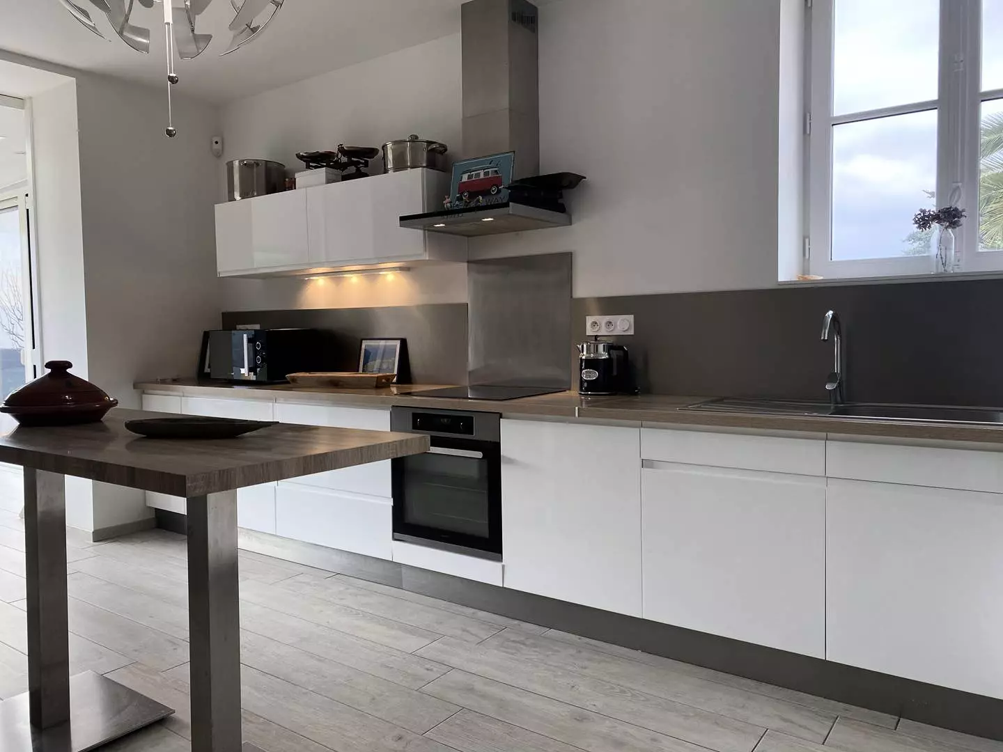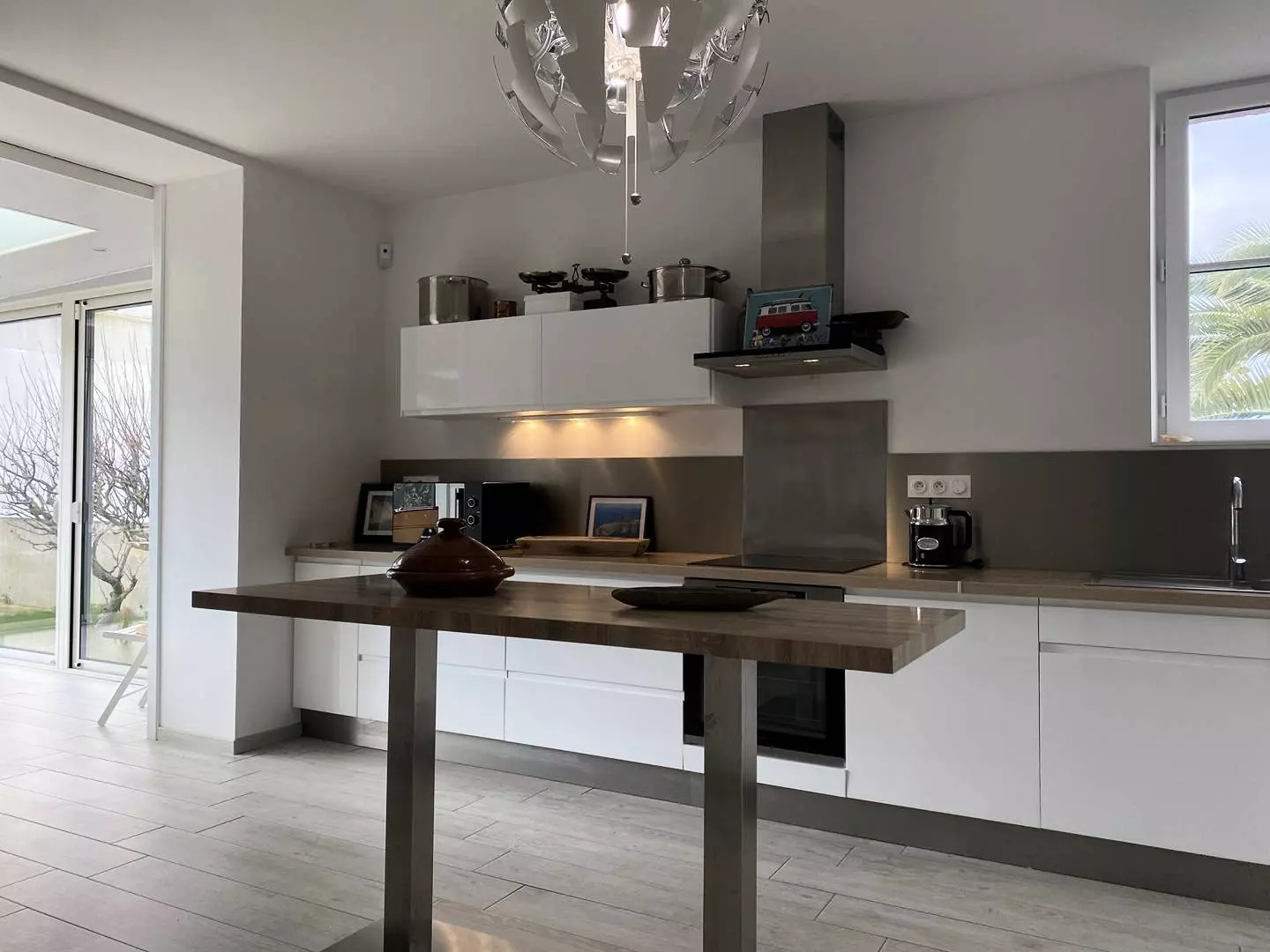 - A fully equipped open kitchen with central island;