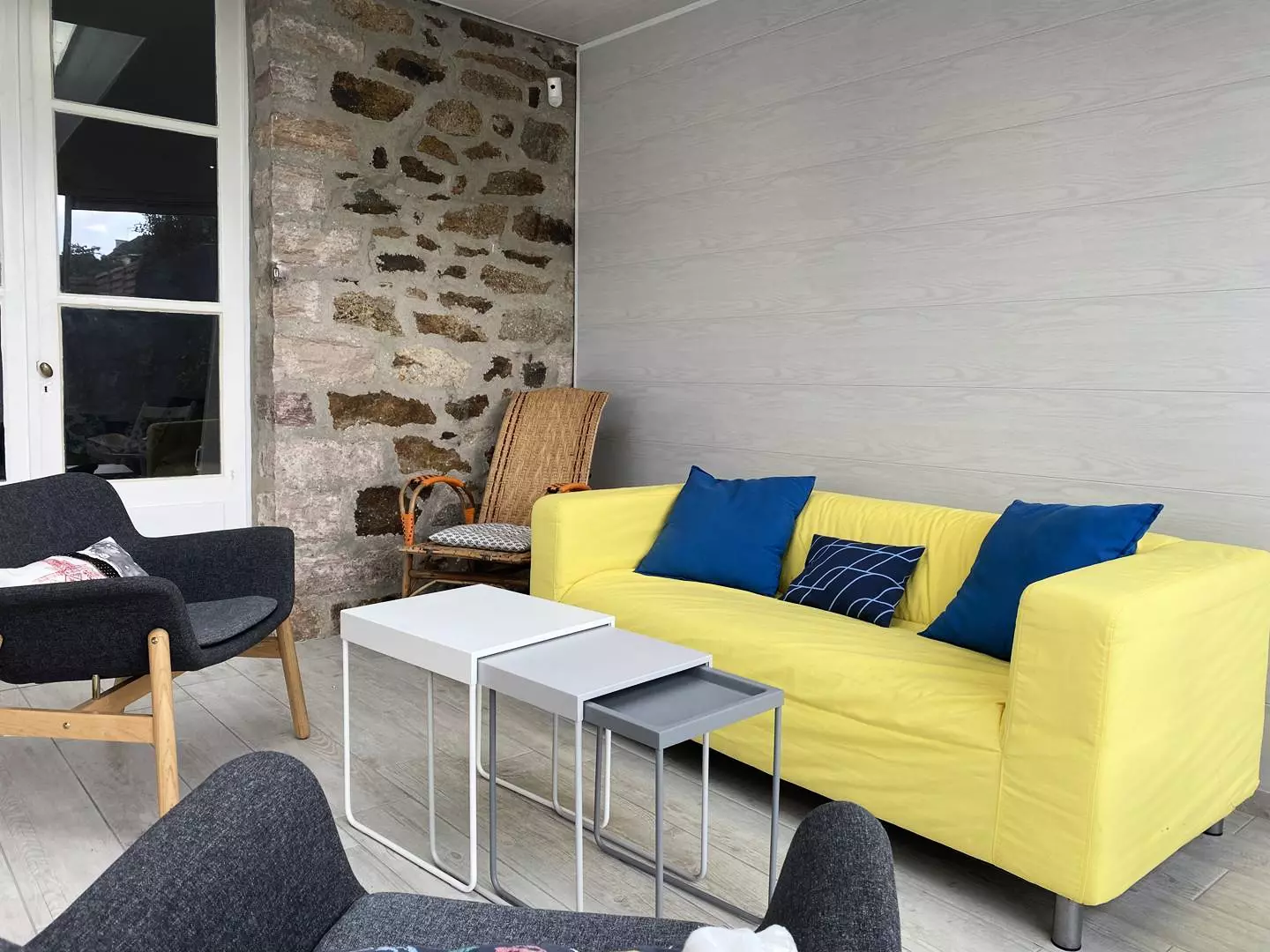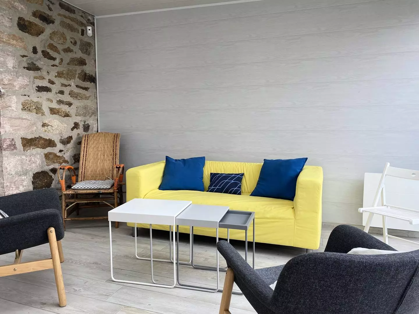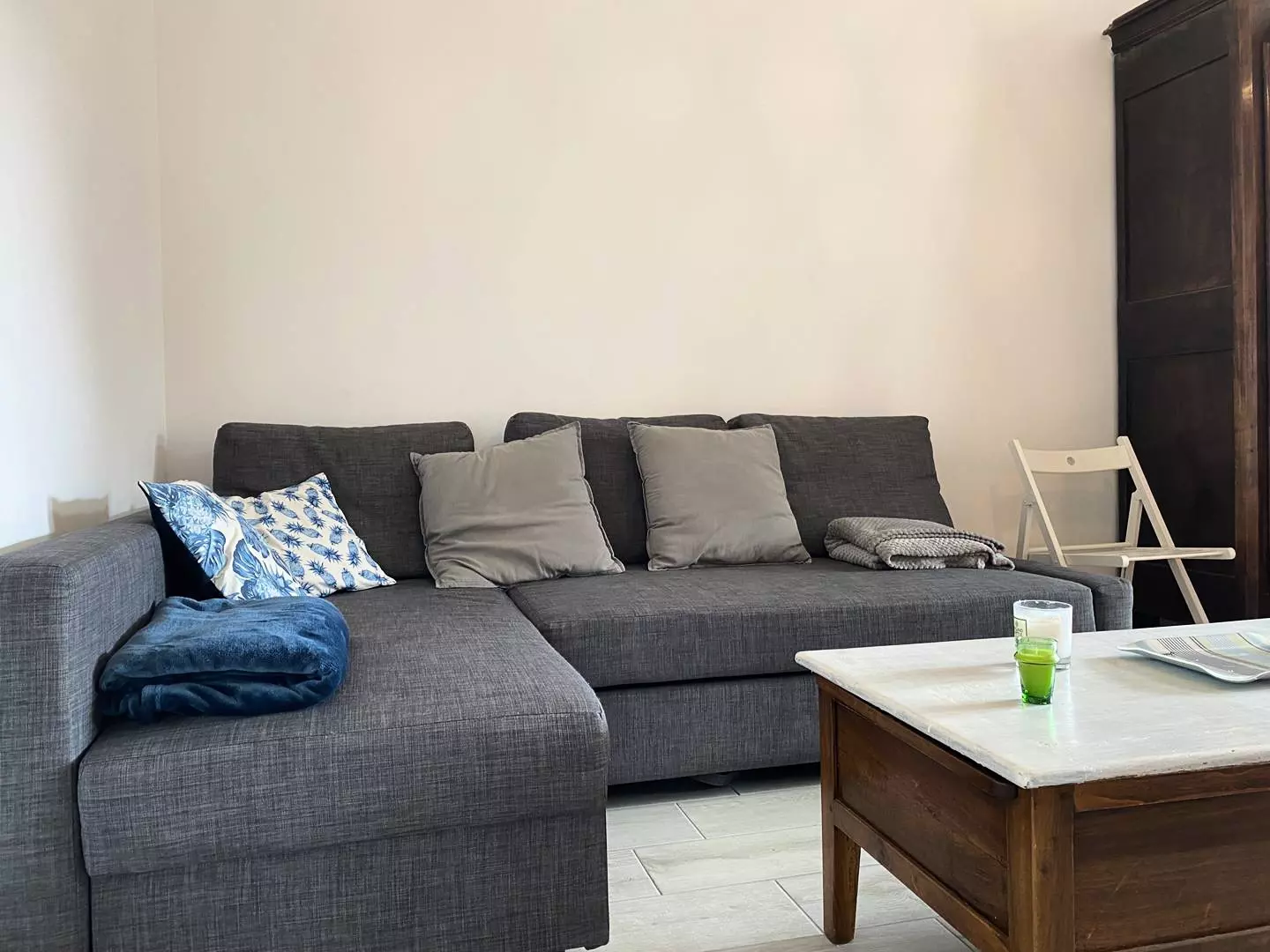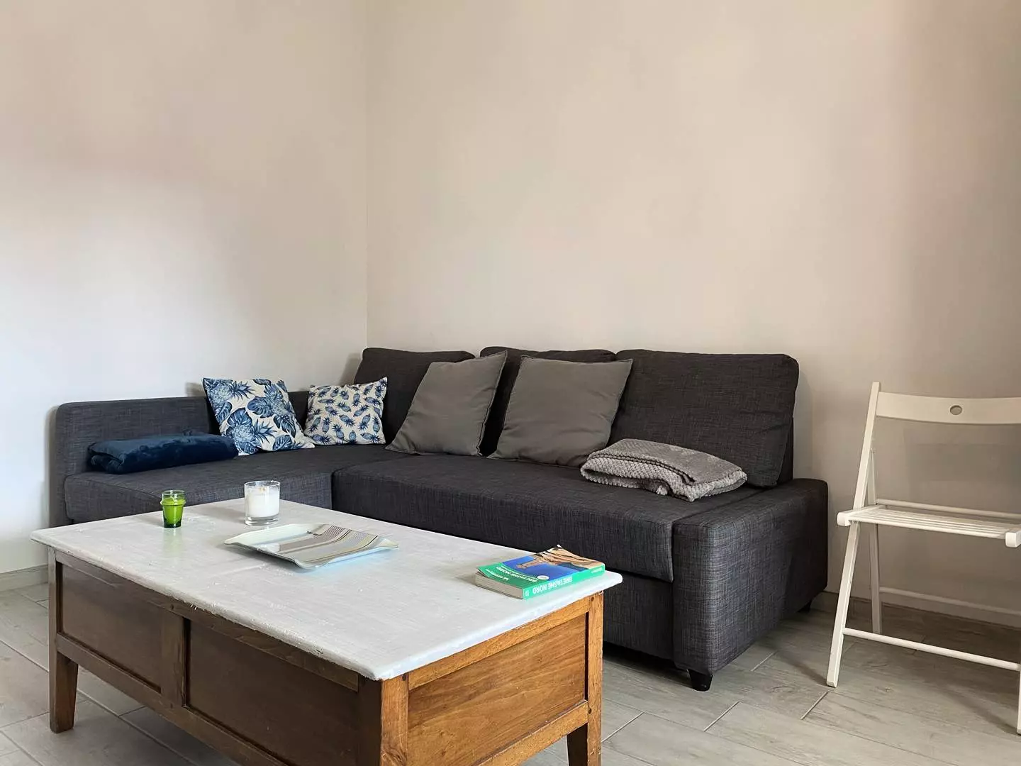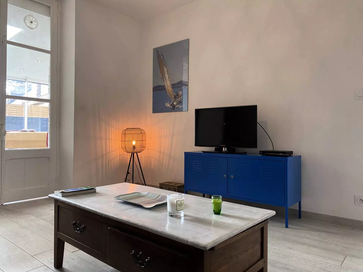 - A closed living room with TV (the television only allows viewing DVDs) and the possibility of opening onto the living room;