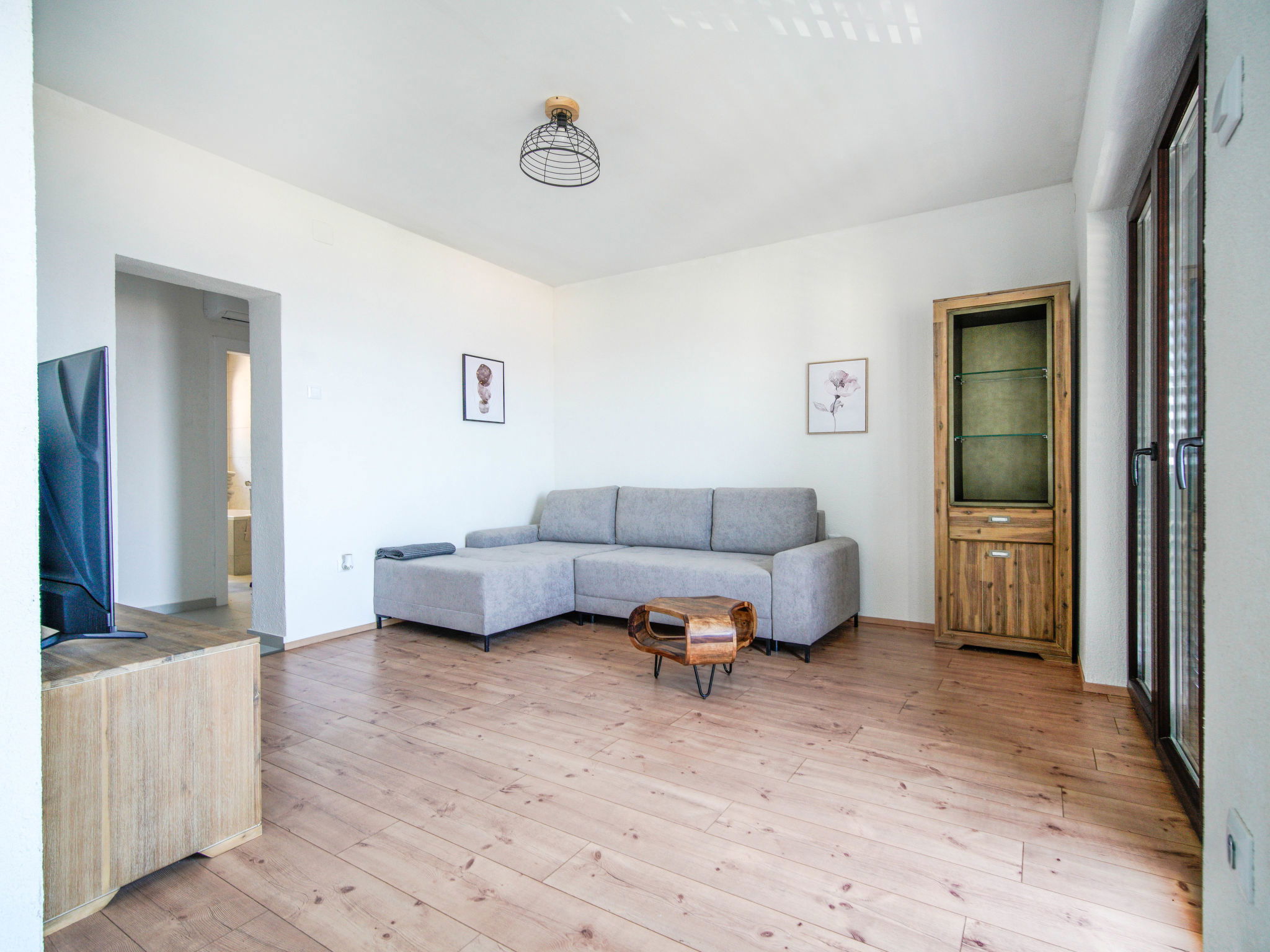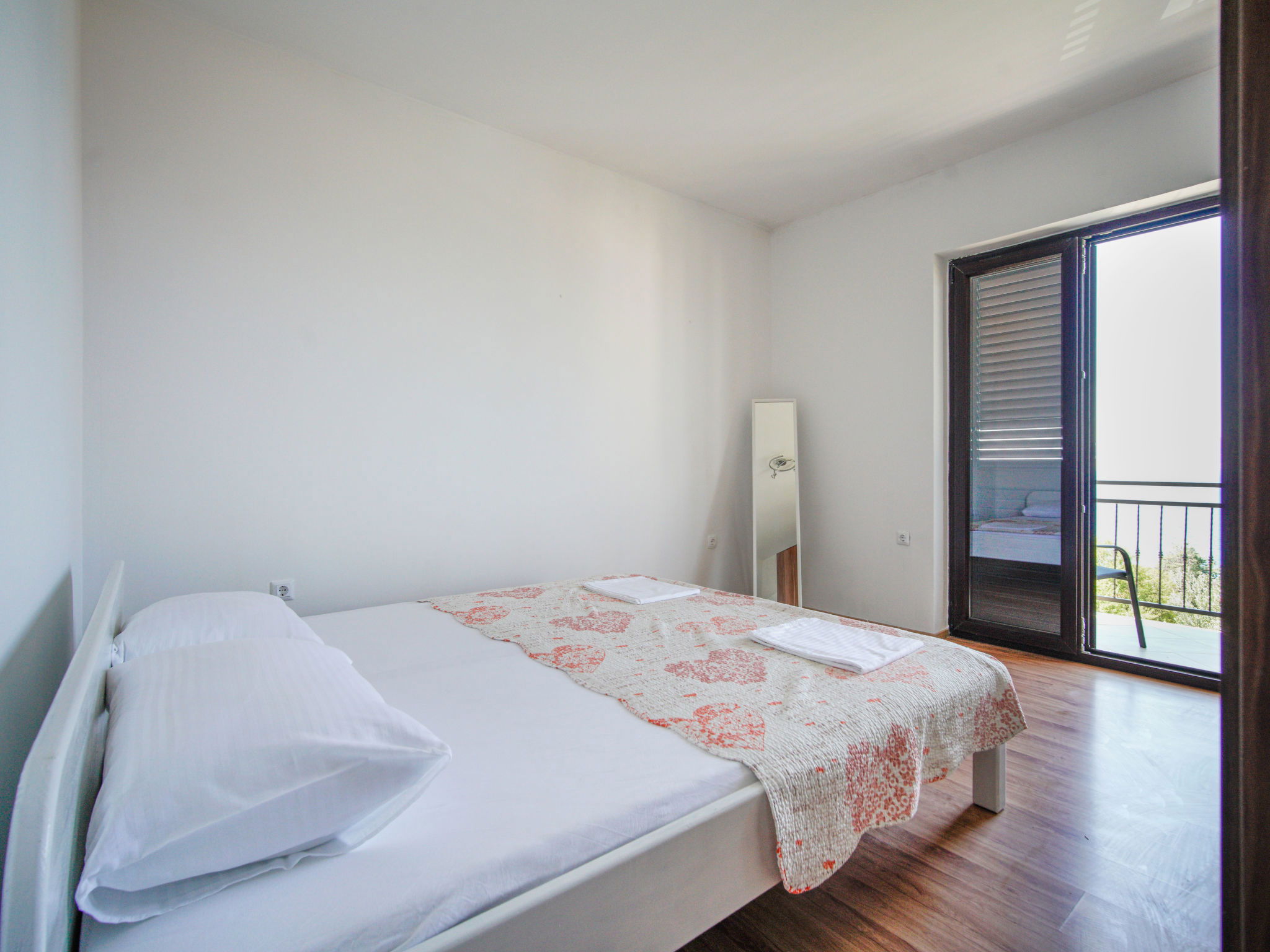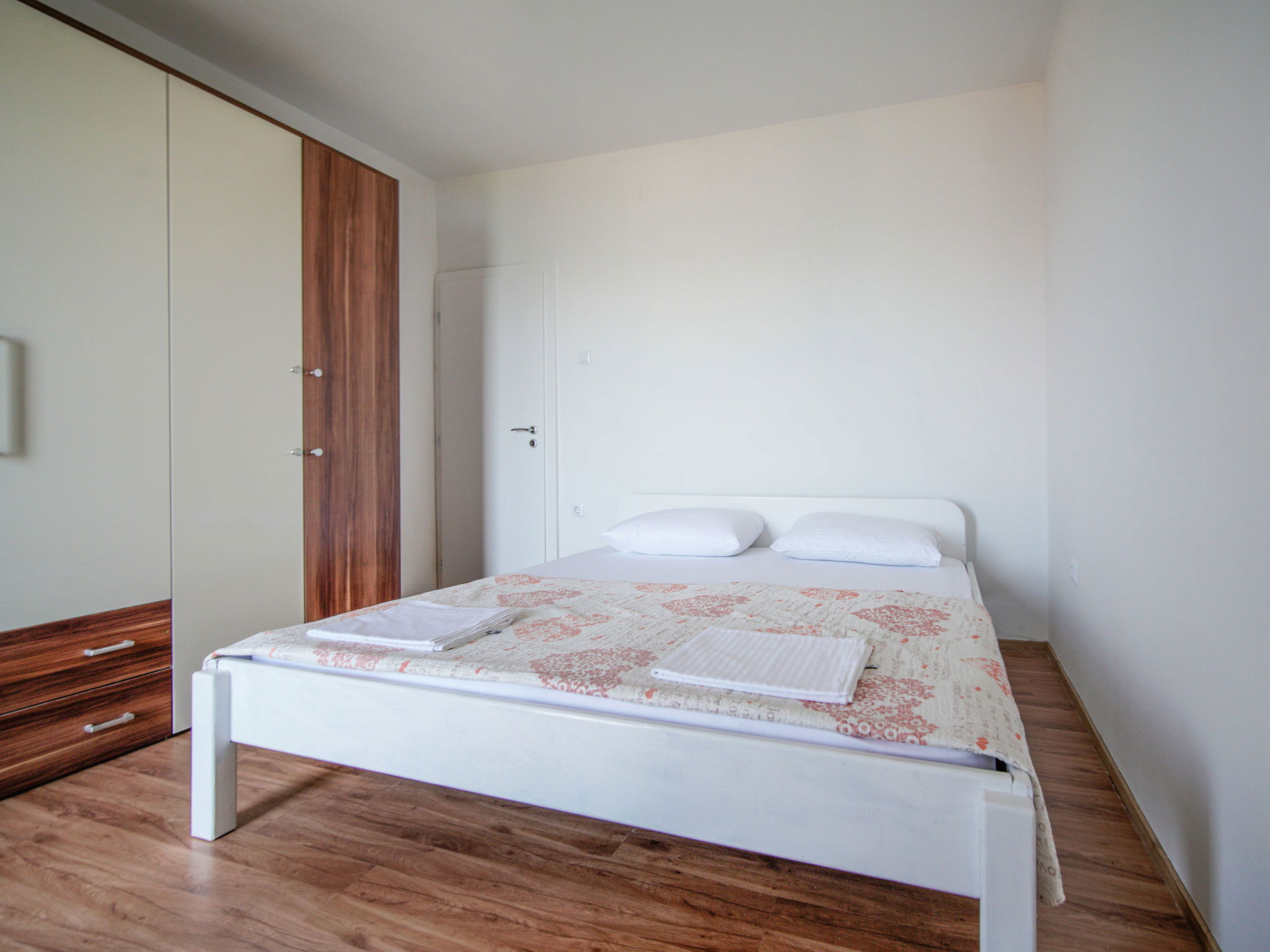 3-room apartment 88 m2 on 2nd floor. Living/dining room with satellite TV. Exit to the balcony. 1 room with 1 double bed (2 x 90 cm, length 200 cm). Exit to the balcony. 1 room with 1 double bed (2 x 80 cm, length 200 cm), shower/WC and satellite TV. Exit to the balcony. Open kitchen (oven, dishwasher, 4 induction hot plates, toaster, kettle, microwave, freezer, electric coffee machine). Bath/WC. Forced-air heating. Balcony 13 m2, small balcony 3 m2. Balcony furniture. Beautiful view of the sea. Facilities: washing machine, iron, hair dryer. Internet (WiFi, free). Please note: 1 small pet/ dog allowed. Fire extinguisher.