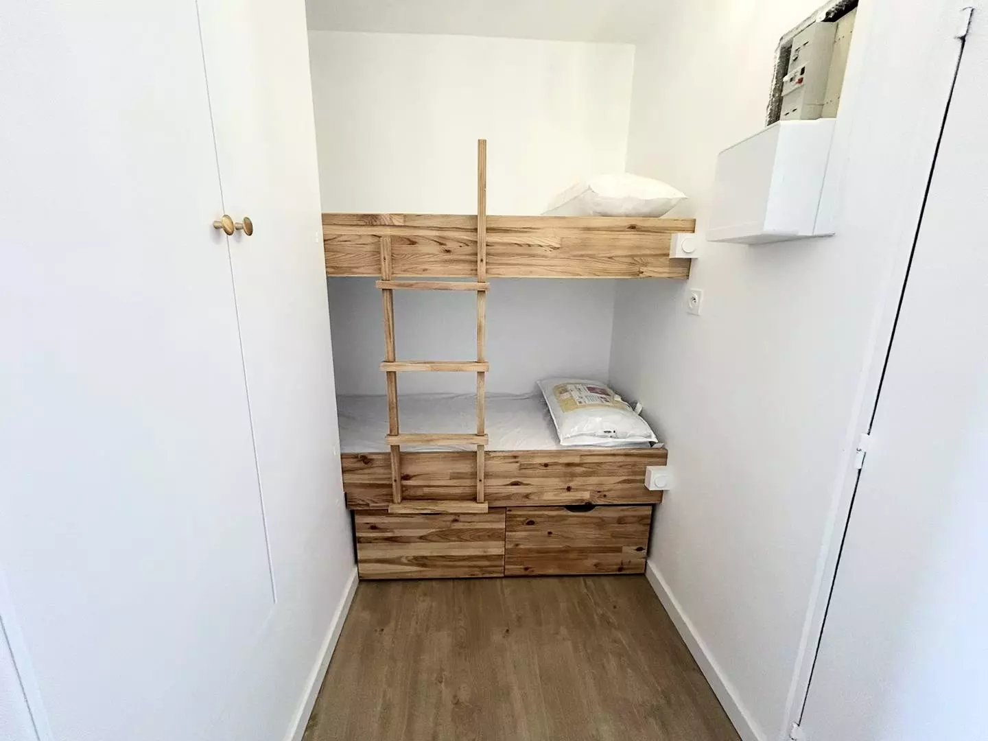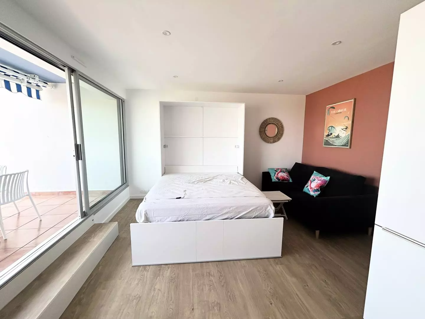 PORT CAMARGUE - Luxury residence directly on the South Beach, Studio Cabin completely renovated, on the 2nd floor composed of a living room opening onto a large terrace of 21m² with magnificent sea view, fold-out bed and air conditioning, a cabin with bunk bed (2x90 cm), a fully equipped kitchen dishwasher, microwave, fridge / freezer, oven, washing machine. Bathroom and separate toilet. Close to the shopping center, Thalassotherapy, water activities and transport. Private and secure parking. Equipped for 4 people. Pets not allowed.