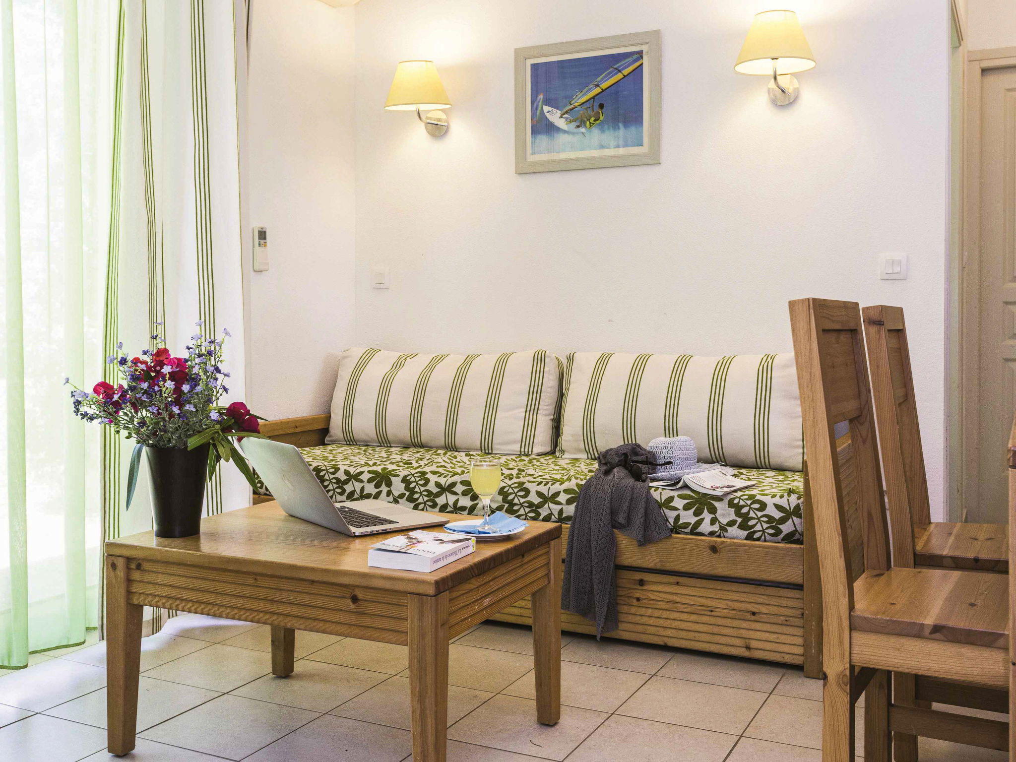 Resort "Acqua Bella/Acqua Linda", 2 storeys. 33 houses in the resort. 273 apartments in the residence. In the hamlet L'Avillanella 3 km from the centre of Moriani-Plage, on the outskirts, 8 km from the centre of Folelli, 38 km from the centre of Bastia, in the residential district, 150 m from the sea, 150 m from the beach, direct access to the beach. For shared use: large garden with lawn and plants, 2 swimming pools fenced (20 x 12 m, seasonal availability: 15.Apr. - 15.Sep.). Children's pool, boccia, children's playground. In the complex: reception, restaurant, WiFi, washing machine (for shared use, extra). Parking. Shop 6.7 km, supermarket 3 km, bus stop "Moriani, Office de Tourisme" 2.5 km, sandy beach 150 m. Golf course 21 km. Nearby attractions: Village pittoresque de Poggio Mezzana, Randonnées, Parapente, Canyoning, Activités nautiques. Please note: the photograph shows a typical example. The holiday properties may differ in living space, floorplan, equipment and furnishing. Wifi available only at the reception.