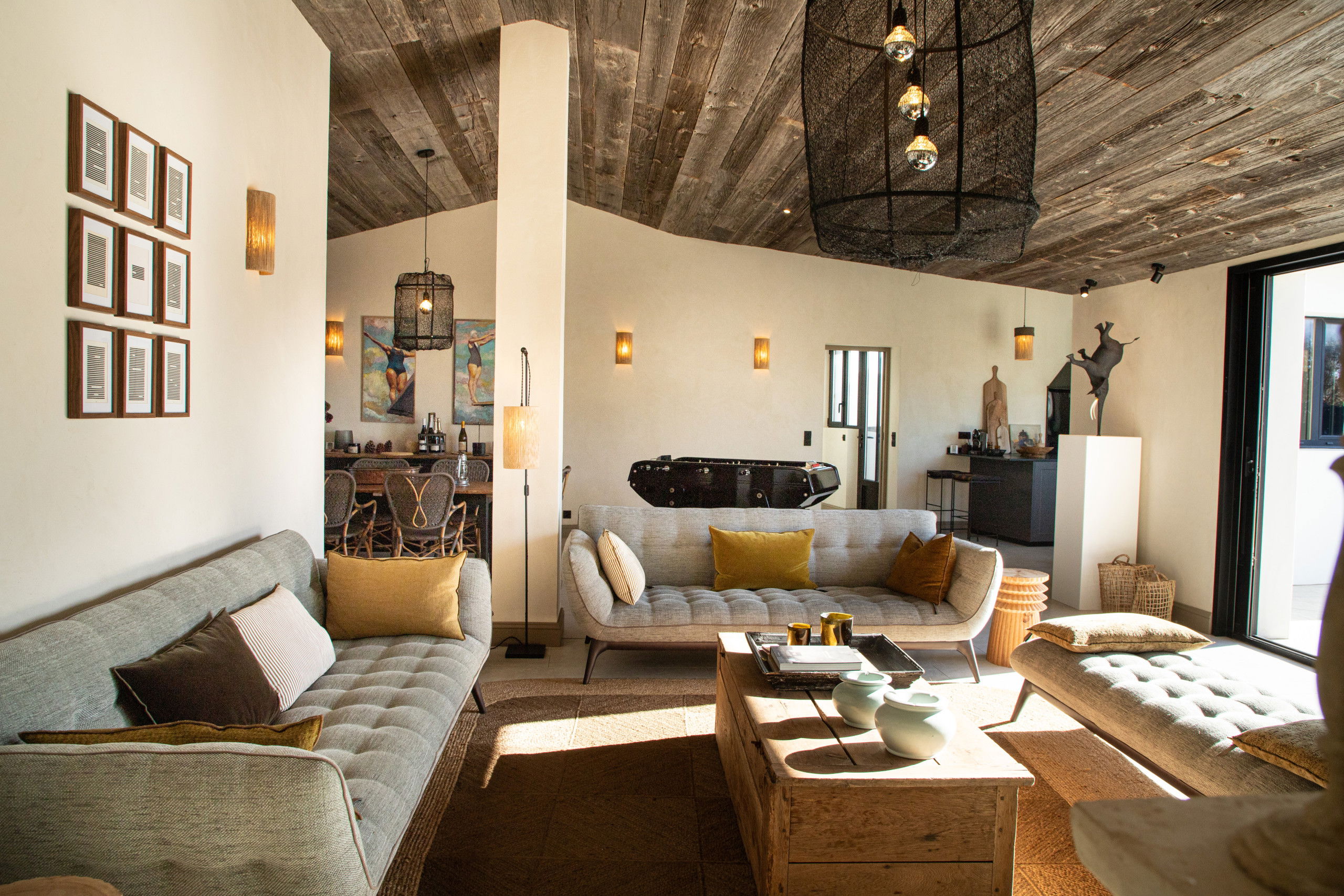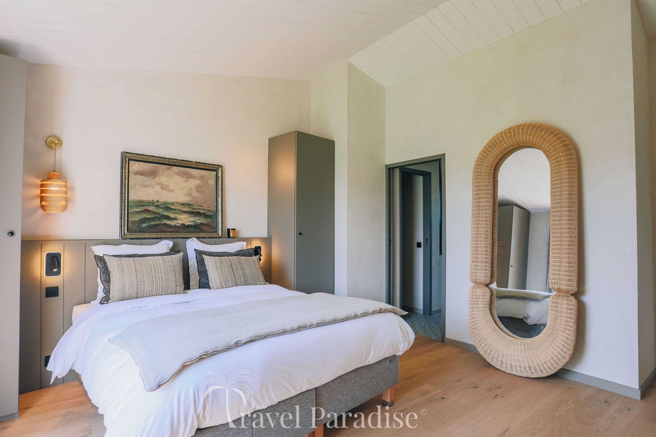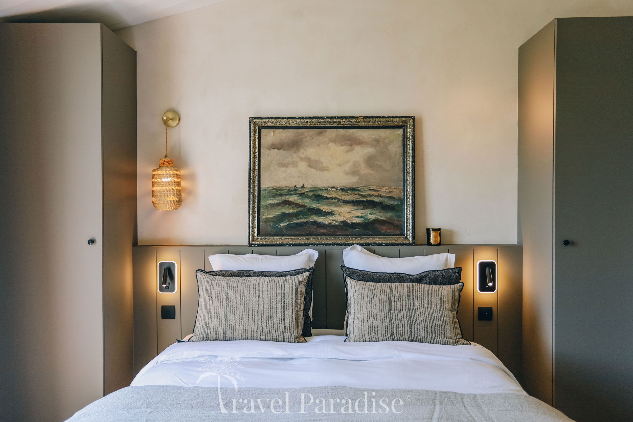From the entrance, the Villa du Phare captivates with its spacious, bright and elegantly decorated interior spaces. Each room has been carefully designed, blending noble materials and contemporary touches to create an atmosphere that is both warm and refined. The vast living room, bathed in natural light, invites relaxation and conviviality.
