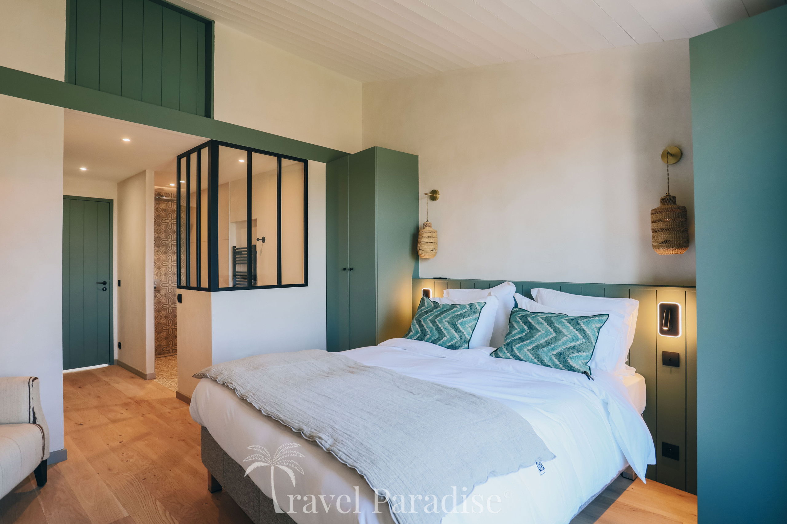 The villa comprises three comfortable suites, each offering tranquillity and privacy, a room equipped with two single beds, as well as a room dedicated to children. The whole provides an ideal accommodation capacity for family stays or trips with friends, in a luxurious and serene setting.