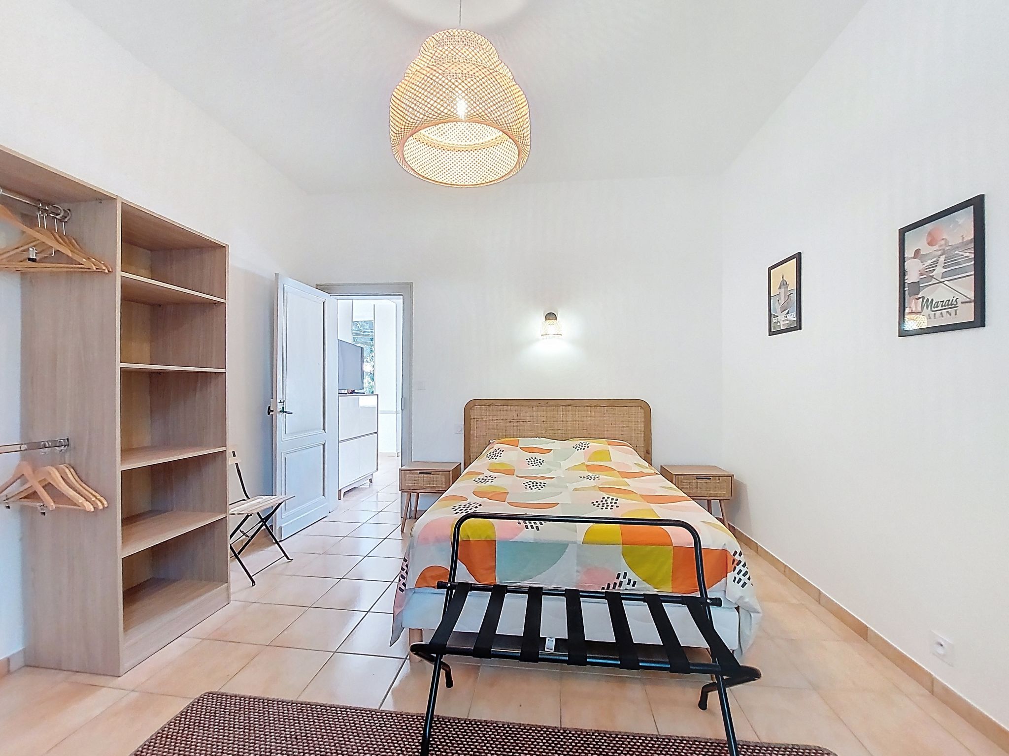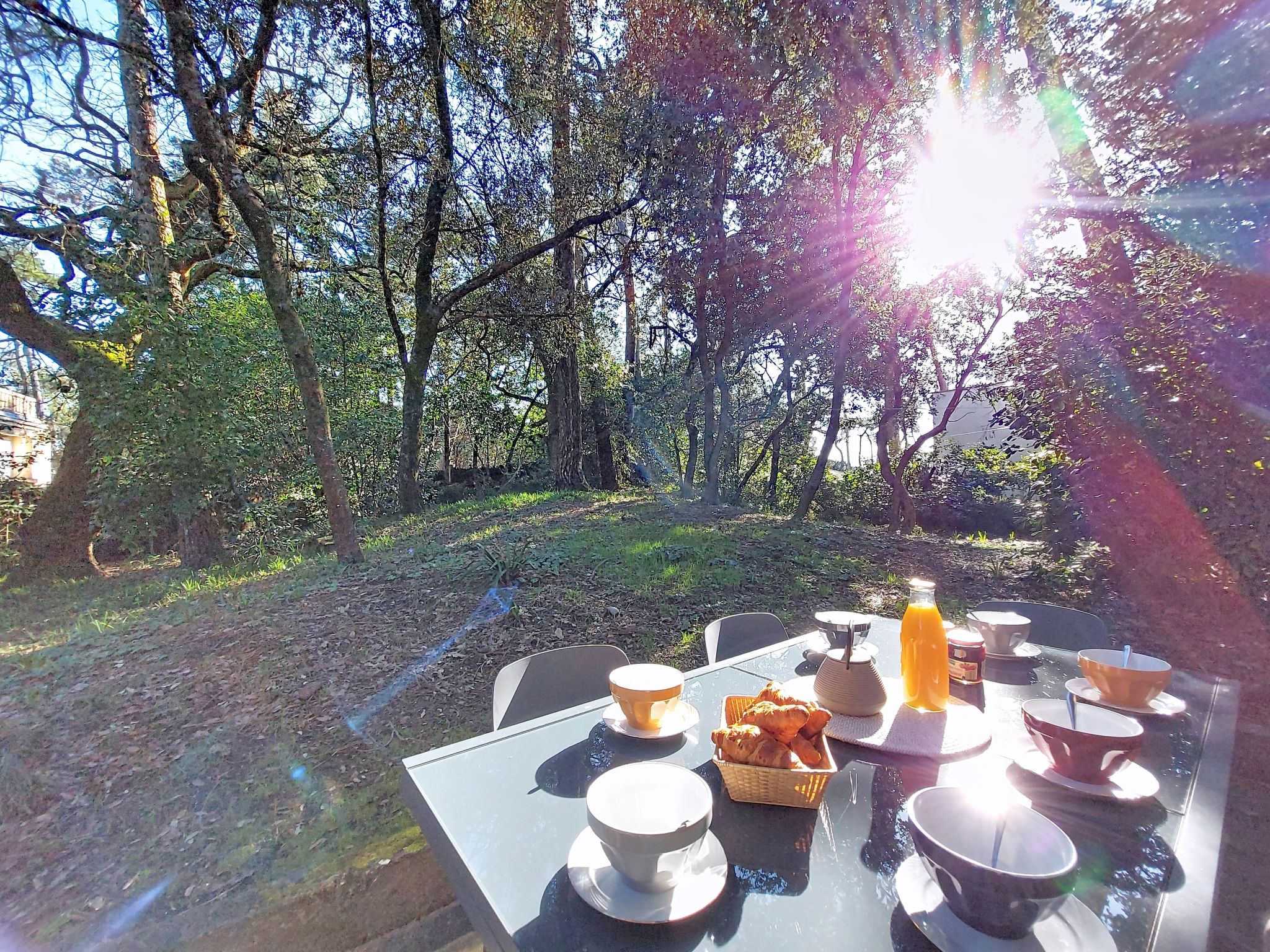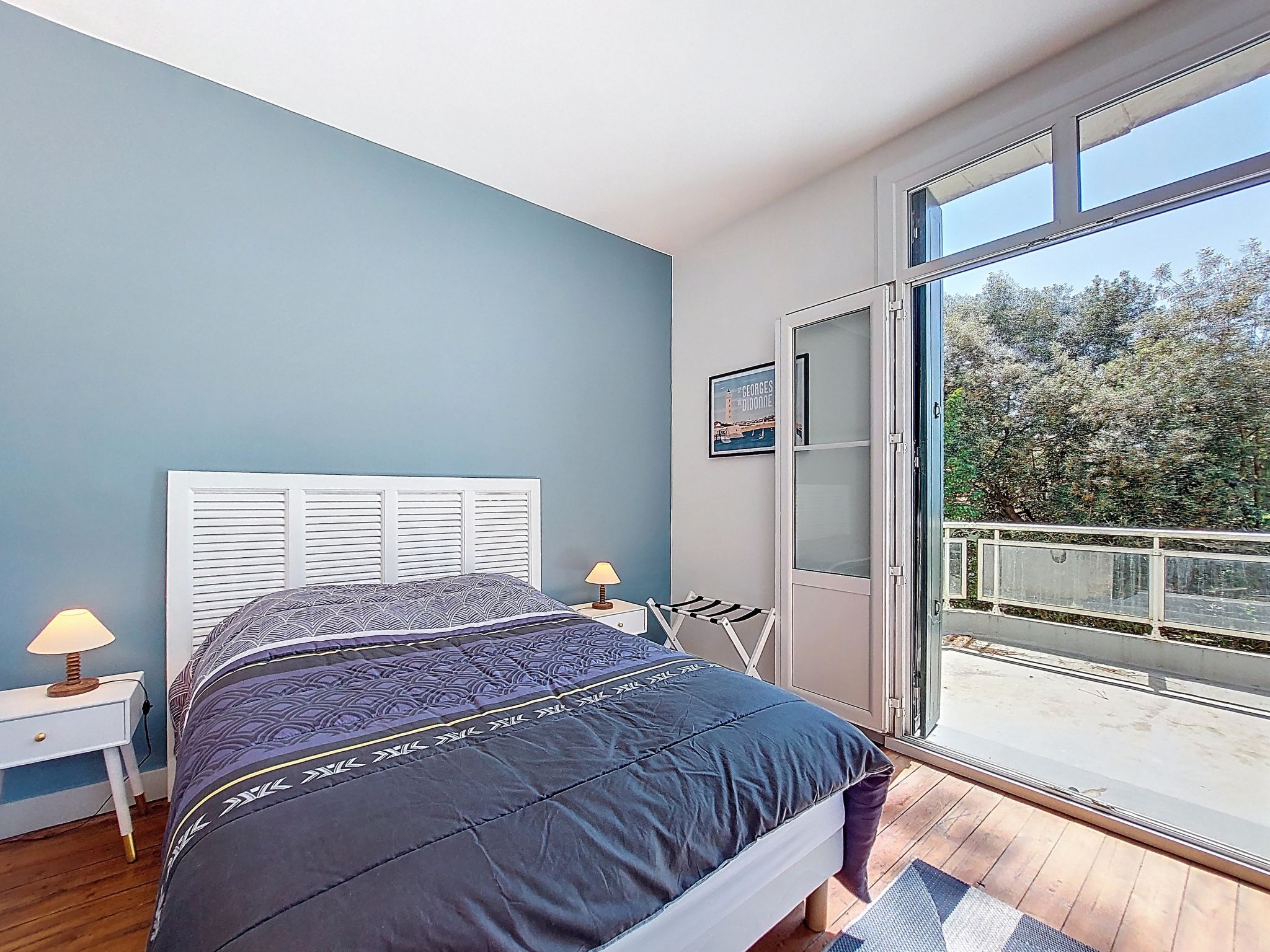 4-room house 110 m2 on 2 levels. Beautiful furnishings: living room with TV (flat screen). 1 room with 1 french bed (1 x 140 cm, length 190 cm), shower/WC. Kitchen (oven, dishwasher, 3 ceramic glass hob hotplates, toaster, kettle, microwave, freezer, electric coffee machine) with dining table. Exit to the garden, to the terrace, to the veranda. Sep. WC. Upper floor: 1 room with 1 french bed (1 x 140 cm, length 190 cm). Exit to the balcony. 1 room with 1 bed (90 cm, length 190 cm), 1 x 2 bunk beds (90 cm, length 190 cm). Shower/WC. Electric heating. Terrace 12 m2, garden 700 m2. Terrace furniture. Facilities: washing machine. Internet (WiFi, free). Parking (2 cars). Please note: smoke alarm. Offer by a private individual according to Art. 155, IV of CGI.