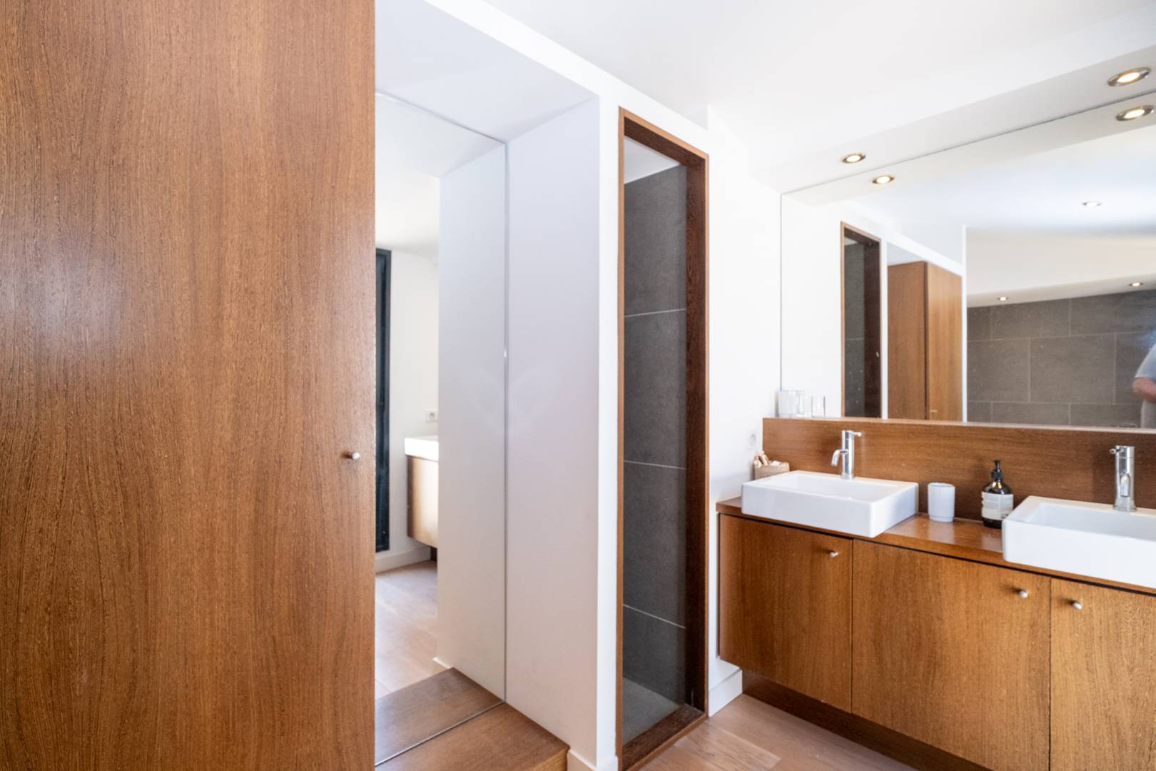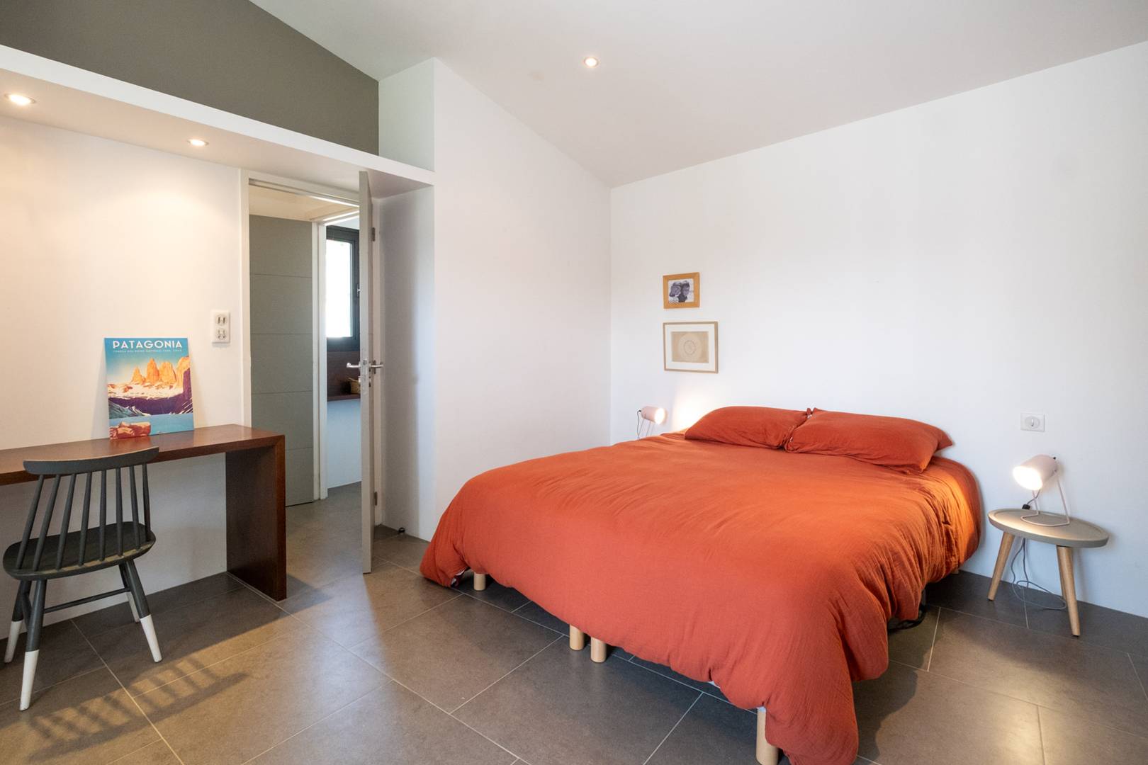Bedroom 3: Opening onto a patio, part of the main house, with a large bathroom including shower, bathtub, and double sinks and a large dressing.