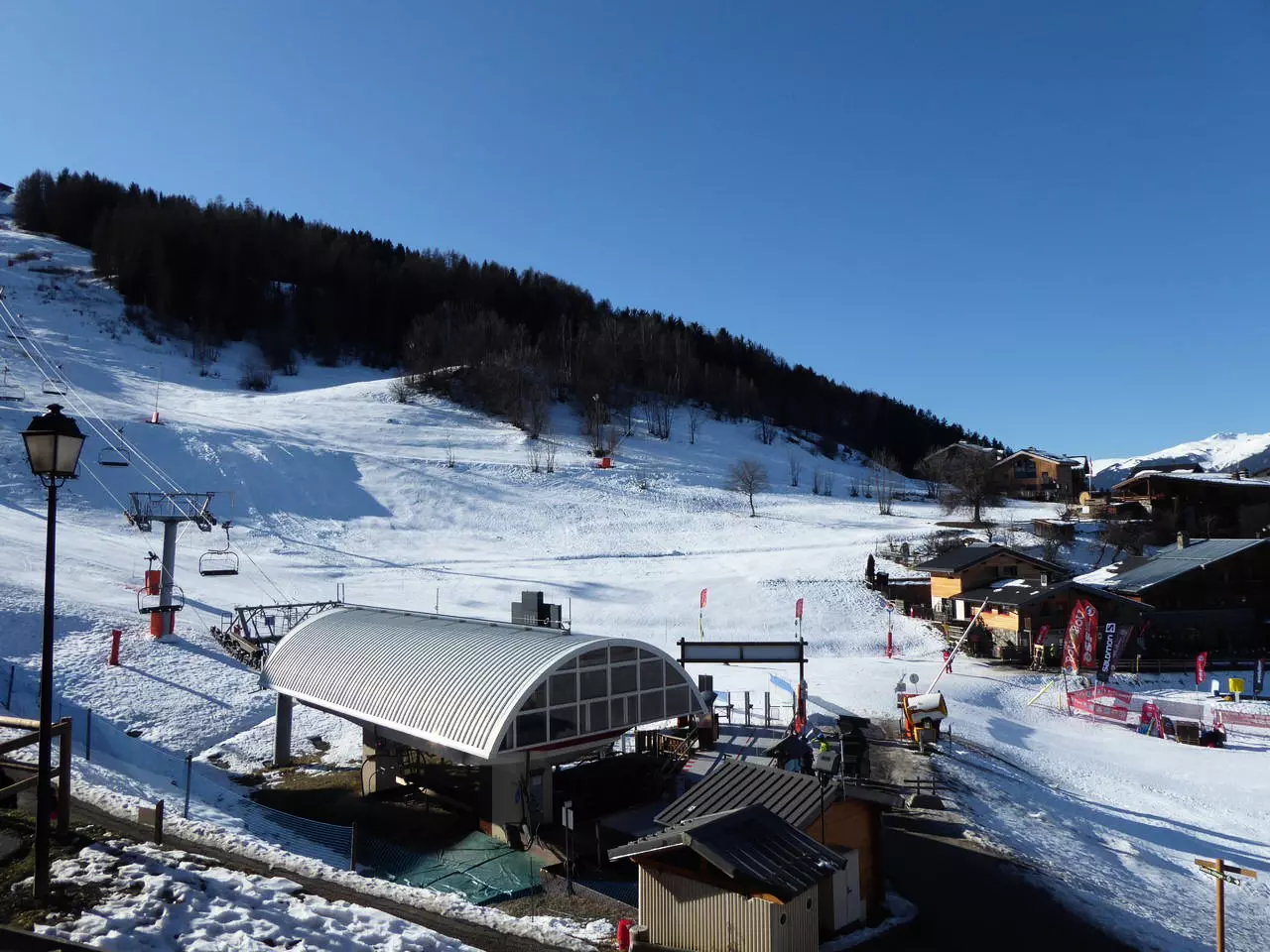 4-story residence located a 2-minute walk from the shops and a 1-minute walk from the slopes, with ski lockers on the ground floor. Free outdoor parking is available near the residence.