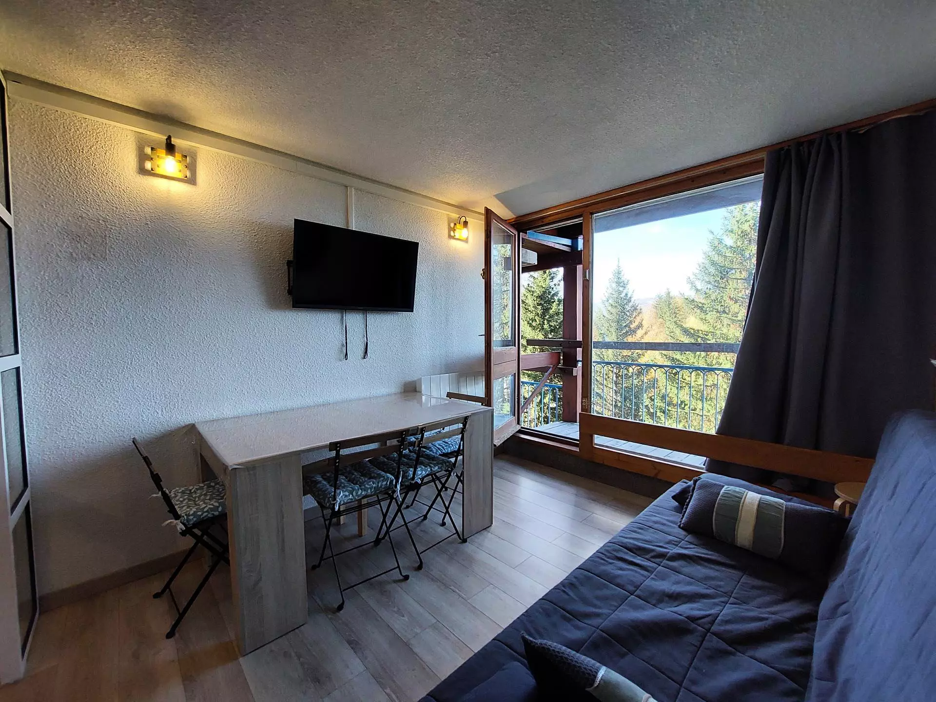 This 25m² studio, which can accommodate up to 4 people, is located on the 10th floor of the Belles-Challes residence, a residence with elevator.