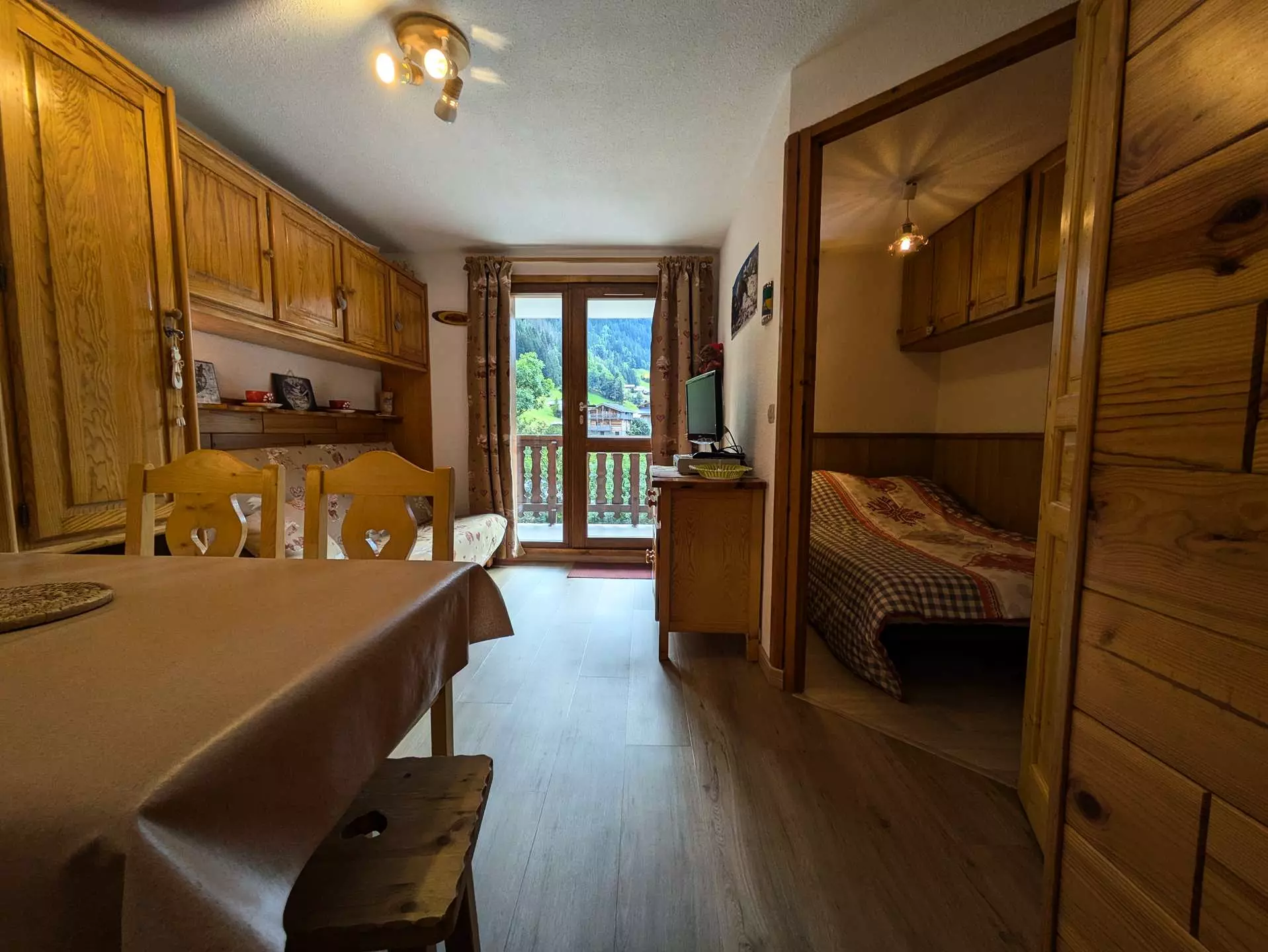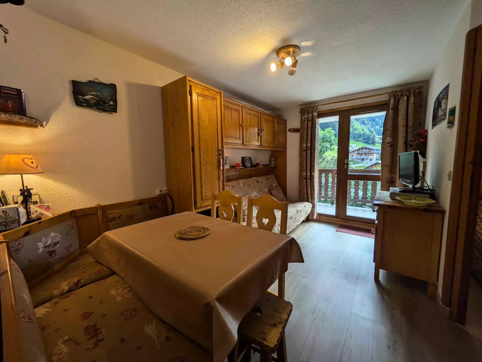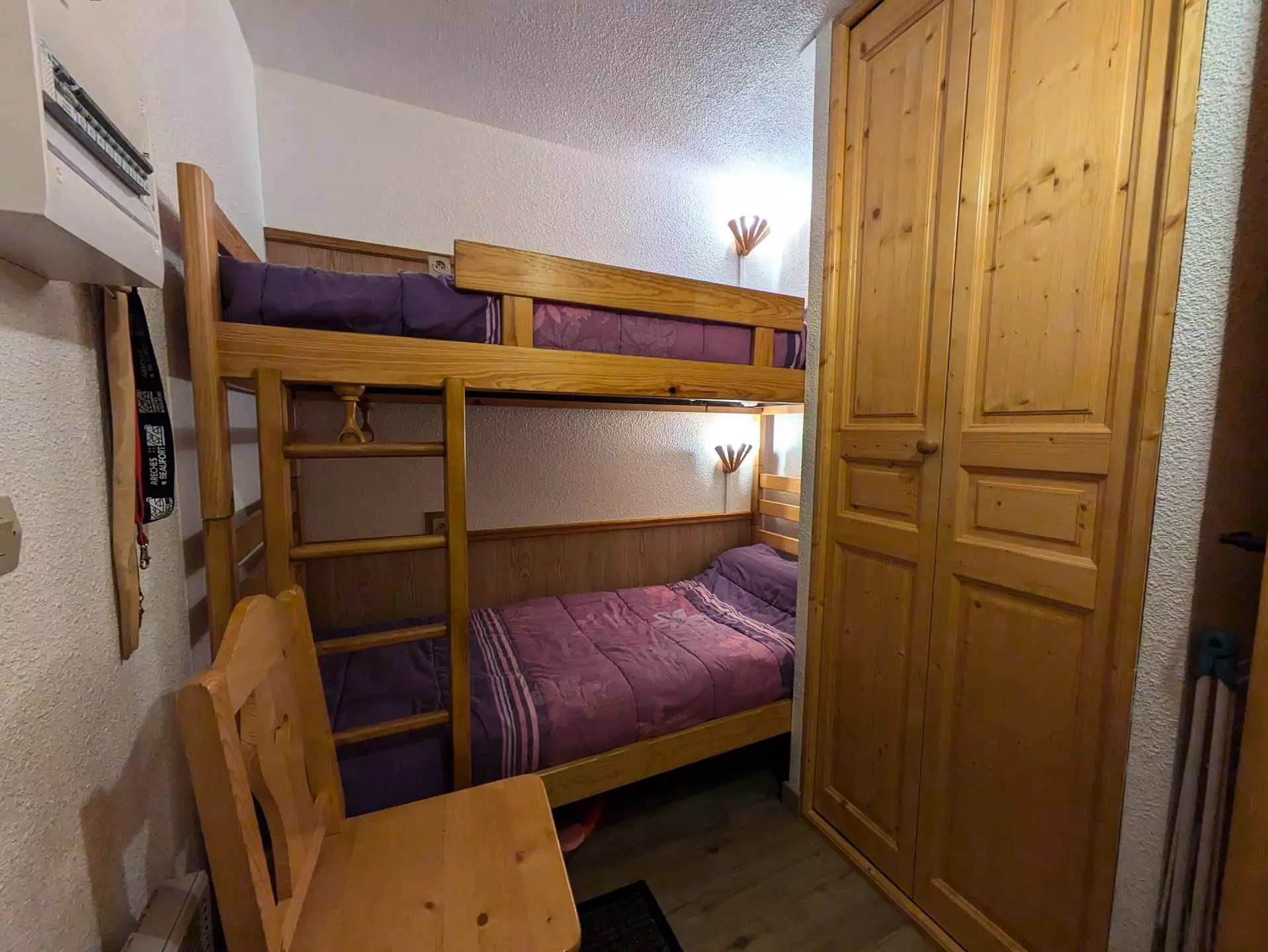 Living room with kitchenette and dishwasher opening onto a large south-facing balcony - 1 small bedroom (1 double bed 120 cm + 1 closed cabin area (2 bunk beds 80 cm) - bathroom - toilet - LV Raclette, croque monsieur and crepe maker. Television, mini hi-fi system and DVD player