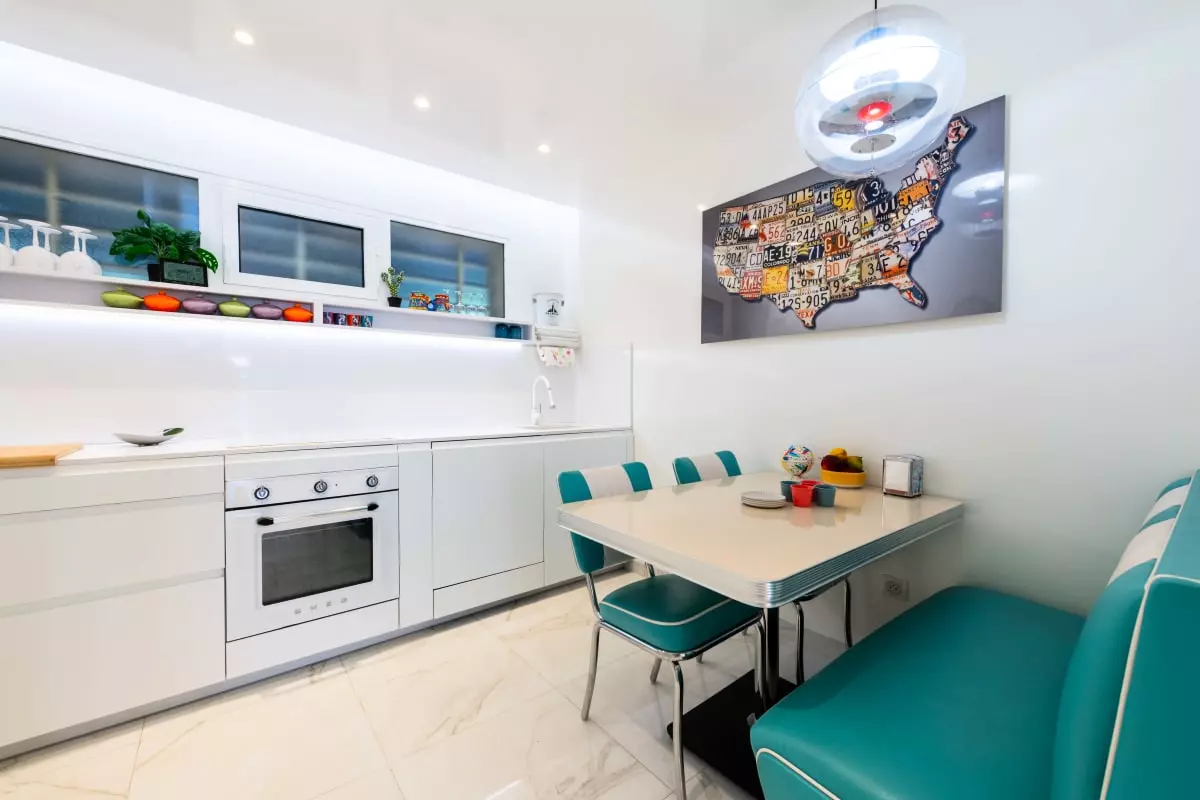 - The independent kitchen is fully equipped and even includes an additional dining area for 4 people.
