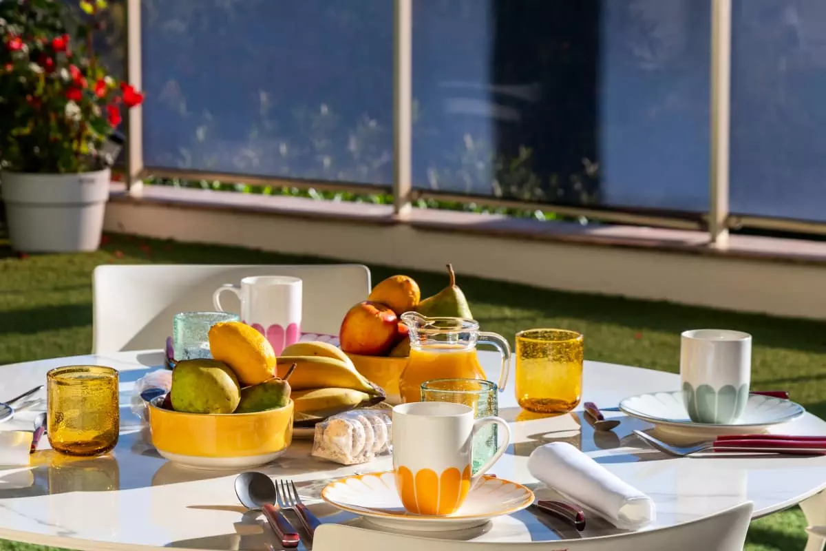 - The famous terrace offers a dining area for 4 people, sun loungers and a coffee area with sofa.