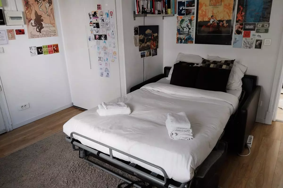 - a living room with a 125 x 185 convertible sofa to relax after a day of walking.