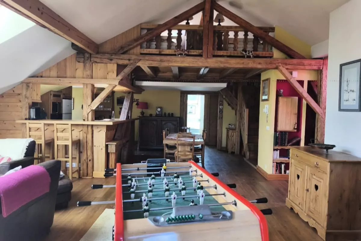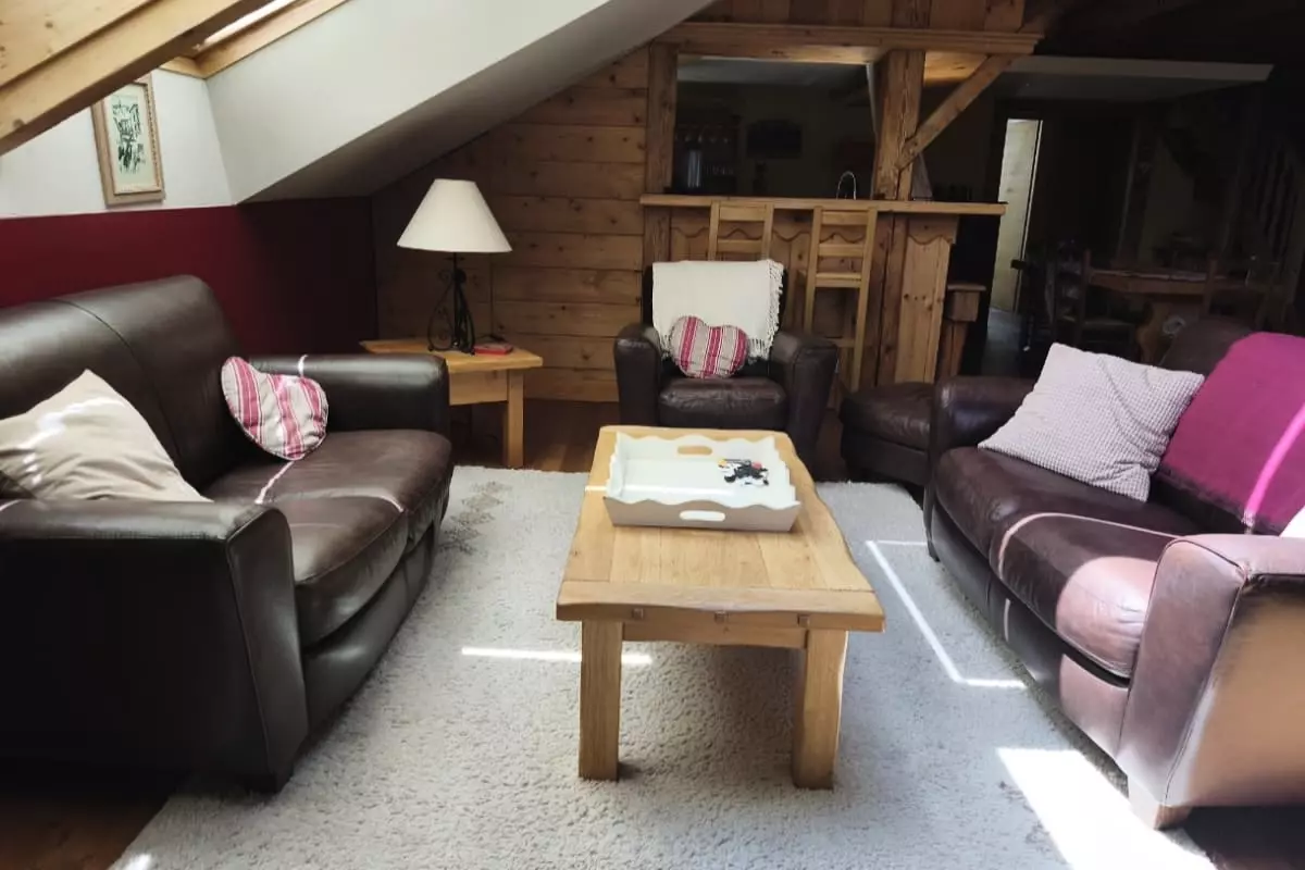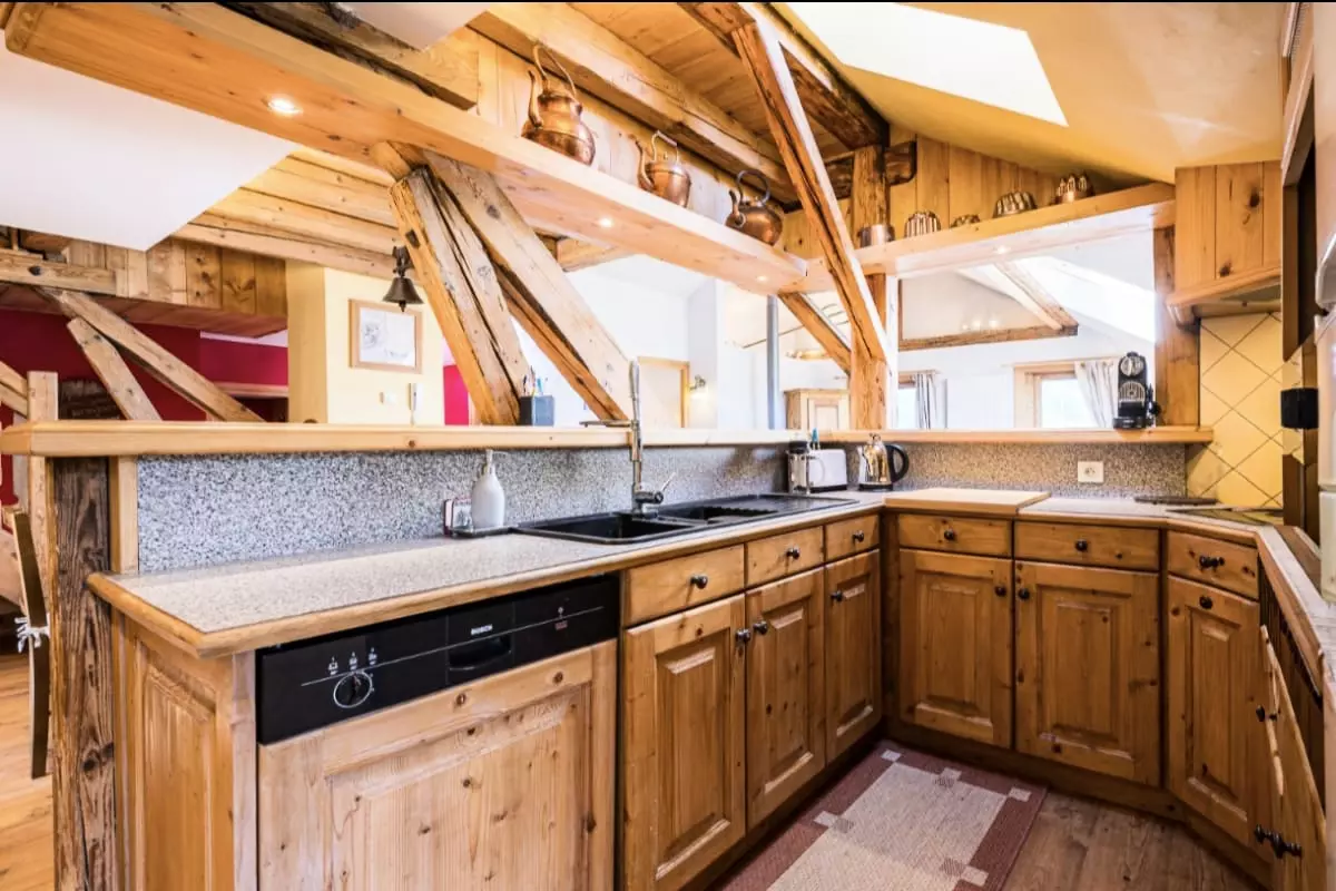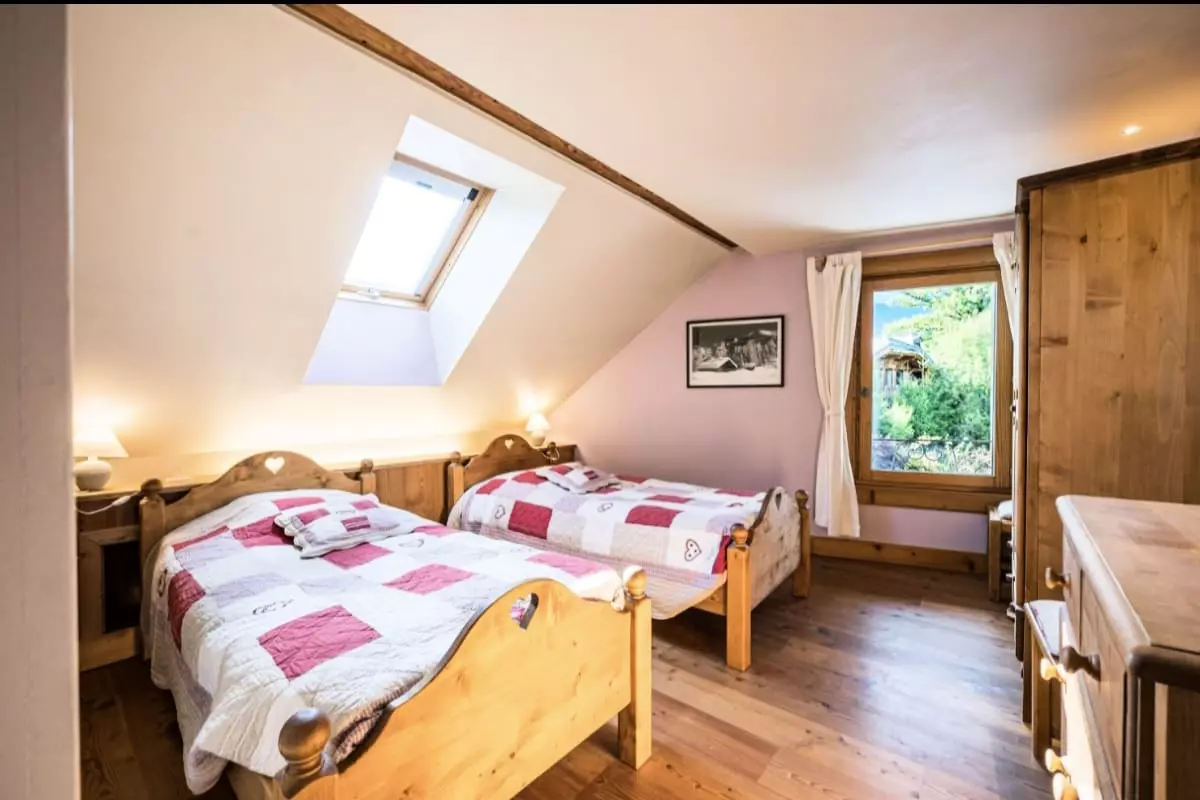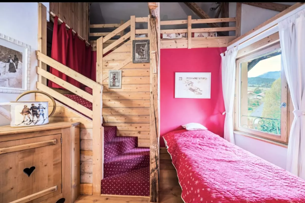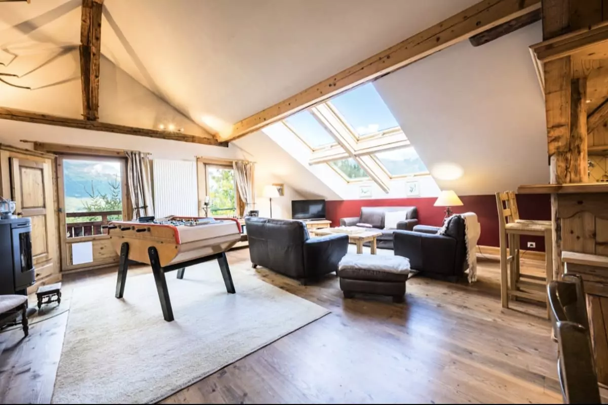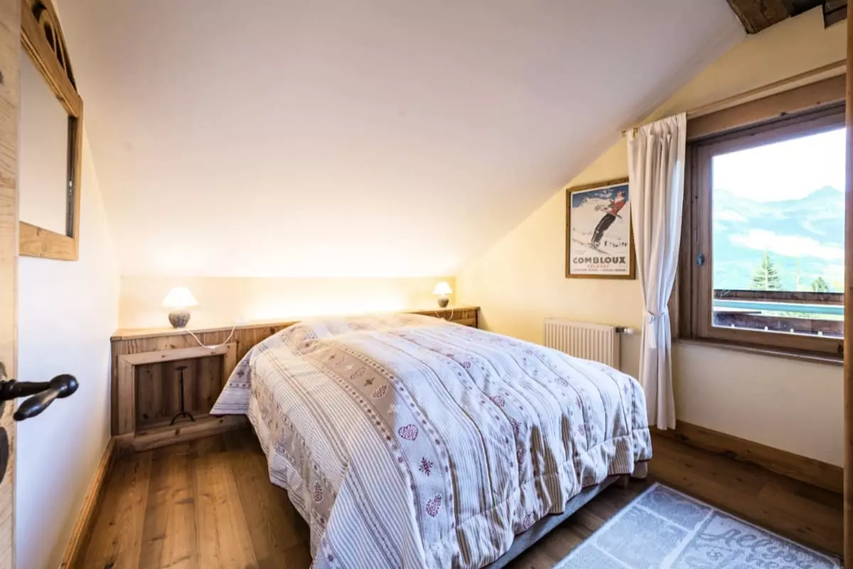 Located in a small, five-unit condominium offering all the amenities of a mountain chalet, it occupies the top floor of the residence. With breathtaking views of the entire Mont Blanc range, it includes: