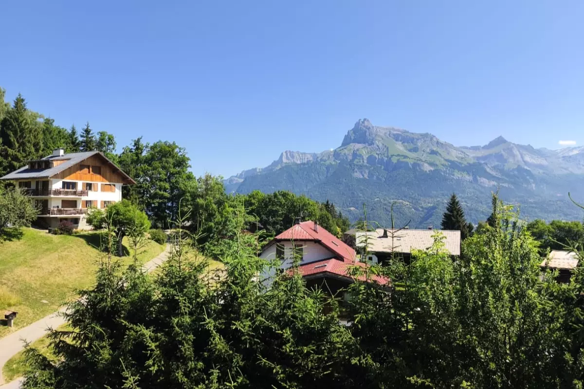 Combloux is located in the Pays du Mont-Blanc, nestled against the Aravis mountain range, facing the Mont-Blanc and Fiz mountain ranges, with a 360° panorama.