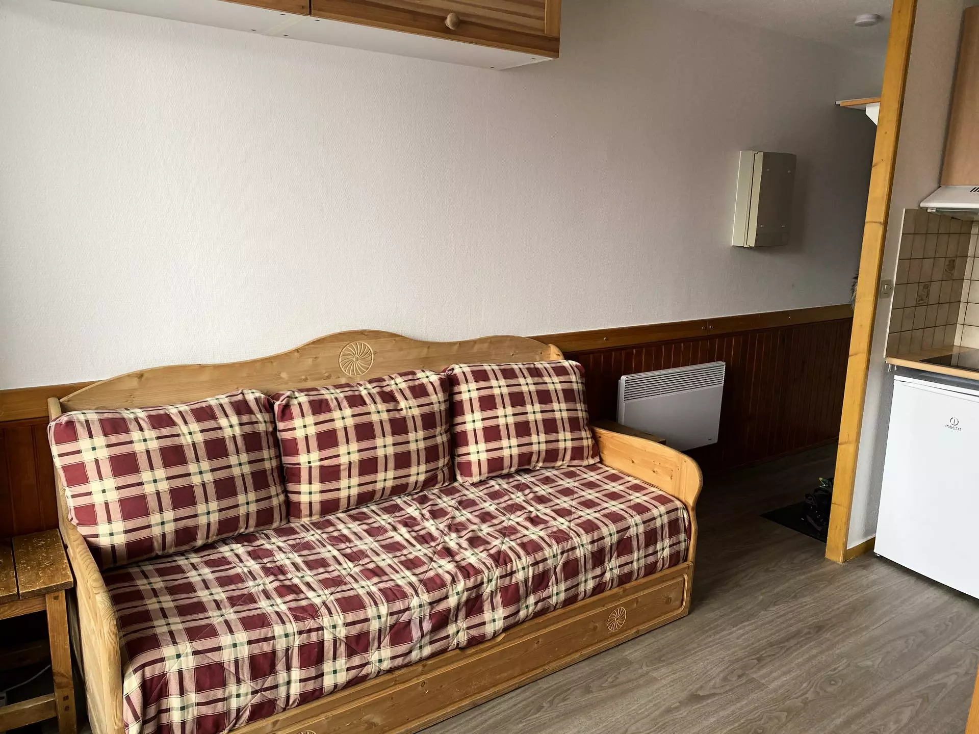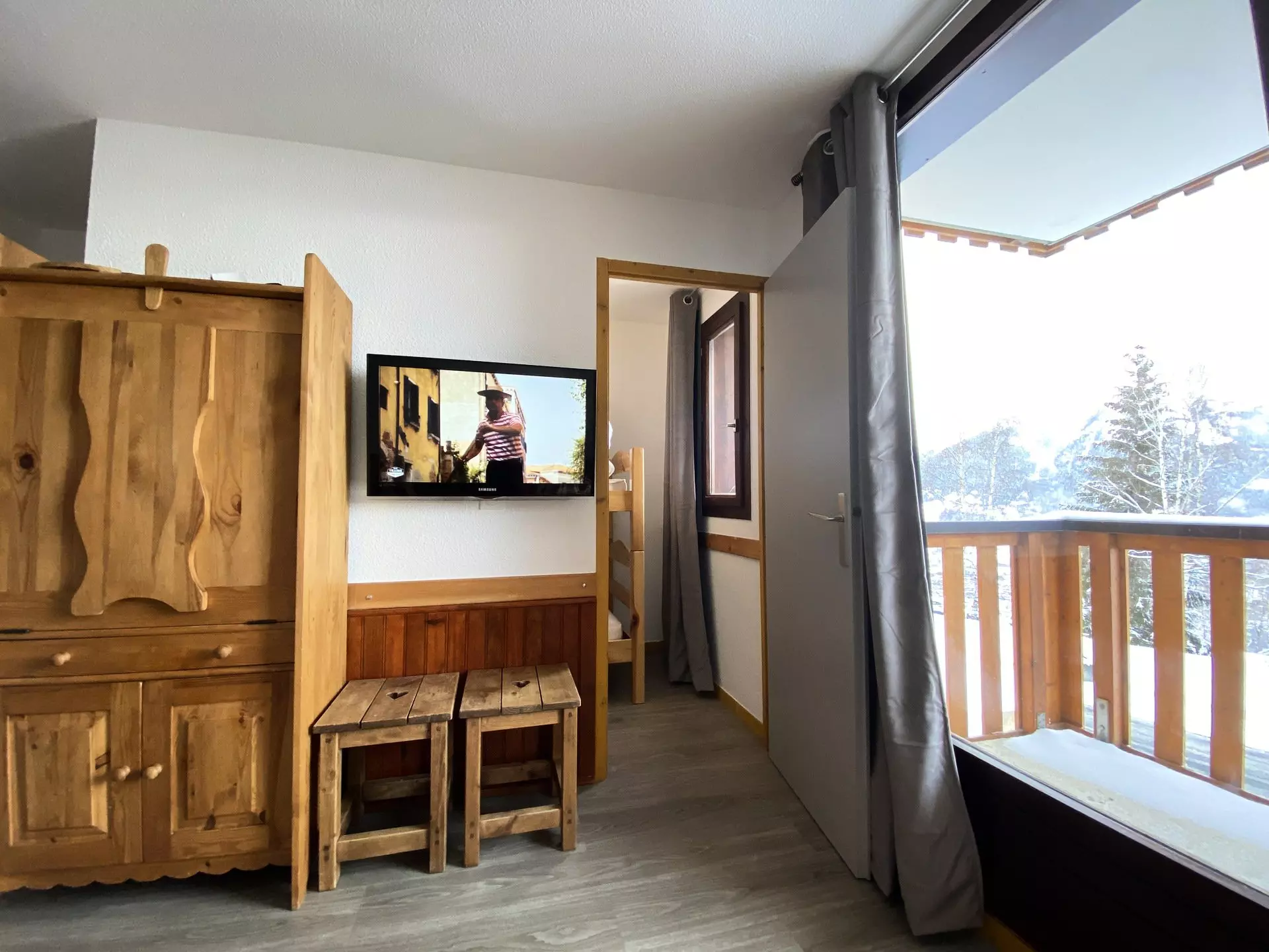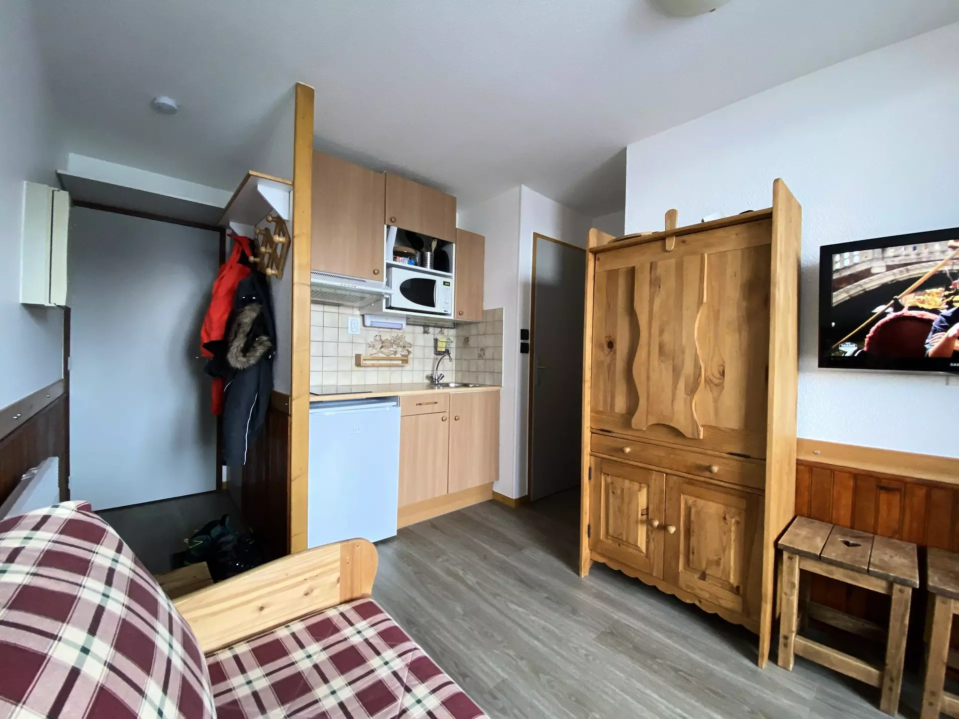 In the "Les Plaisances" residence located at the foot of the slopes and close to all amenities, 21m2 studio, for 4 people, on the 1st floor with a north-facing balcony with a view of Mont Blanc.