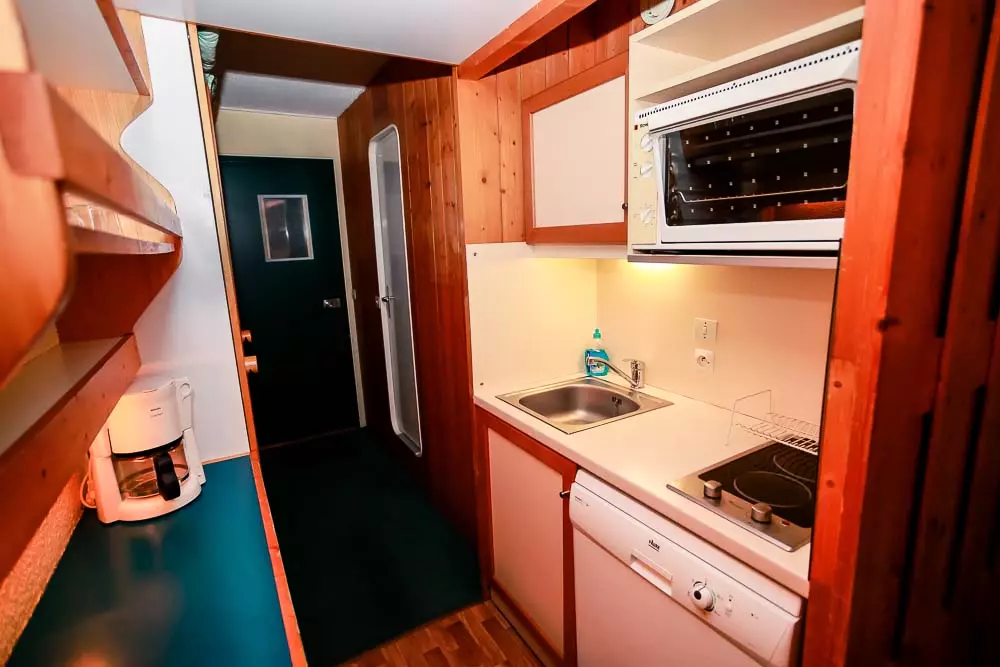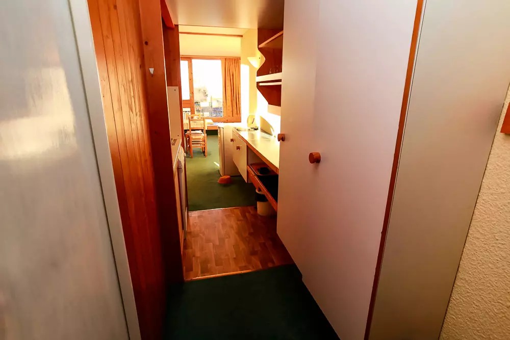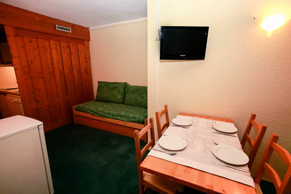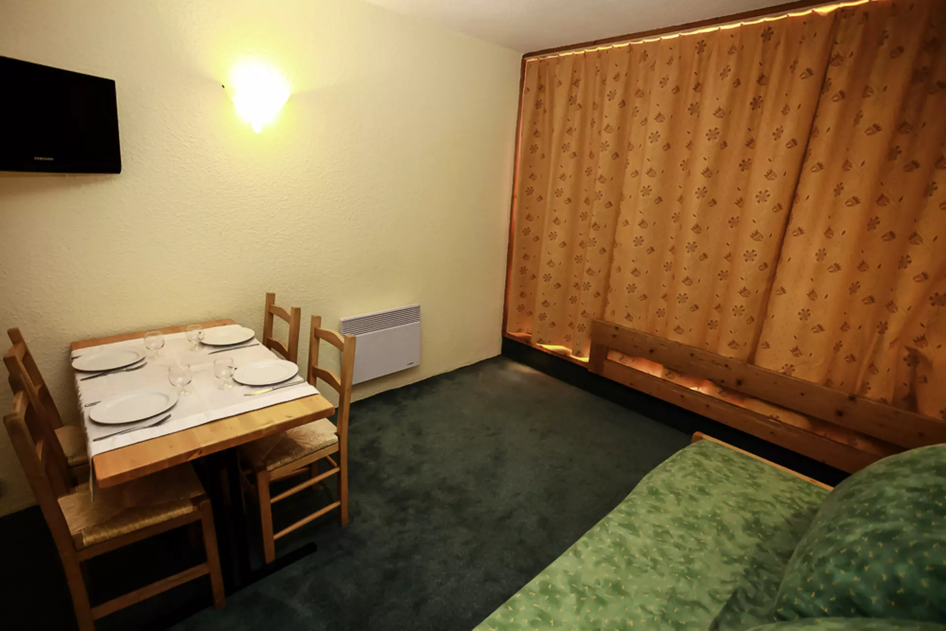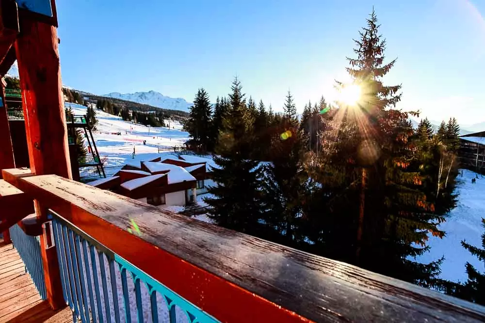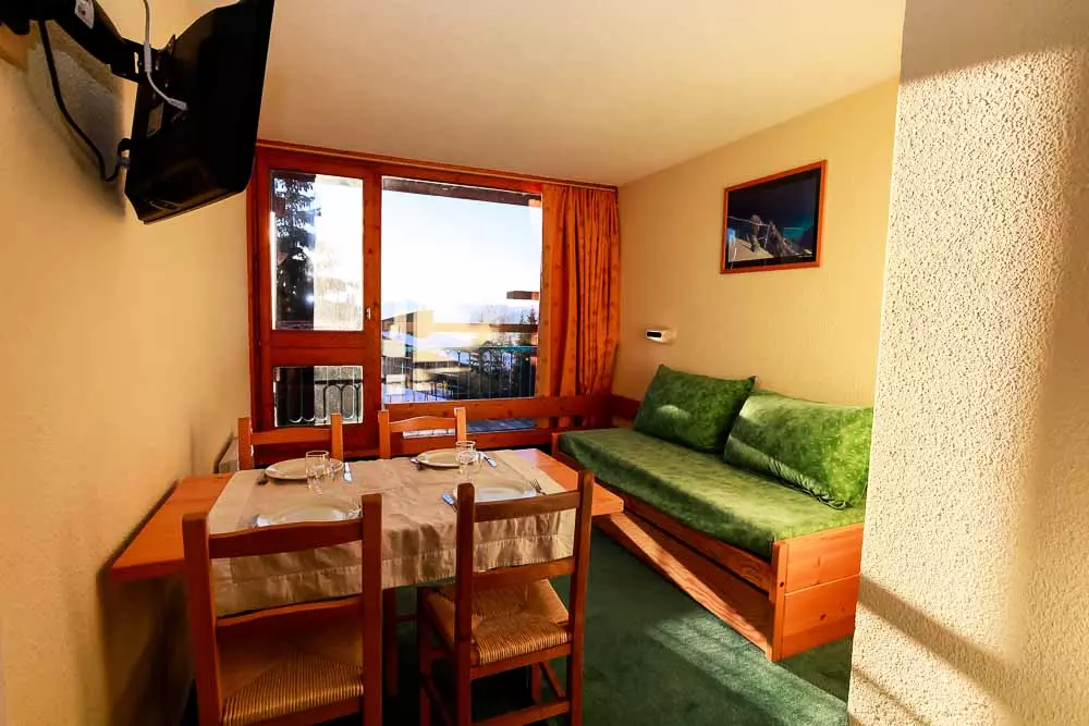 25m² studio cabin for 4 people, facing southwest, on the 9th floor of the Belles Challes du Charvet residence, at the foot of the slopes and shops. With balcony