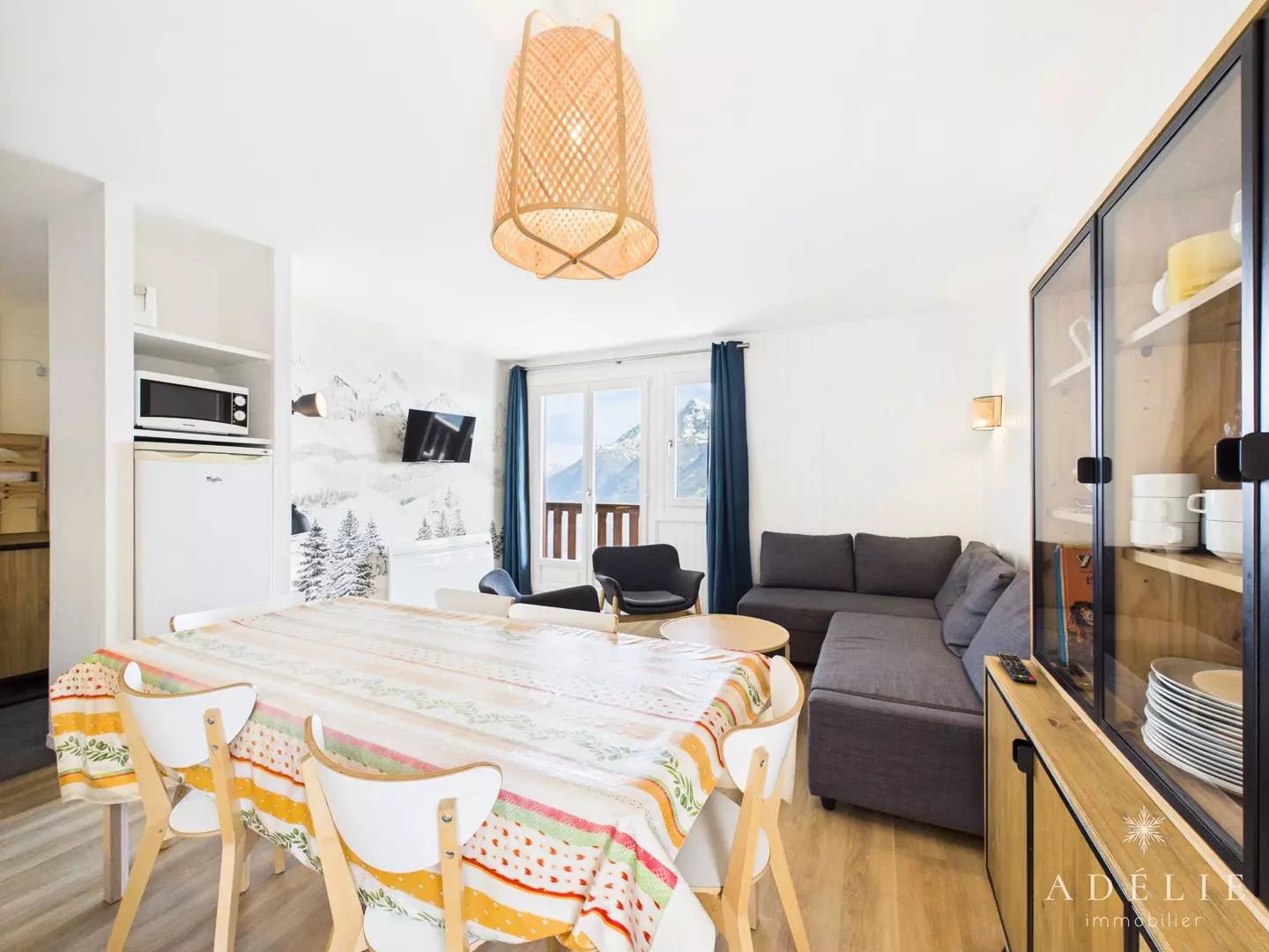 Entrance with cupboards, mountain corner with 2 bunk beds.