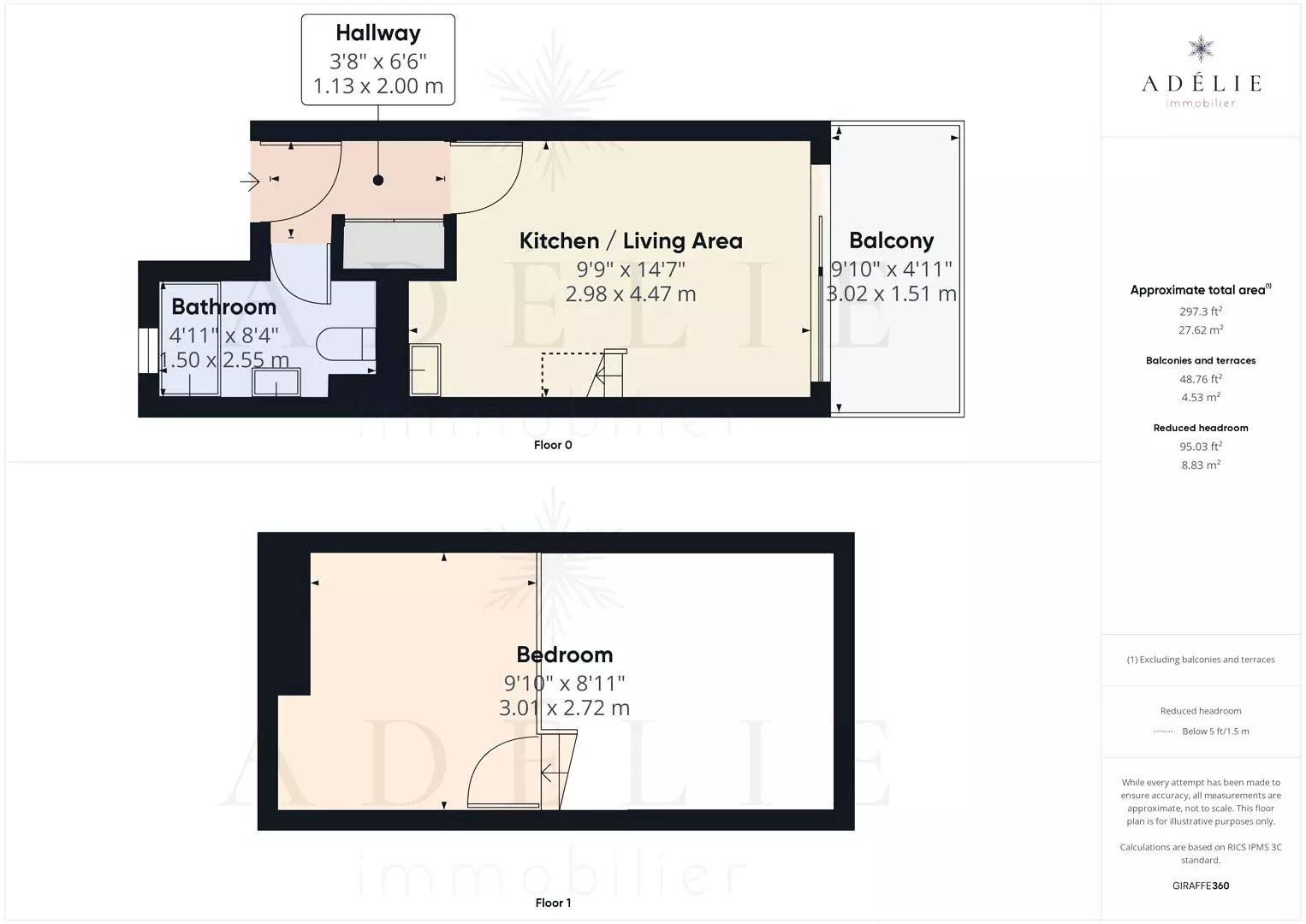 BTA33: 25m² mezzanine studio for 4/5 people, classified 1*