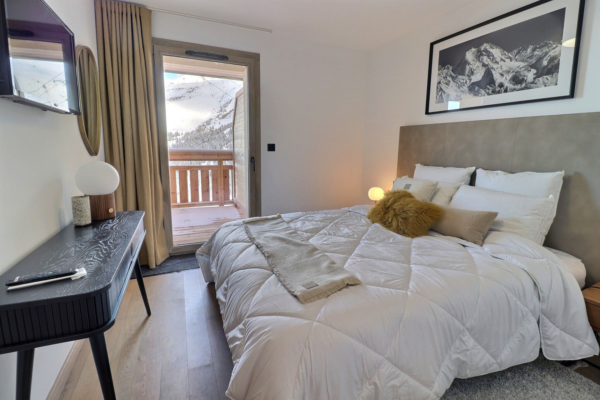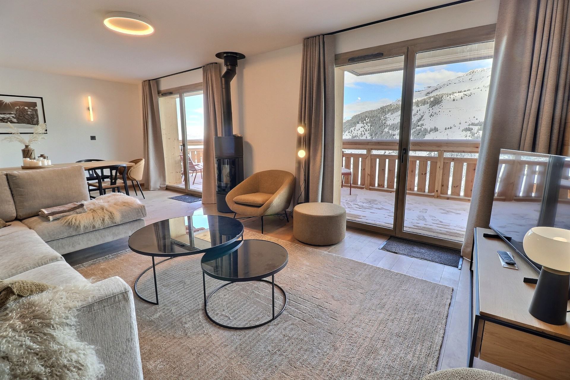 Superb view of the Saulire, terrace with table and chairs