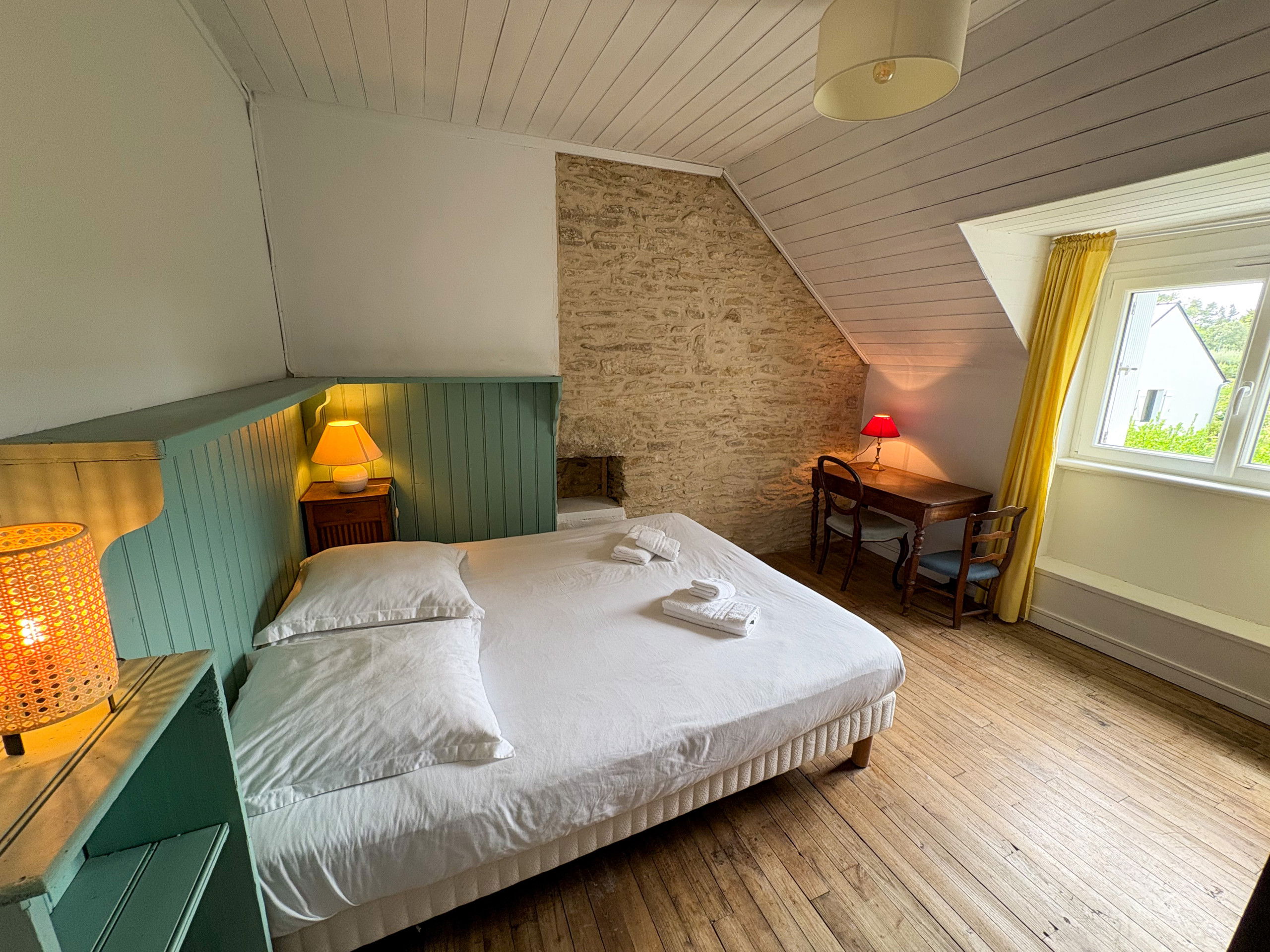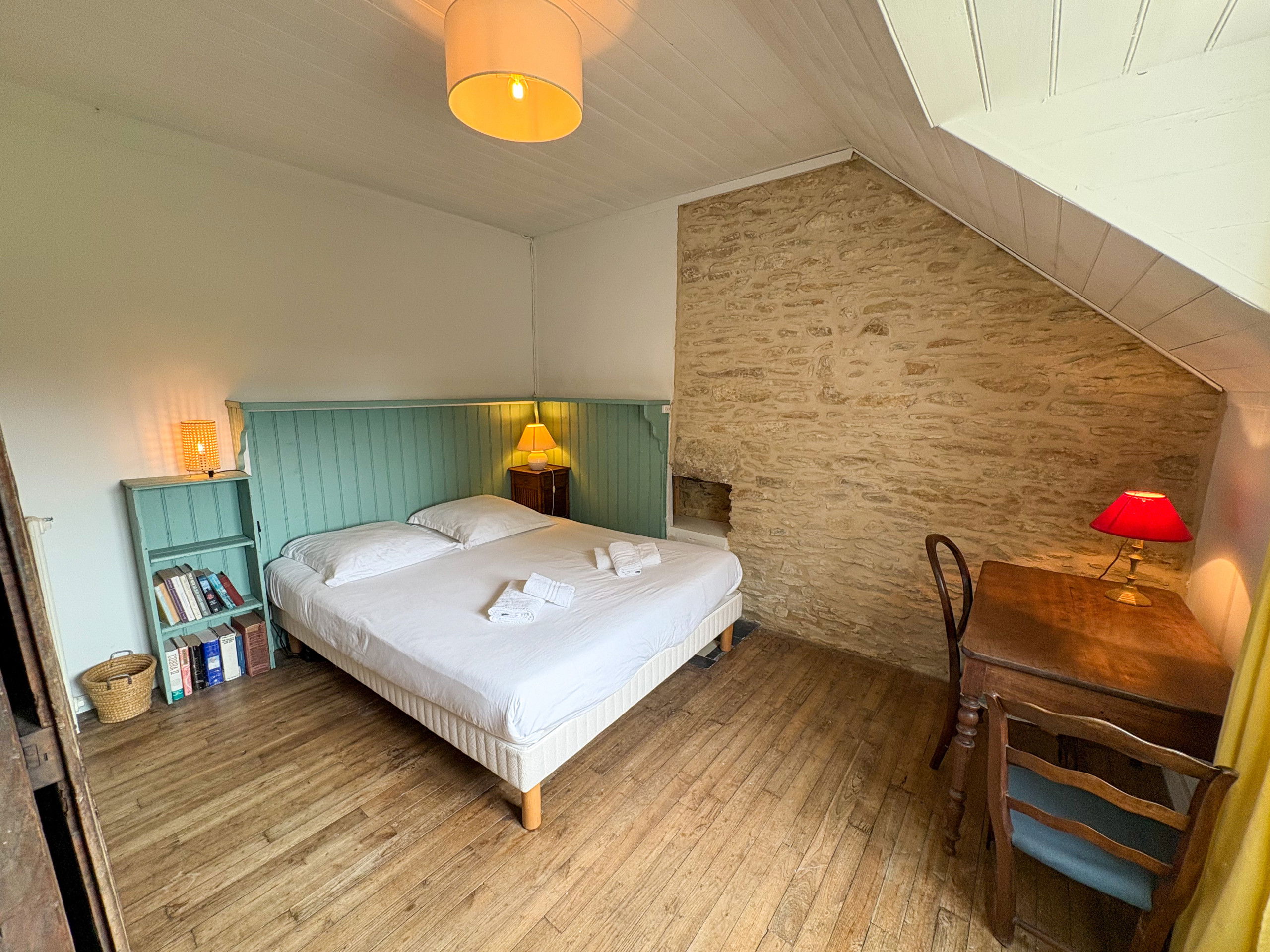 You will discover a large living room, with its fireplace, ideal for warming up by the fire after a long walk on the GR34 which passes very close to the house. The kitchen is also open to the living room, it is fully equipped to cook delicious little dishes.