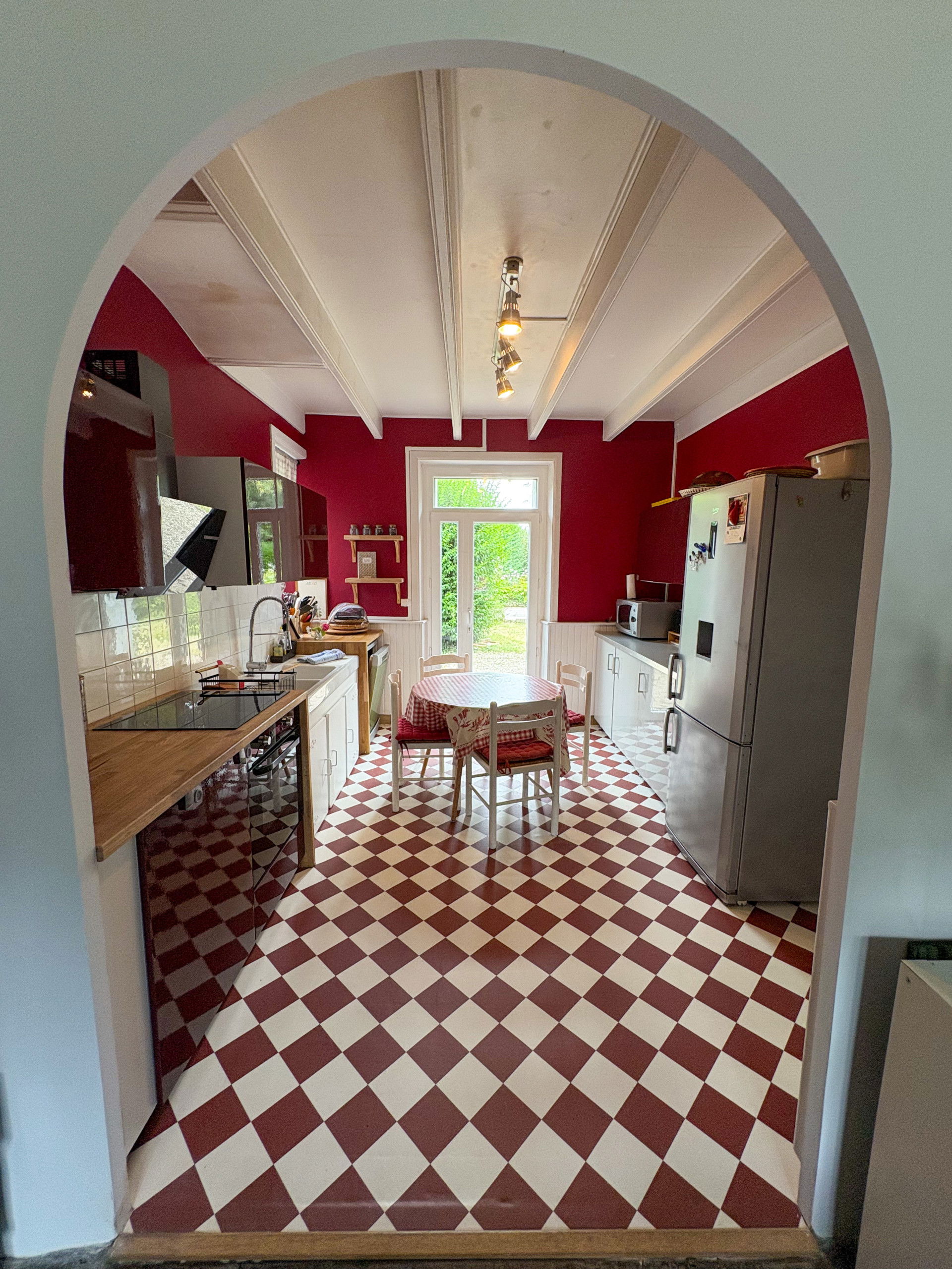 Upon entering the house, you will be won over by the charm of the old, and particularly by this lovely corridor with its black and white tiling that leads to the various rooms on the ground floor.