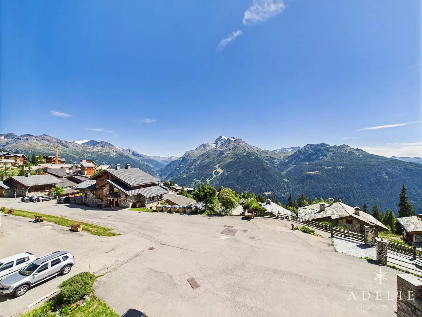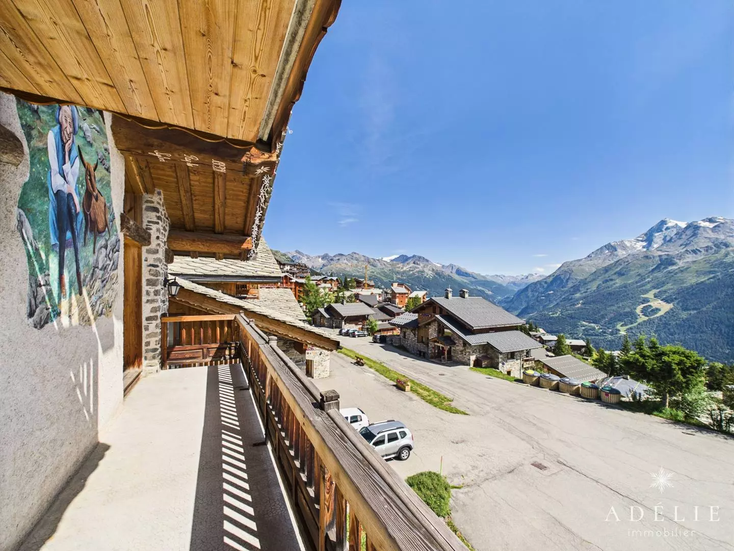 Living room with fireplace for evenings spent by the fire. Breathtaking south-facing views of the Haute-Tarentaise valley.