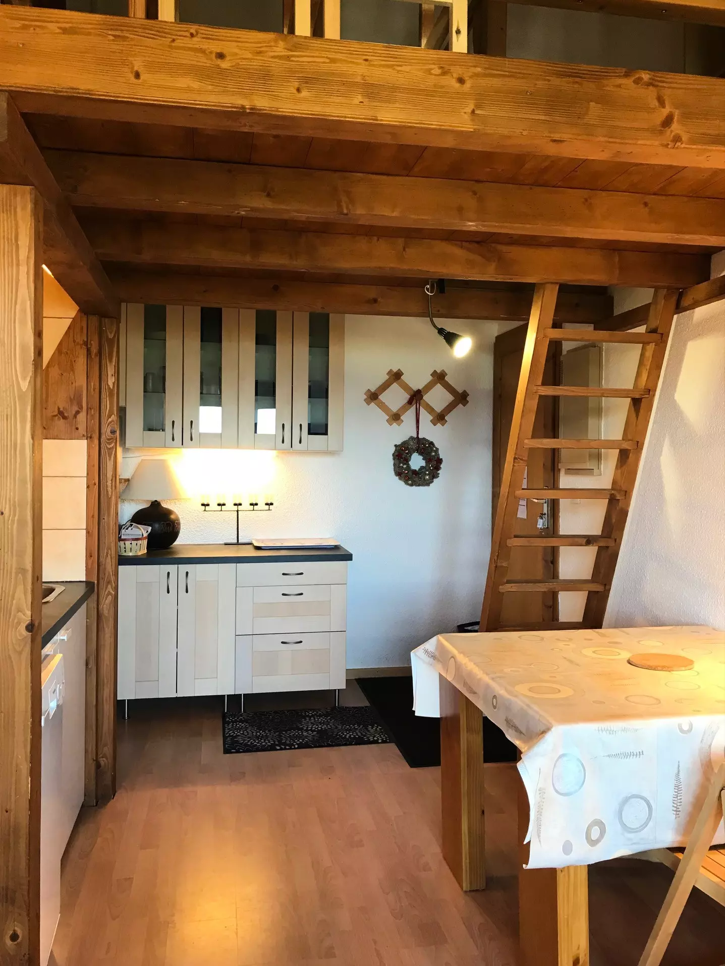 The mezzanine has 2 single beds (Please note: the staircase leading to the mezzanine is steep).