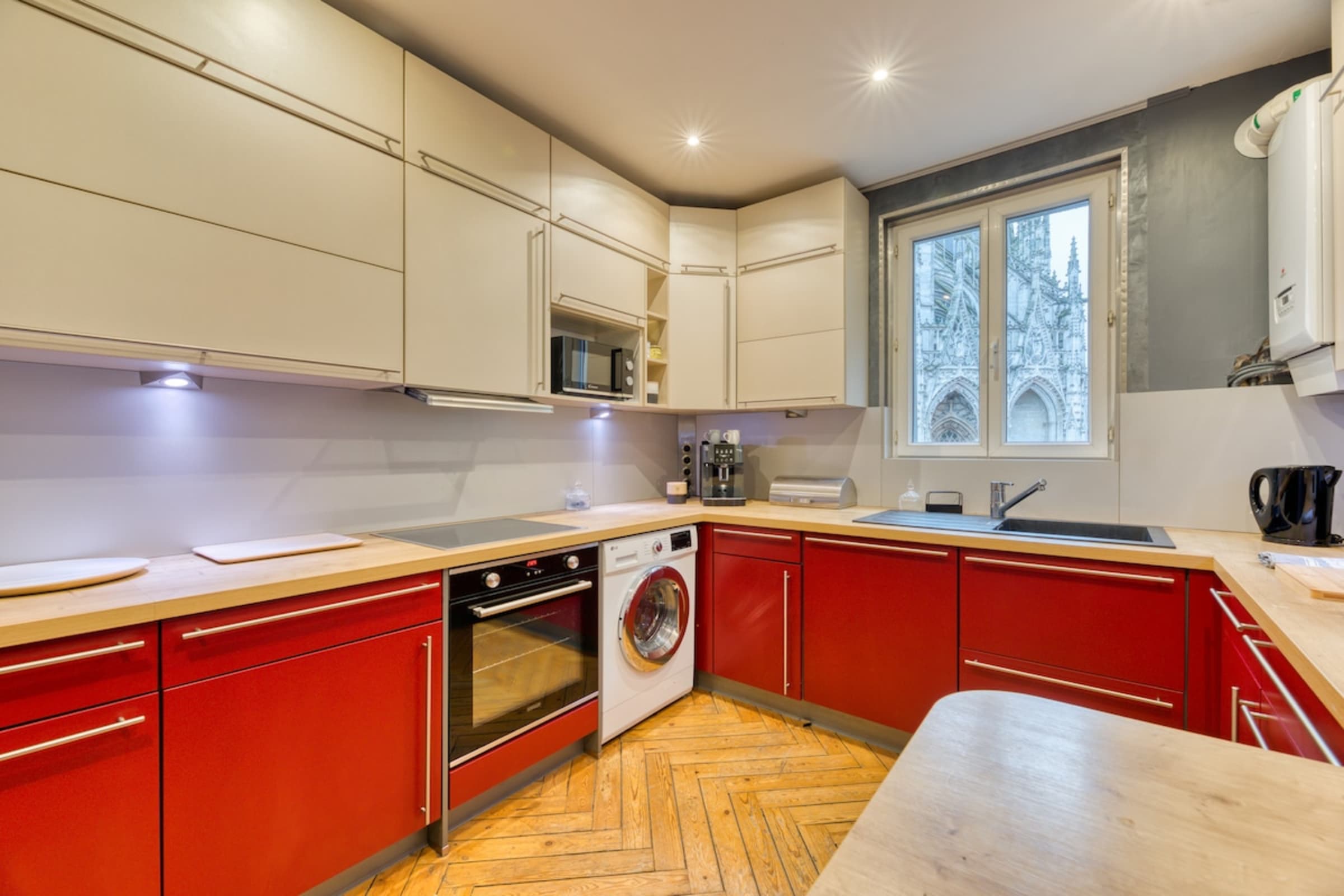 Located in the centre of Rouen, you are close to the Saint Maclou church and the pedestrian antique street. Explore the cultural and historical wealth of the city of 100 steeples. Just a 2-minute walk from Rouen Cathedral, the flat is ideally located right in the heart of Rouen Rive Droite city centre! You're a 20-minute walk from the train station, 10 minutes from the quays of Rouen and 10 minutes from the Place du Vieux Marché! You'll find the nearest mini-market less than 150 metres from your accommodation.